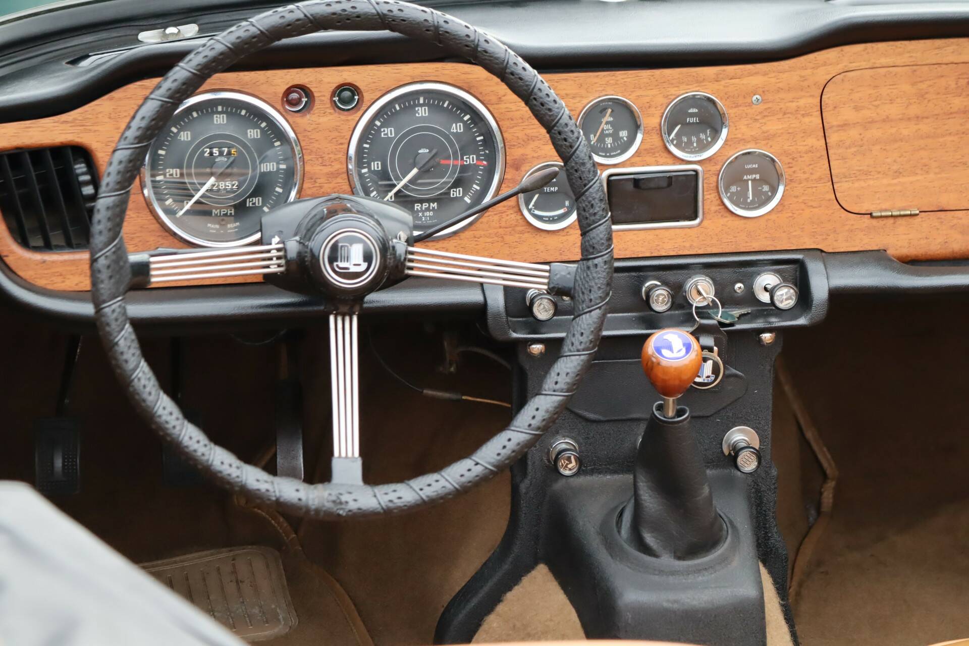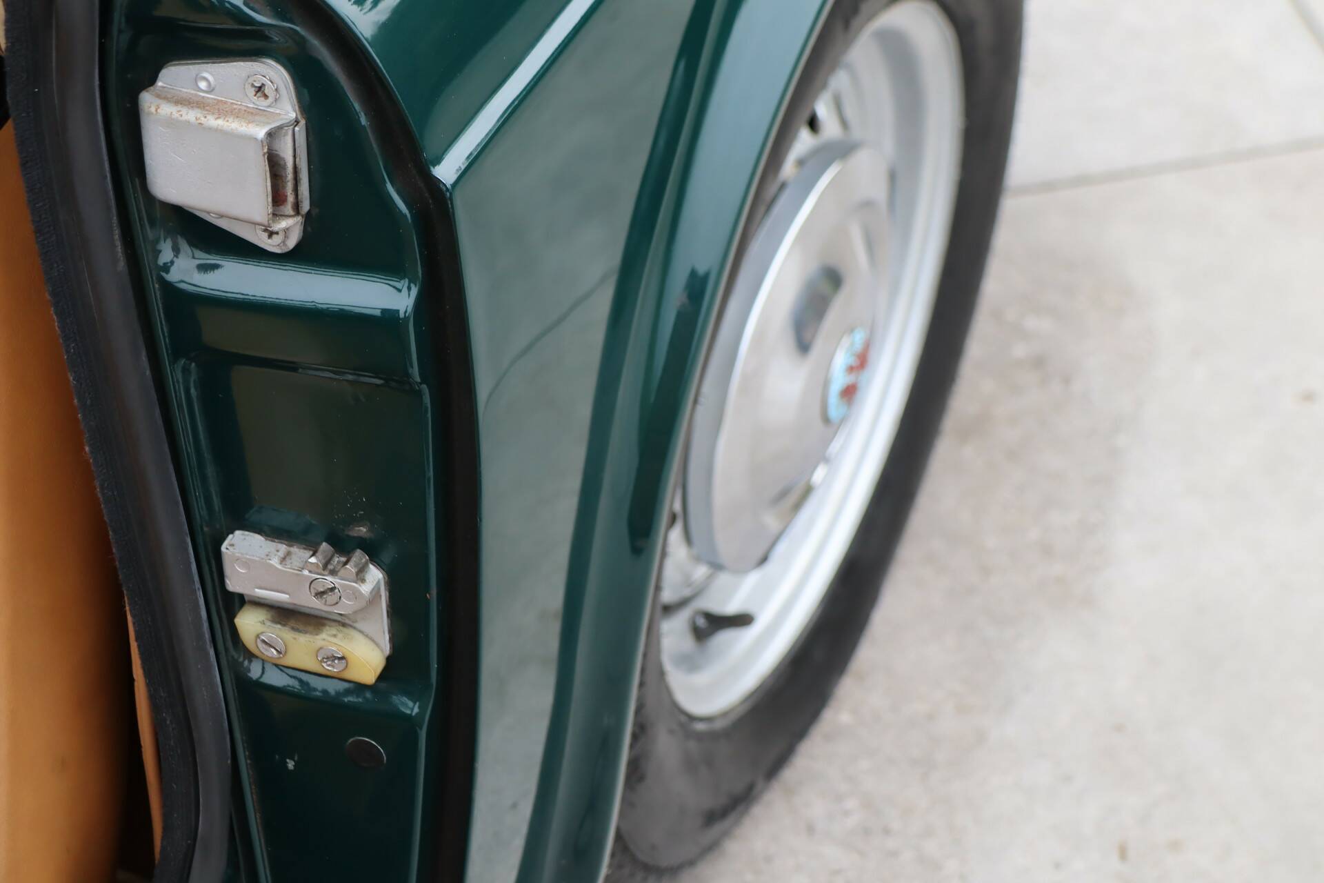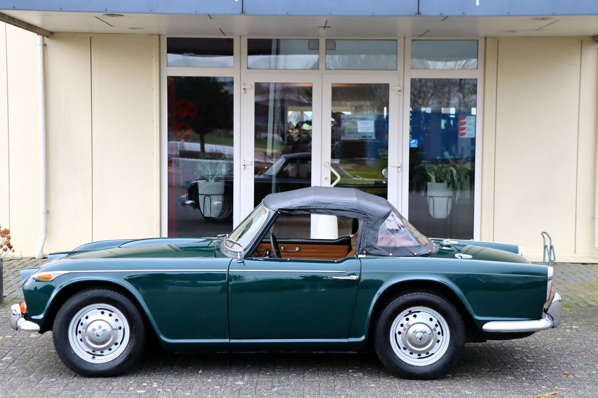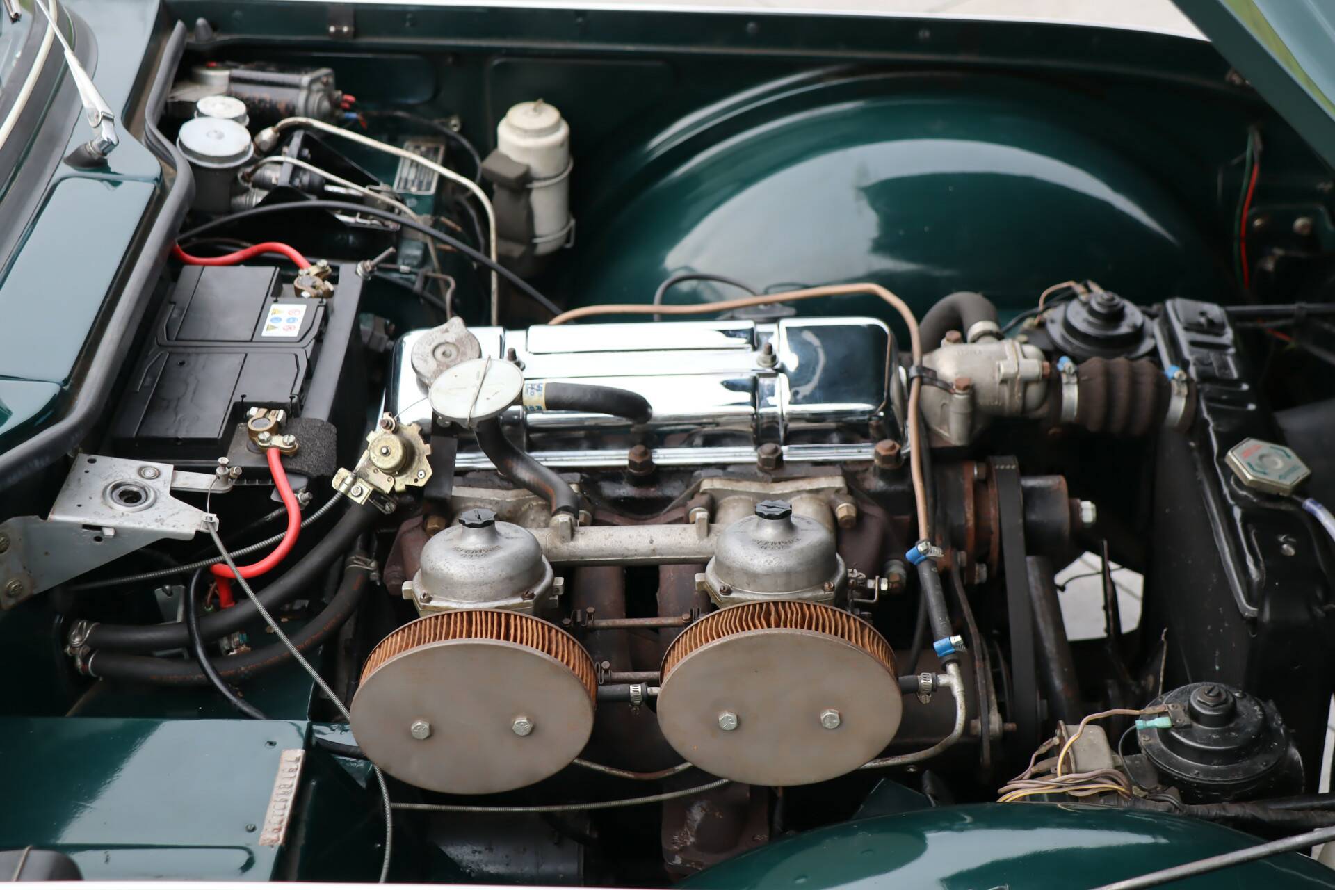 Ein echter Blickfang, insbesondere das von uns angebotene Exemplar in einer wunderschönen Farbkombination: British Racing Green (Farbcode 75) mit einer beigen Lederausstattung. Der Lack wurde in den 90er Jahren neu aufgetragen. Natürlich weist das Fahrzeug einige Gebrauchsspuren auf, aber die Karosserie wurde nicht geschweißt und es handelt sich um ein unfallfreies und sehr robustes Fahrzeug. Die Chromteile und die Beleuchtung sind in einem guten Zustand. Die Gummis weisen Gebrauchsspuren auf. Das schwarze Verdeck ist in einem guten Zustand ohne Risse. Um sich ein gutes Bild zu machen, sehen Sie sich unsere umfangreiche Fotoreportage an, einschließlich Fotos der Unterseite des Autos.