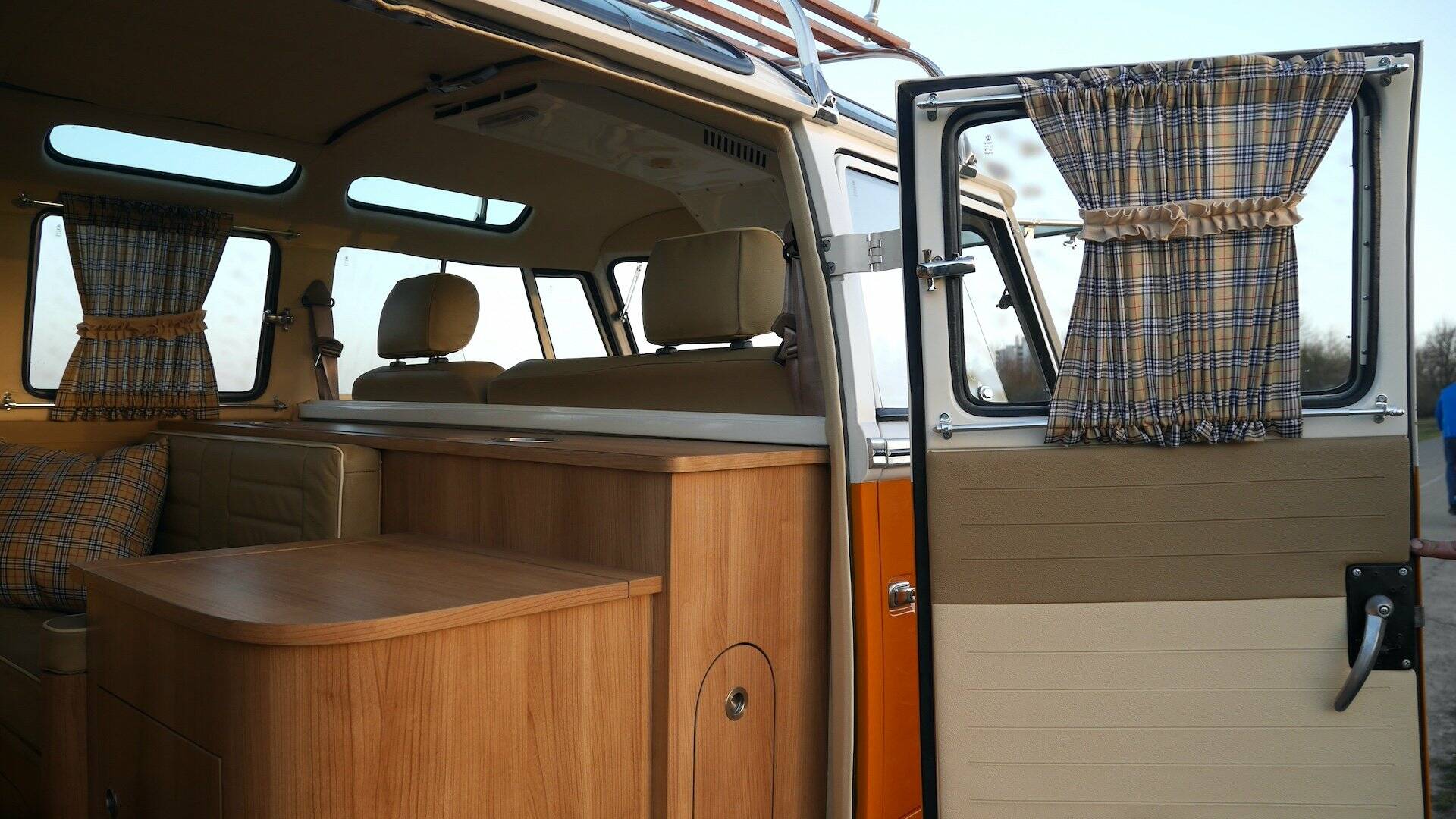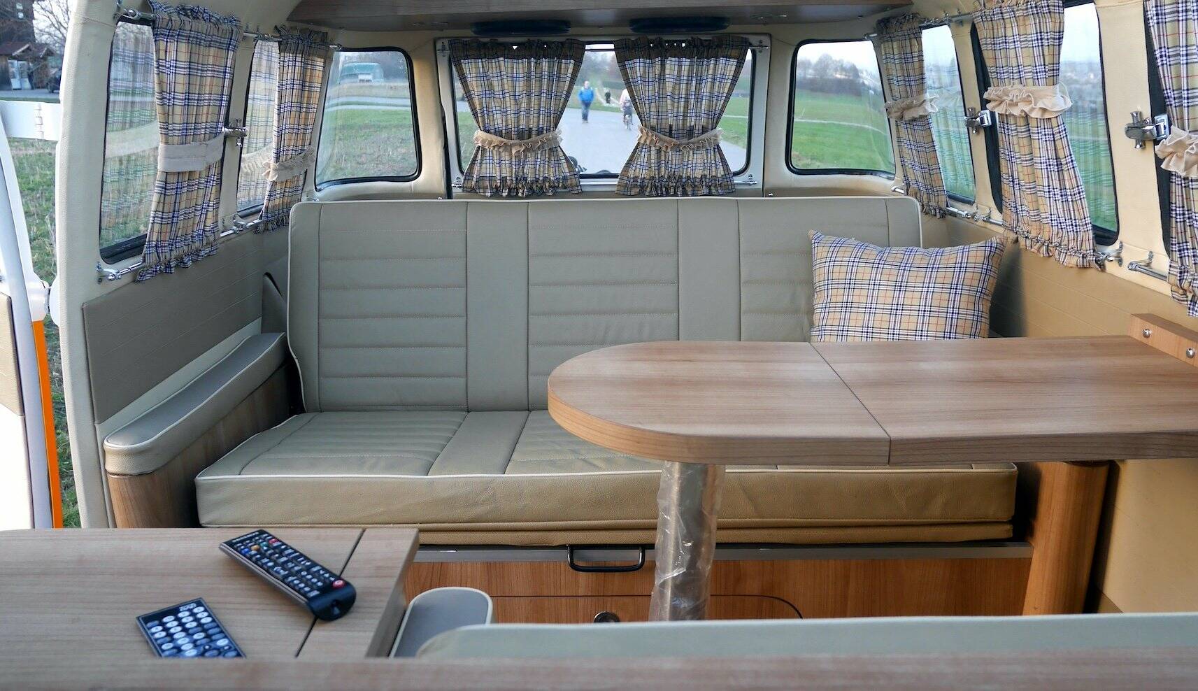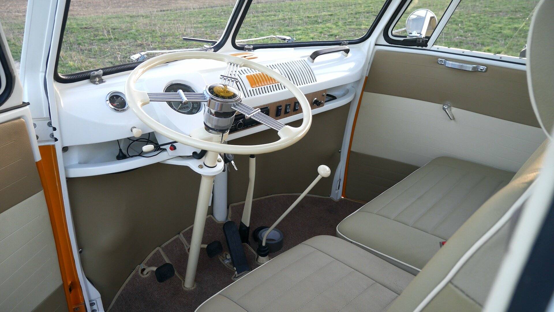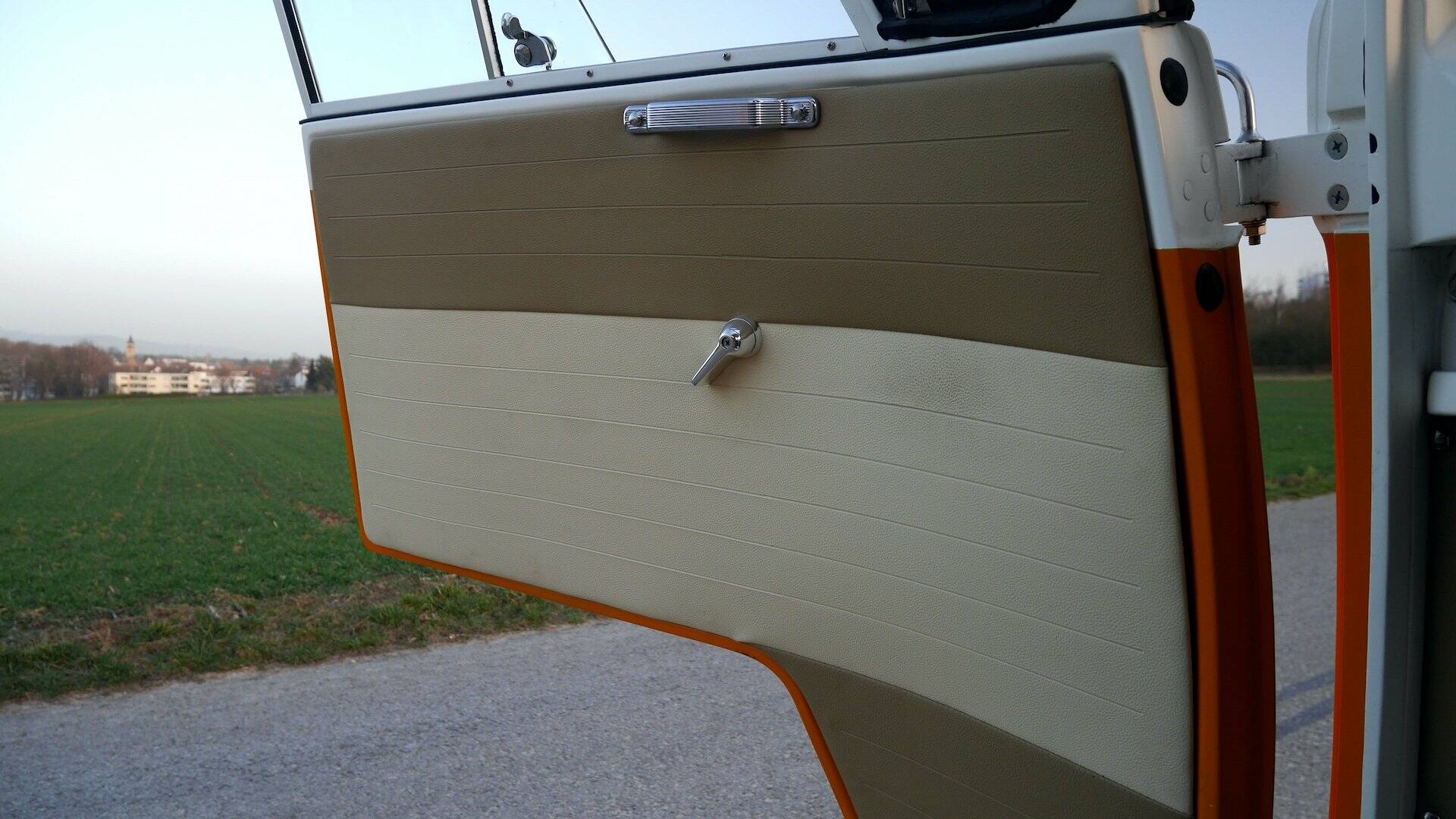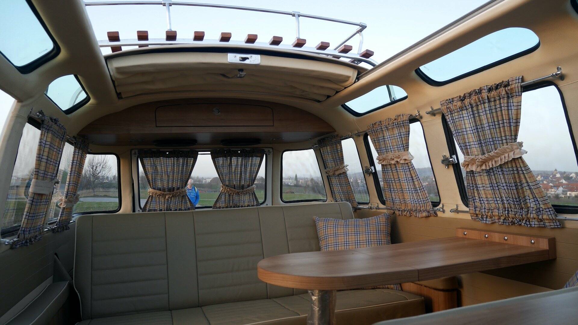 Der Bus wurde komplett restauriert – und zwar nicht mit der üblichen Baumarkt-Romantik, sondern gründlich, ehrlich, handwerklich sauber. Die Karosserie ist neu aufgebaut, die Technik frisch gemacht, der Motor schnurrt wie ein zufriedener Dackel nach dem Abendbrot. Man kann ihn also tatsächlich fahren, ohne ständig in philosophische Gespräche mit dem ADAC geraten zu müssen.
