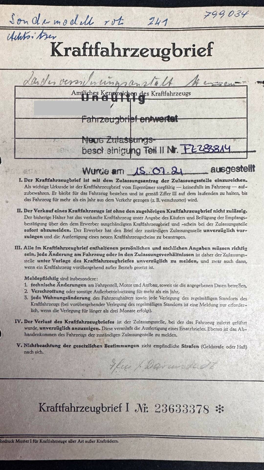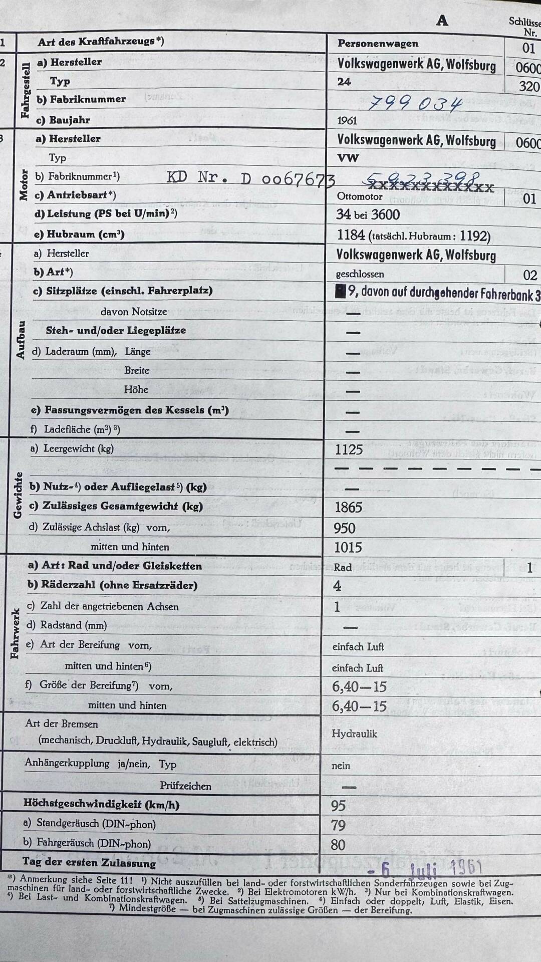 VW Samba Bus T1 // Erstzulassung 07/1961 // Pappbrief