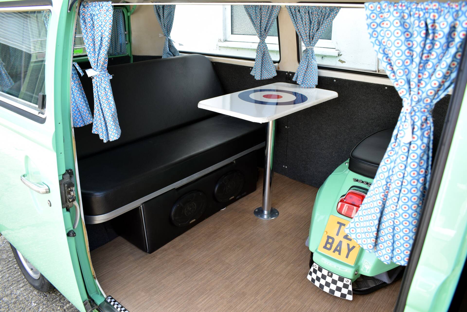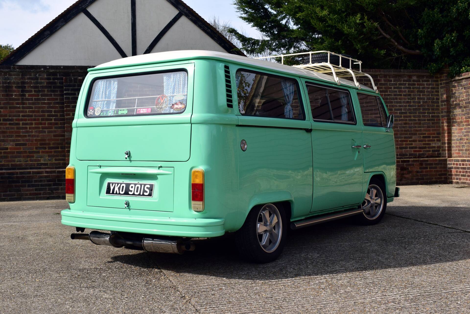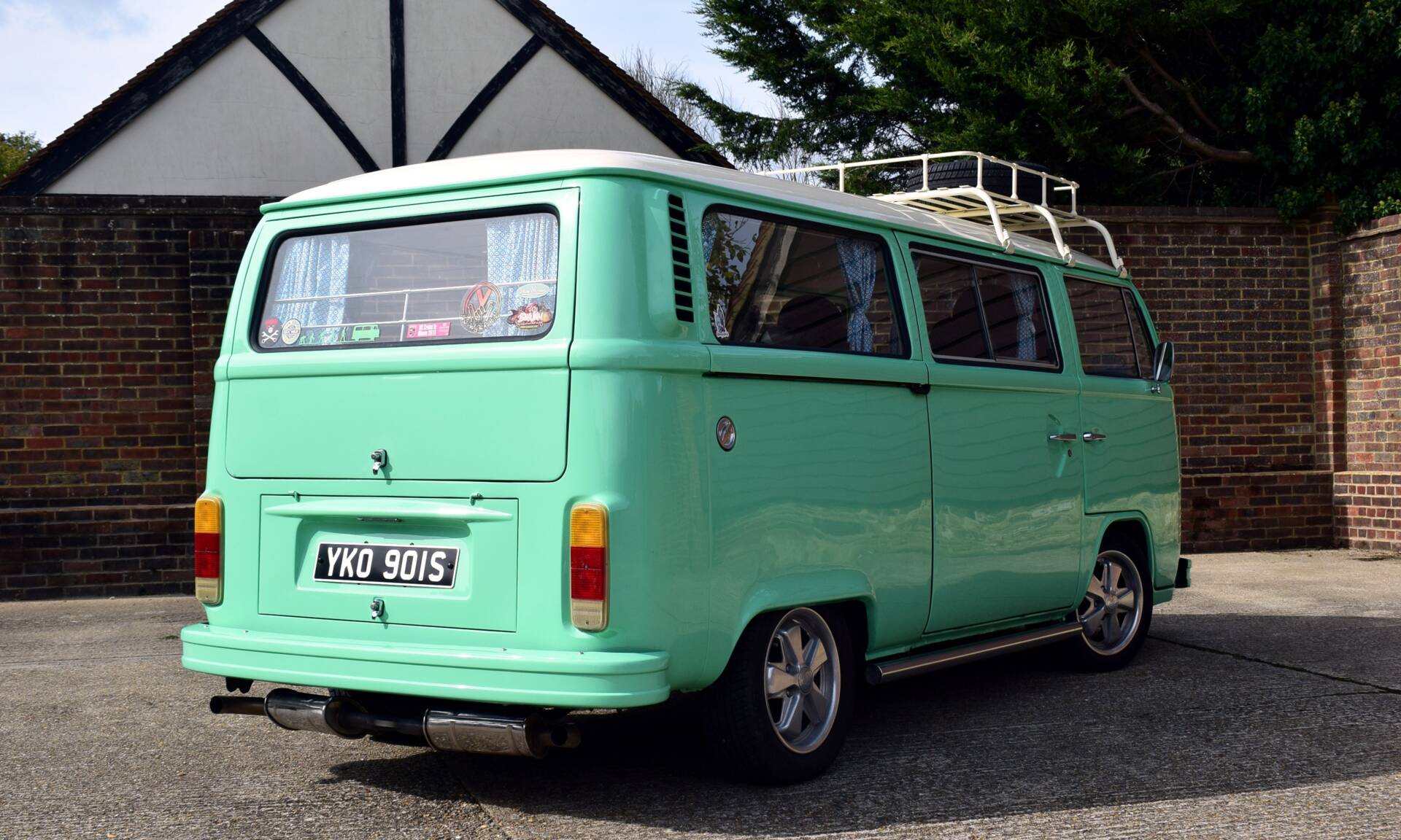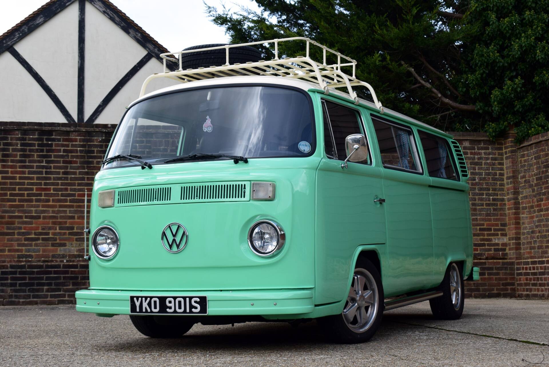 This classic 1978 manufactured Volkswagen T2 Camper Van is finished in Peppermint Green with a contrasting ivory roof and is fitted with 15" Fuchs style Porsche alloy wheels on lowered suspension, it comes with a large, as new, framed tent extension for extra sleeping arrangements and covered entertainment area (would easily accommodate 4/6 people). It has had only two owners since 2009, both Volkswagen enthusiasts, the first of whom set about a complete restoration after purchasing the car, which had been stolen and recovered and consequently was registered as a Cat D total loss, which is purely considered not to be economically viable to repair even though there was no damage! During the rebuild, the 2.0 litre engine was overhauled along with many other modification and upgrades in order to make the Camper more up to date for today's roads along with a bare metal body refurbishment in its Volkswagen classic colour scheme. It is fitted with black leather front seats, a new rock and roll bed, removeable table and a quirky vespa seat in which the stereo and sub- woofer is fitted, wooden sports steering wheel, curtains all round, side chrome sill bars and front cage roof rack to house your luggage, spare wheel and fitted tent etc. This vehicle features on the front cover of the February 2015 VW Vibe magazine with a four page write up. There has been too much work carried out on the vehicle to list here and would have cost far more than the asking price to achieve such a great Camper van as this. It is registered as a historic vehicle, so no road tax or MoT needed and it is ULEZ compliant. This surely is one of the most reasonably priced classic Camper Vans available and in lovely condition. Consigned by James Good