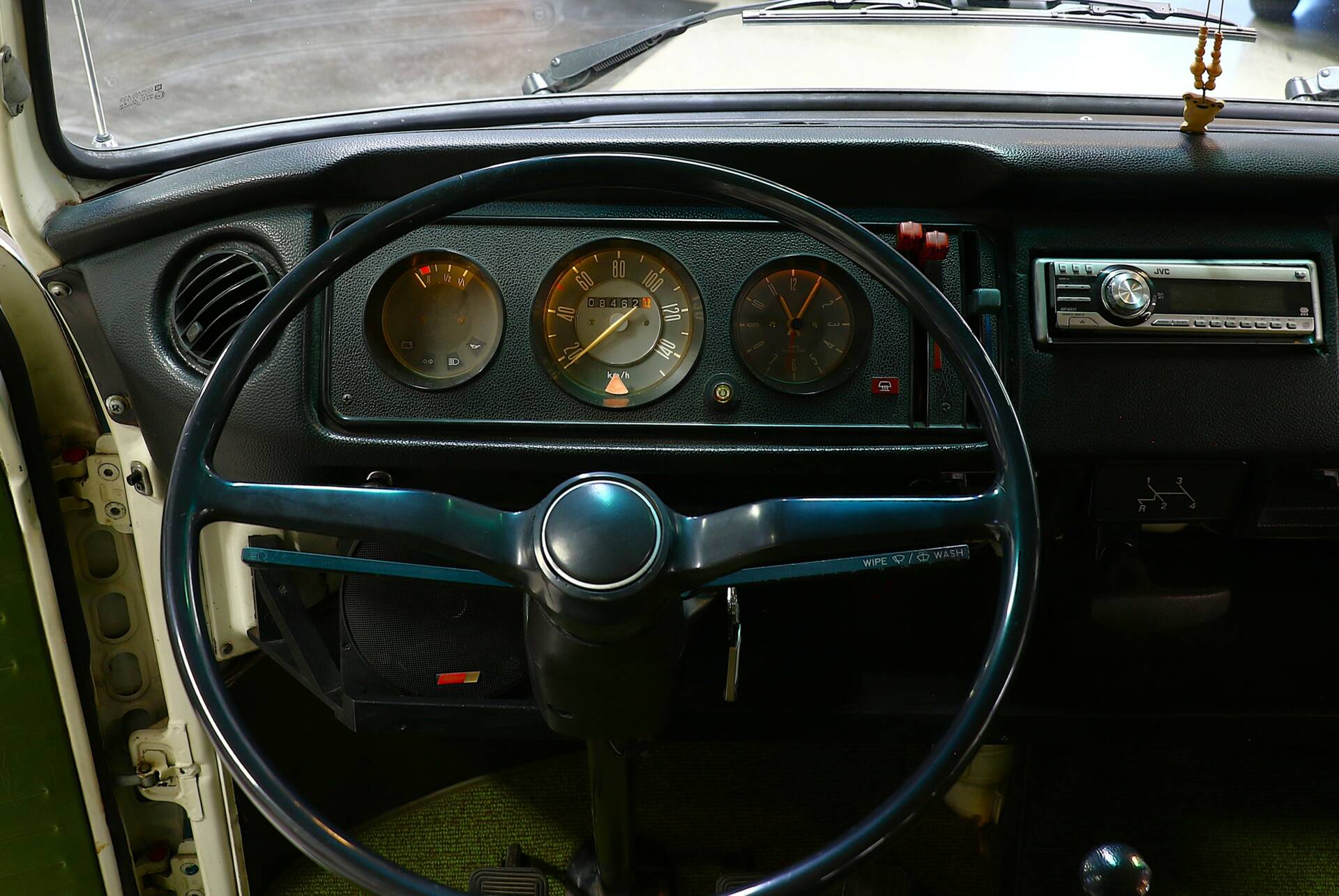 Der Tacho ist fünfstellig und zeigt aktuell 8462 Kilometer. Der Stand ist abgelesen, eine Angabe über die tatsächliche Laufleistung gibt`s leider nicht. Der Bus wurde in unserer Werkstatt technisch fit gemacht und in einen reisetauglich Zustand versetzt inklusive einer kompletten Motorüberholung. Ausgestattet ist der T2-Camper mit dem bewährten Boxermotor mit 1,6 l Hubraum. Er läuft kräftig und es fällt ihm leicht, den Bulli ordentlich zu beschleunigen. Er springt jederzeit sofort an und nimmt willig Gas an. Mit den Scheibenbremsen vorne und Bremskraftverstärker gelingt es diesem Bus, auch im heutigen Straßenverkehr flott und sicher unterwegs zu sein. Vom Spaßfaktor ganz zu schweigen. Der VW-Bus lässt sich federleicht und völlig entspannt fahren. Es macht große Freude durch die Landschaft zu kurven oder tatsächlich auf eine große Reise zu aufzubrechen.