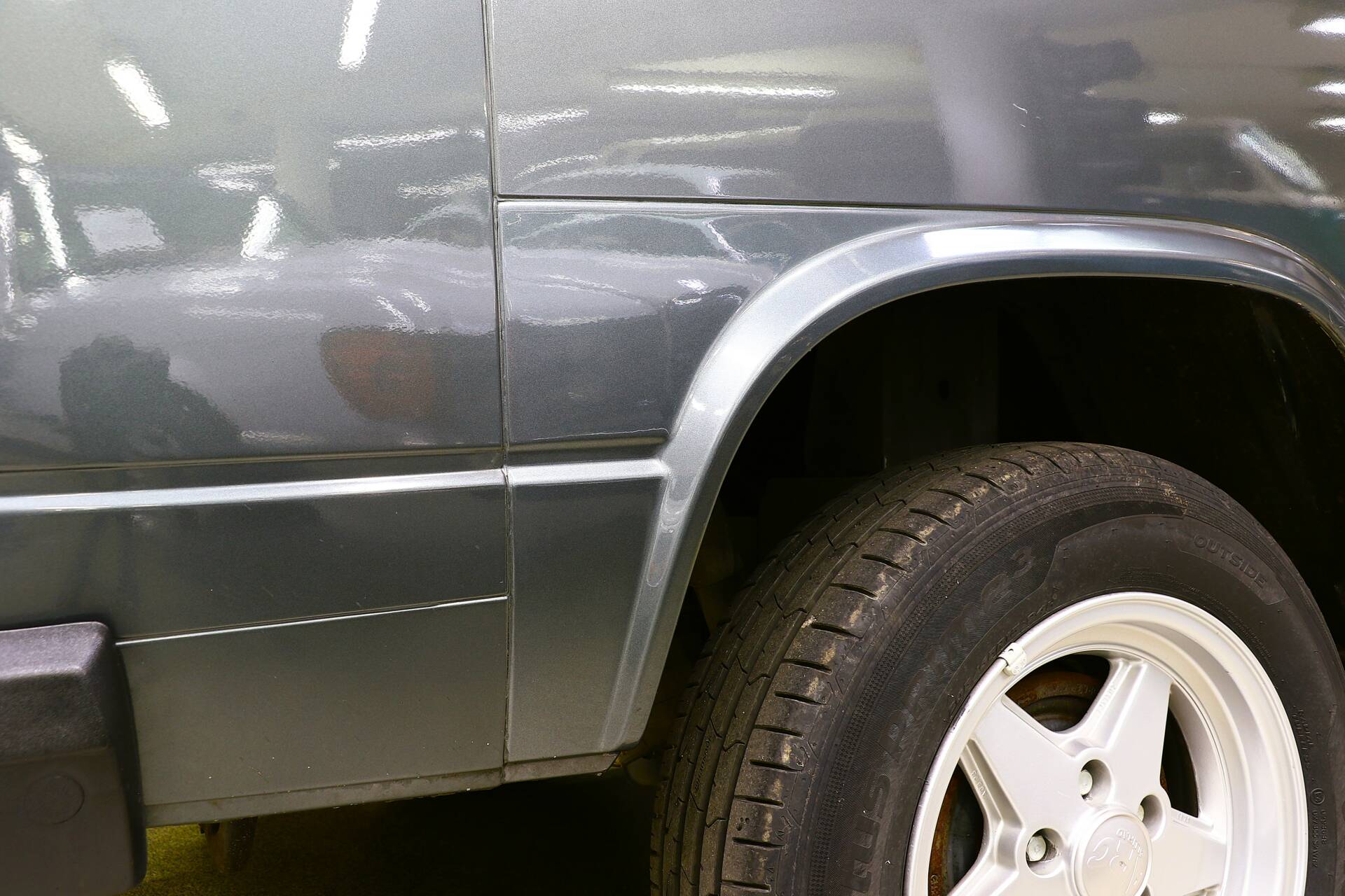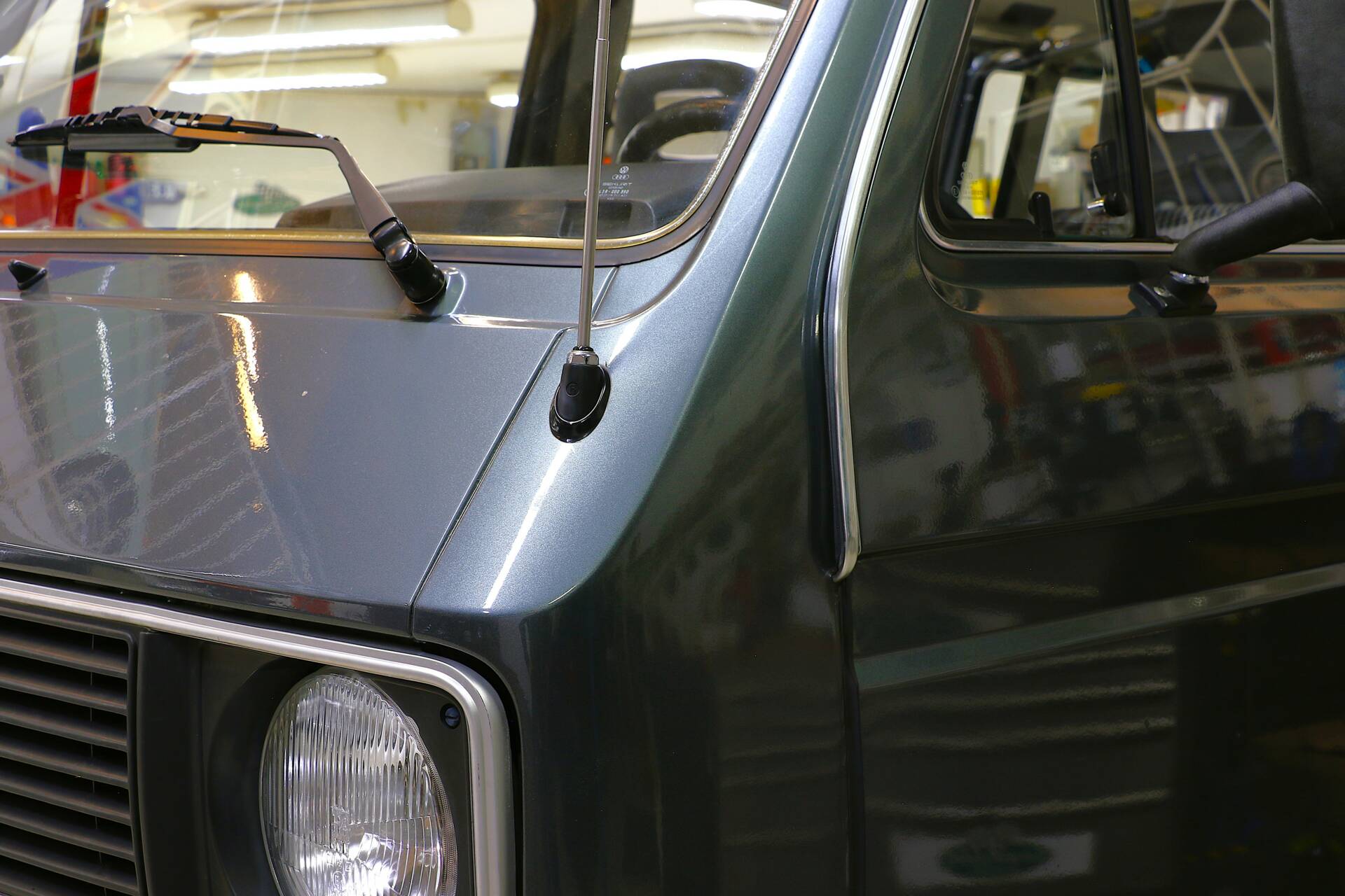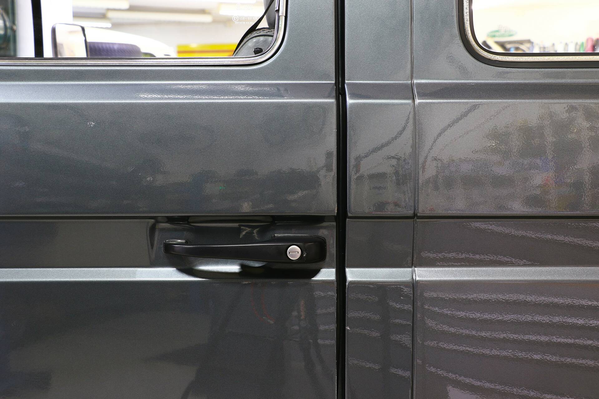 Die Karosserie unseres T3 ist der Historie entsprechend. Die Lackierung in Wolframgrau-Metallic ist weitgehend im Originallack und auch die beim T3 kritischen Karrosserienähte um die hinteren Radläufe befinden sich in guter Verfassung. Die Spaltmaße rundum sind einwandfrei und alle Türen inklusive der Schiebetüre öffnen und schließen perfekt.
