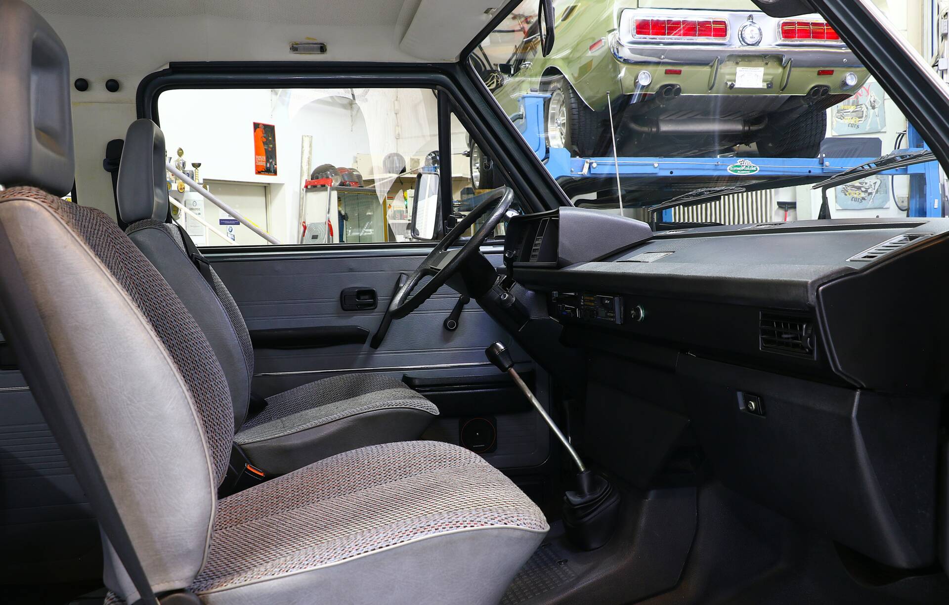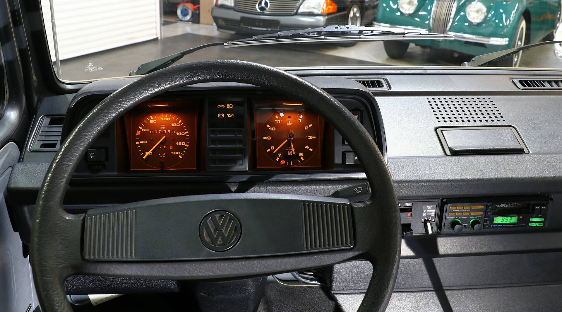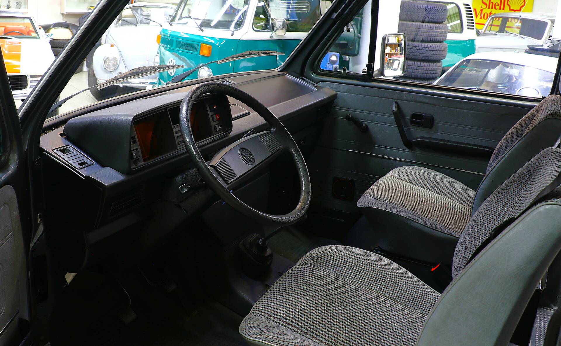 Unser T3 ist aus zweiter Familienhand und wurde zeitlebens überaus sorgsam genutzt, immer gut behütet und sehr wenig gefahren. So steht eine wahre Zeitkapsel vor uns, weitgehend im Originallack mit nur wenigen Gebrauchsspuren. Und glaubhaft versicherten erst 62370 Kilometern auf dem fünfstelligen Tacho. Dementsprechend fährt der T3: Ohne Verschleisserscheinungen, überaus solide und mit sehr niedrigem Geräuschniveau. Dabei liefert der 78 PS starke Vierzylinder-Boxermotor mit perfektem Massenausgleich und Wasserkühlung eine sehr hohe Laufkultur bei niedrigem Kraftstoffverbrauch.