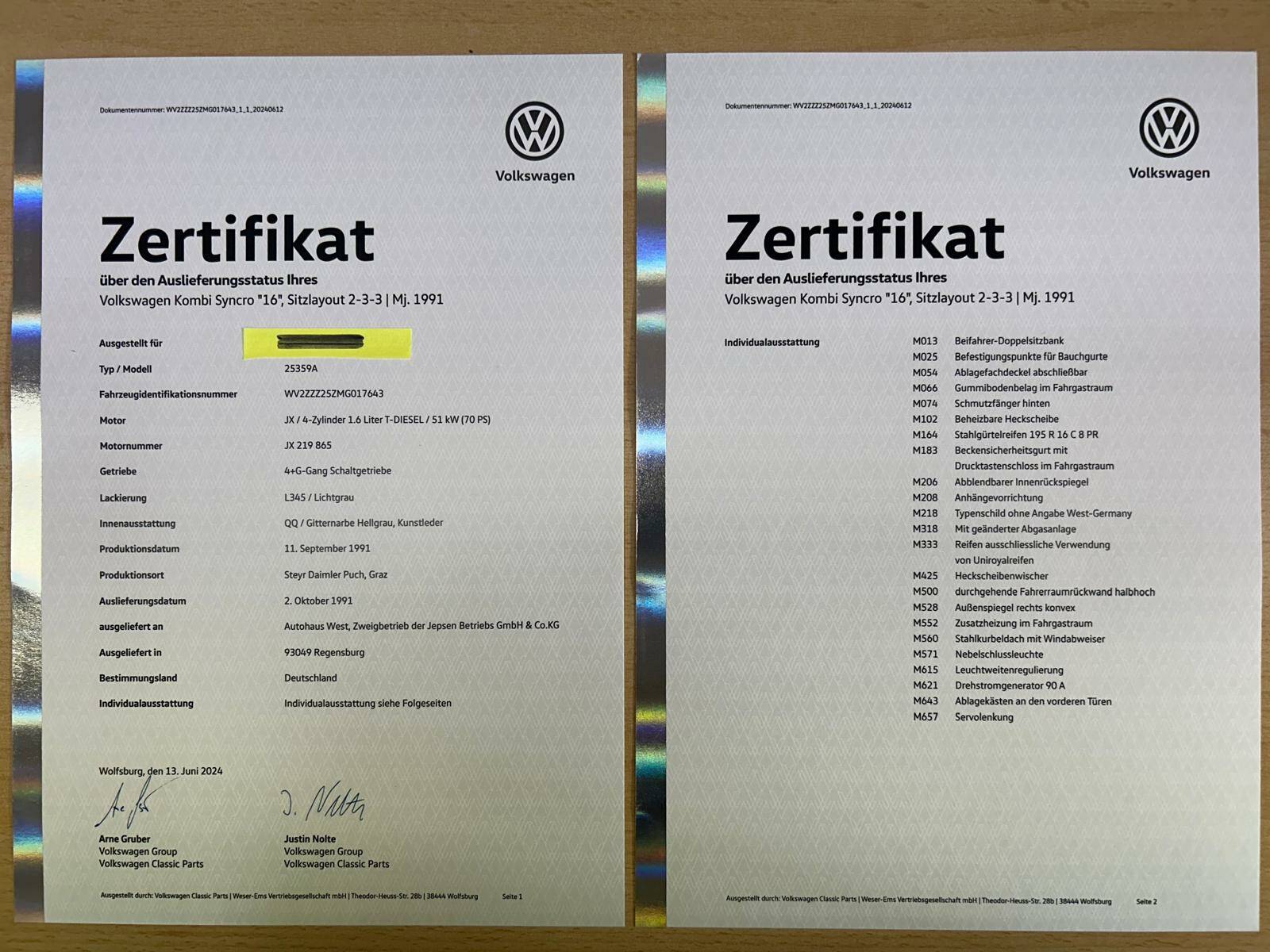 Fahrgestellnummer, M-Plate, Typenplakette vorhanden