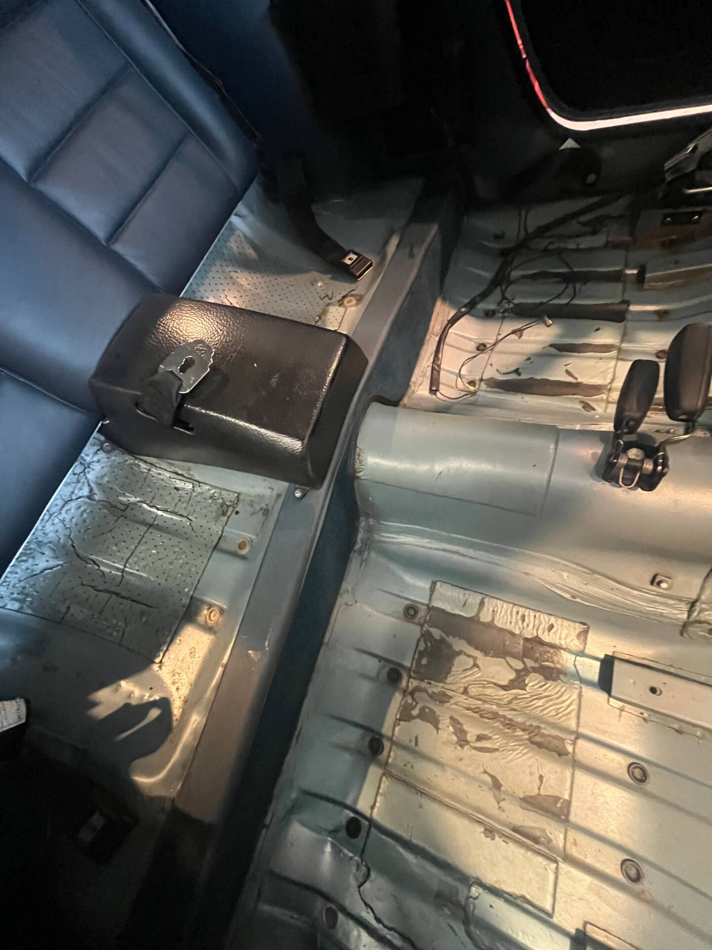Unterboden wurde vom Fachbetrieb trockeneisgestrahlt, bis auf zwei kleine Roststellen kein Handlungsbedarf, Unterboden wurde dann im Originalfarbton lackiert und mit Elaskon klar versiegelt.