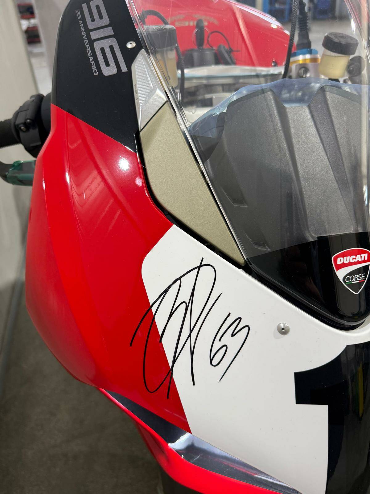 Nuova km 0 mai strada, con tutte le pellicole originali n° 02 di 500 esemplari prodotti per il 25° anniversario del modello 916, autografata dal primo proprietario Francesco Bagnaia, (intestata alla sua Società). Oggetto da veri intenditori..... Trattative riservate, visibile in sede previo appuntamento.