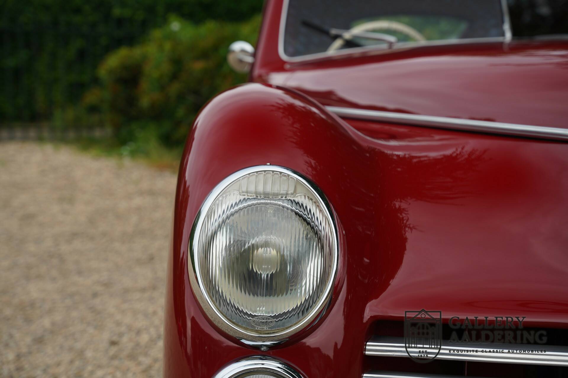 Between 1947 and 1950, approximately 2,500 6C 2500’s were built, of which only 680 being the model you see here: the 6C 2500 Sport Freccia d'Oro, which means "Golden Arrow." This model was able to compete amongst the absolute top at the time. The body was no longer bolted to the chassis but welded to it. This was completely new and was first applied to the Freccia d'Oro by Alfa Romeo.