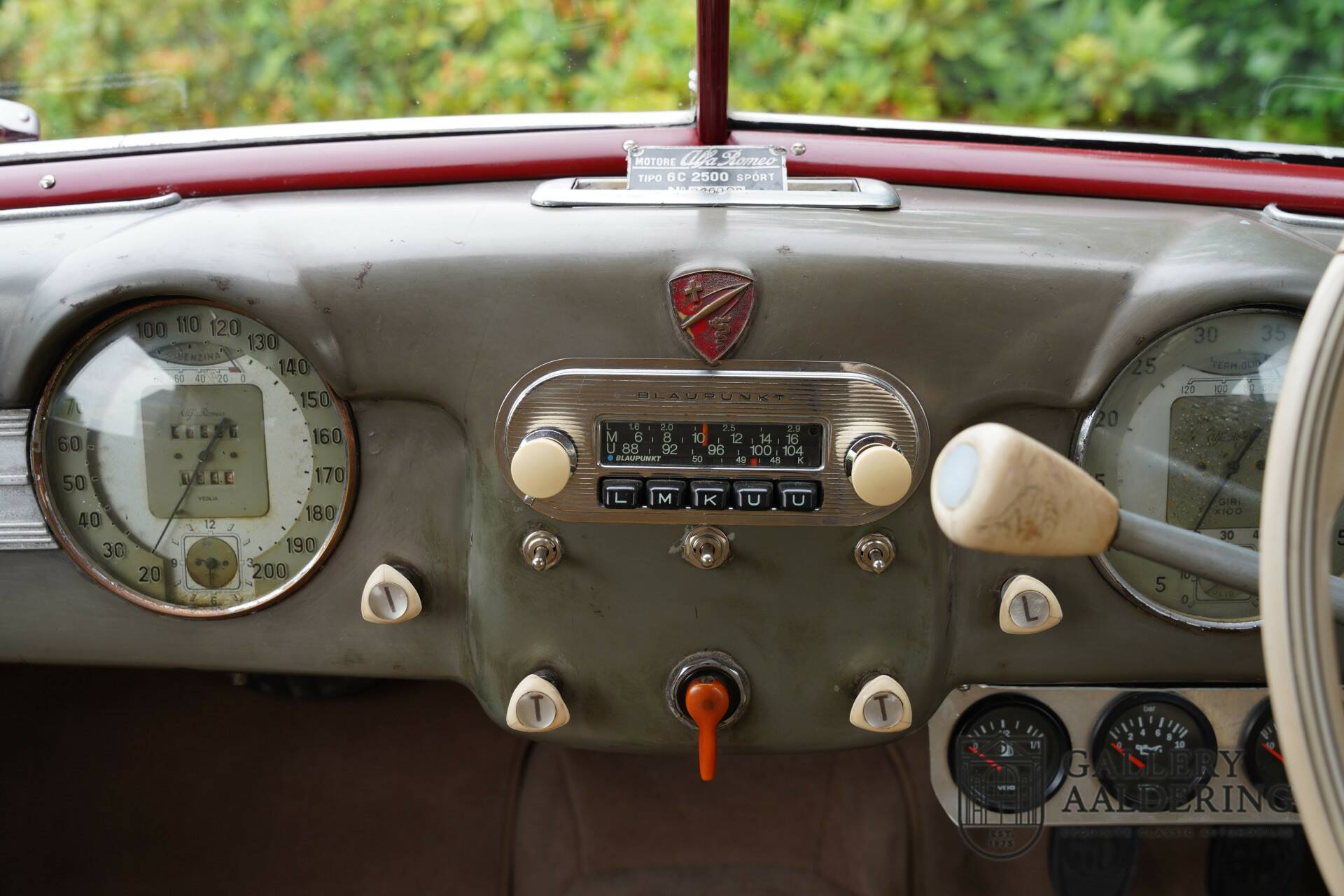 The car you see here has been fully restored with great respect for its originality. This means that anything beautiful enough to be kept original remained so. The interior is completely original, as is the dashboard, with a fantastic working set of instruments. Behind the wheel, you will feel as if you are transported back to the time when this Alfa Romeo was new. Considering what was possible in terms of production and the machinery used at that time, it is almost incomprehensible how beautiful this interior must have been.