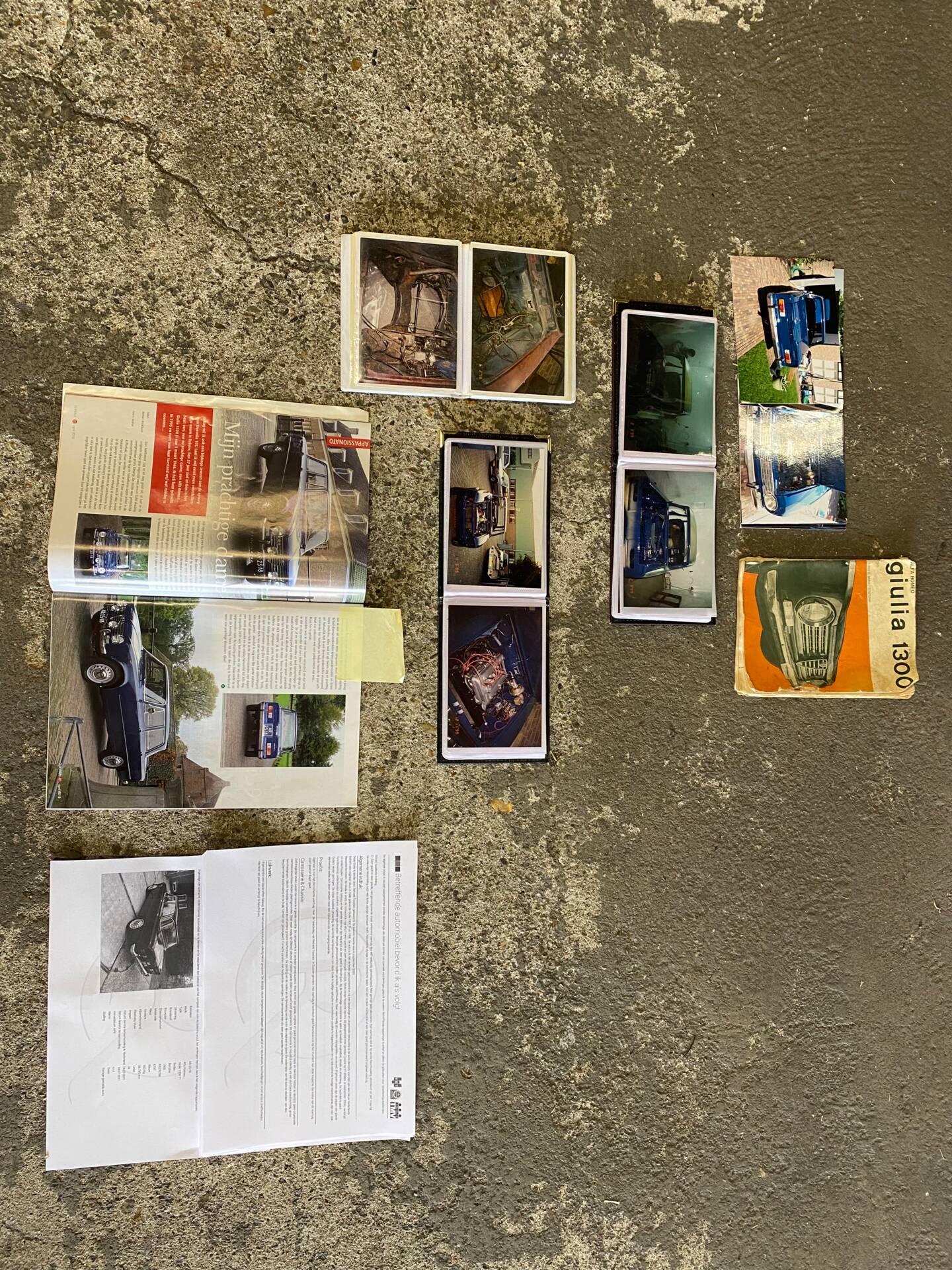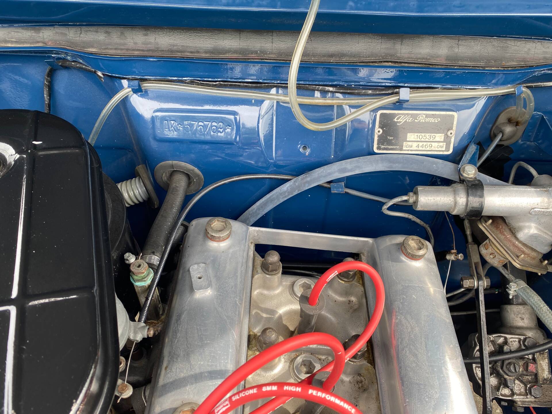 This Alfa Romeo Giulia was delivered new in 1966 to its first Italian owner in Farnese, Italy. In the early 1990s it was brought to the Netherlands by a Dutch Alfa Romeo enthusiast. Although the engine was damaged, the bodywork was solid. In 1994 the Giulia was advertised for sale in the magazine of the Dutch Alfa Romeo Club, where the last owner purchased it as a hobby project. In 1995 the complete disassembly of the car began. Step by step a restoration plan was made, and in 1999 the car was repainted in its gorgeous blue color. The body was so solid that no welding was required. The entire process has been documented in photo booklets.