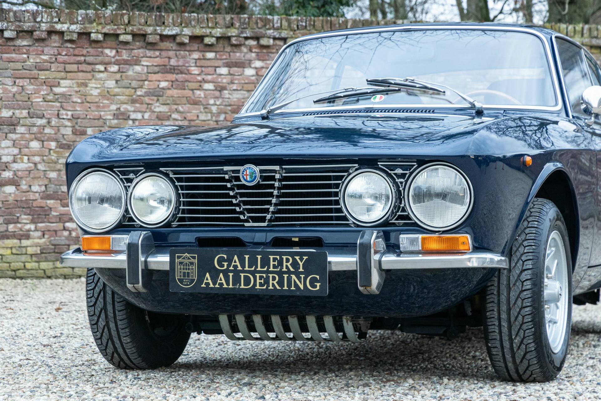 Alfa Romeo 1300 GT Junior Bertone Bodywork restored and rebuilt in 2012, Refinished in Blu Olandese and fitted with new black upholstery, Registered in the Netherlands since 2012, The "machinery" has been overhauled in the past and has been well maintained since then, Photo report and invoices available, A characteristically driver-oriented quality,