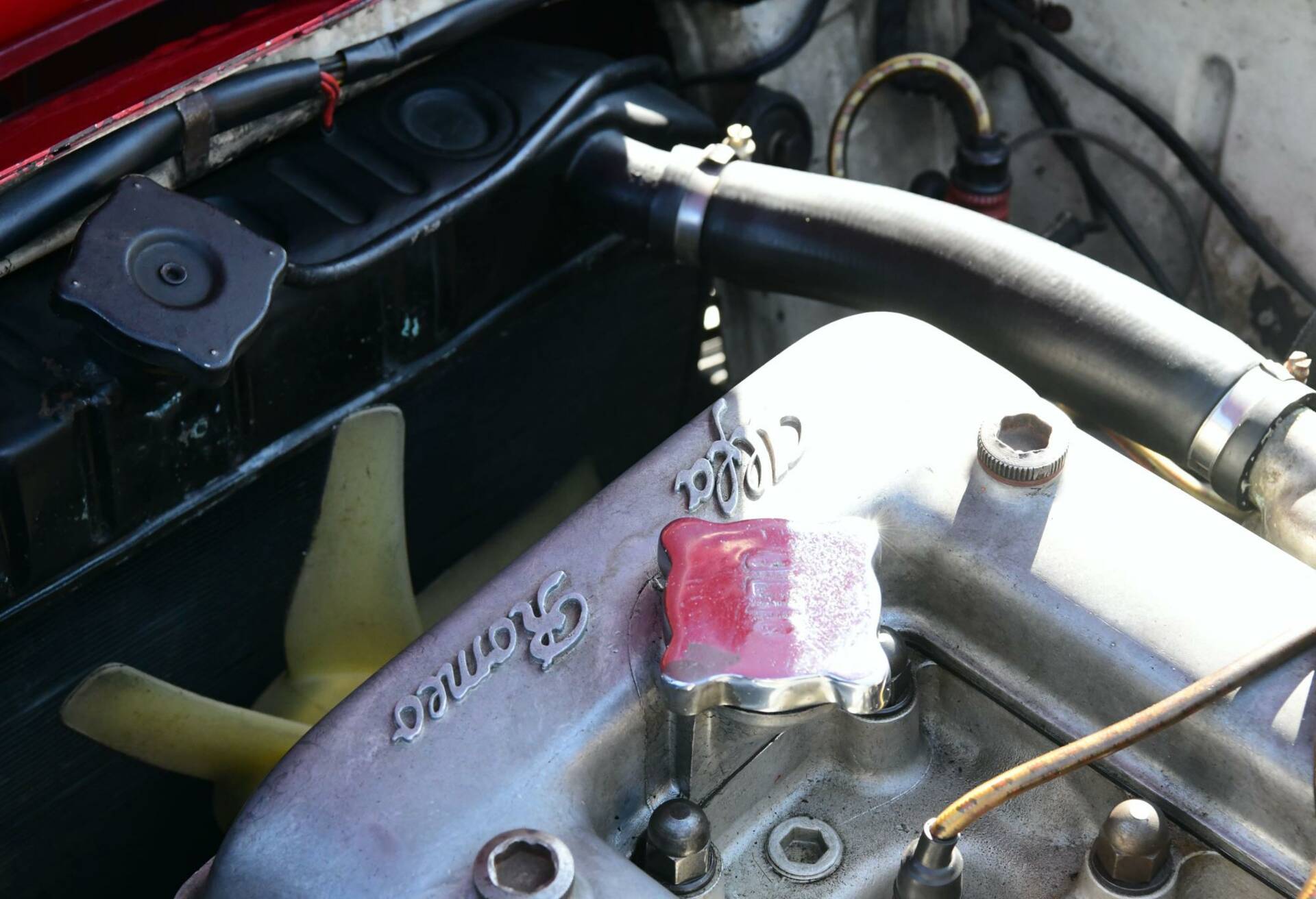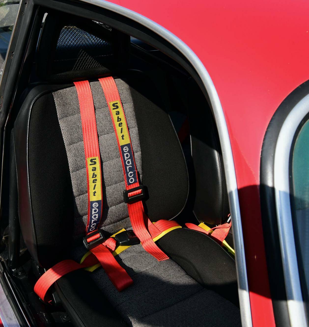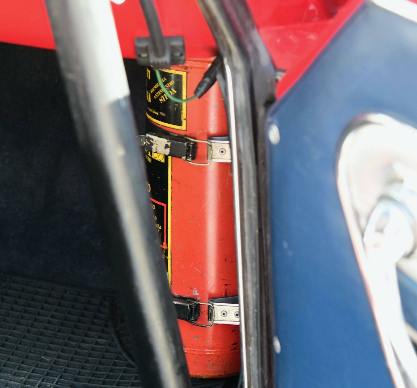 This Alfa Romeo presents itself in a gleaming Rosso Corsa exterior and two-tone black and grey fabric interior; inside you will also find a roll cage, fire extinguisher, extra gauges and Sabelt 4-point seatbelts. The car is, simply put, ready to be put on the road and track. Bosch extra fog lights have been fitted to the front.
