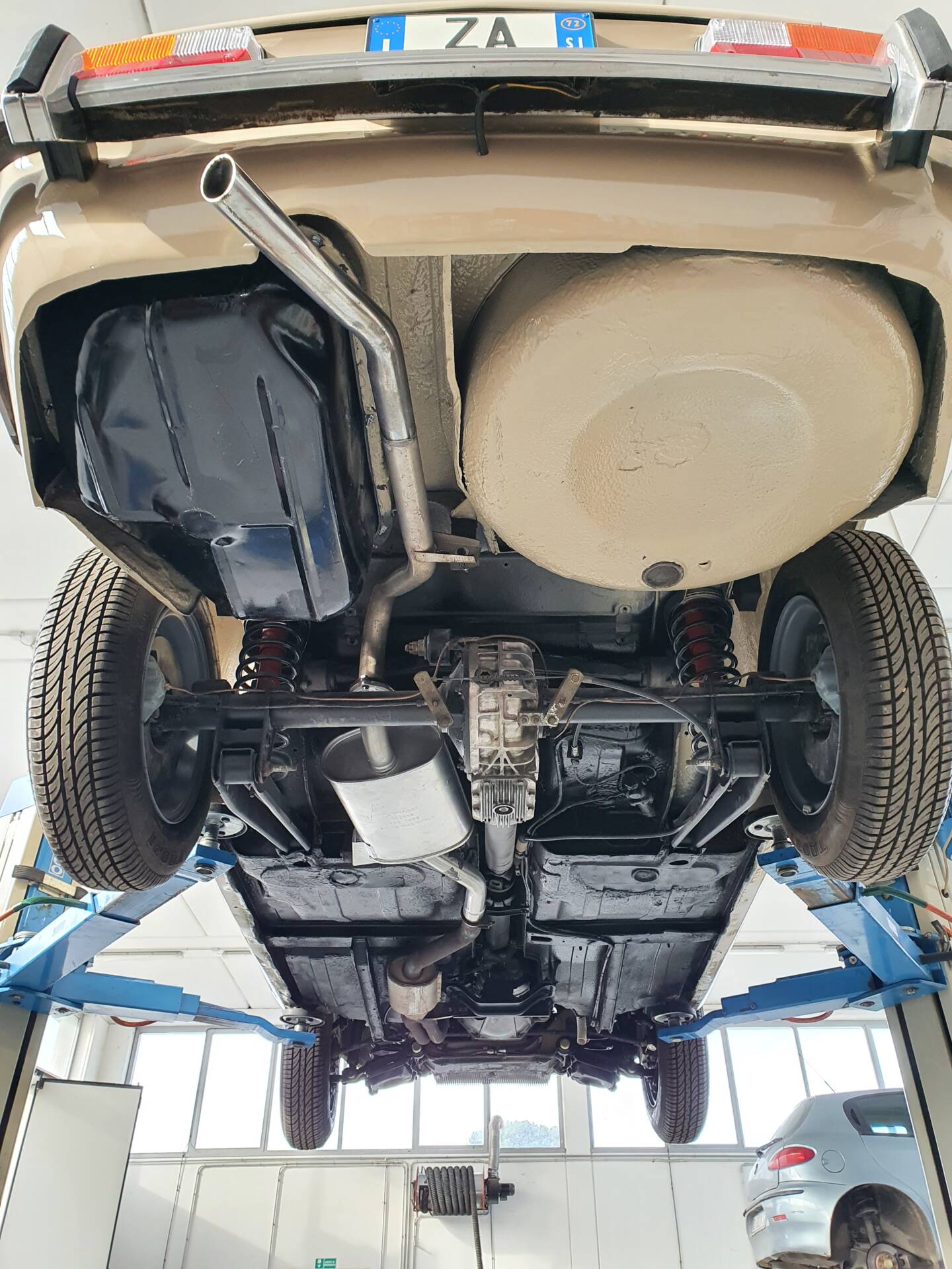 Restauro professionale di carrozzeria e di meccanica. Sospensioni, freni, guarnizioni (Cigognani), interni (Tappezzeria Umbra) … tutto nuovo. Motore con canne e pistoni nuovi, pompe, valvole, bronzine, etc. Dotata di 5 Cerchi Cromodora con Michelin nuove. Ho book fotografico e tutte le fatture dei ricambi e dei lavori fatti. Solo benzina 100 ottani.