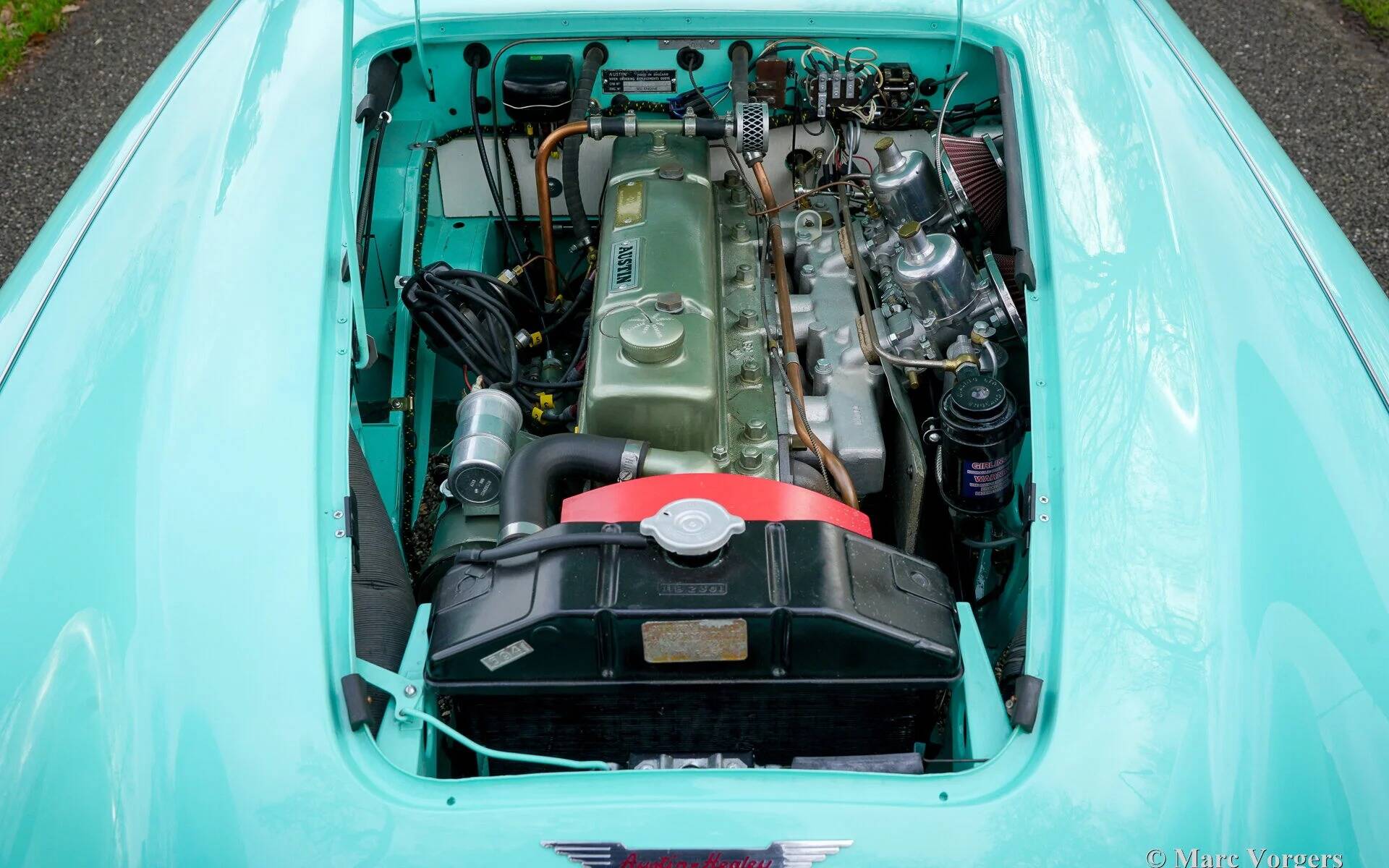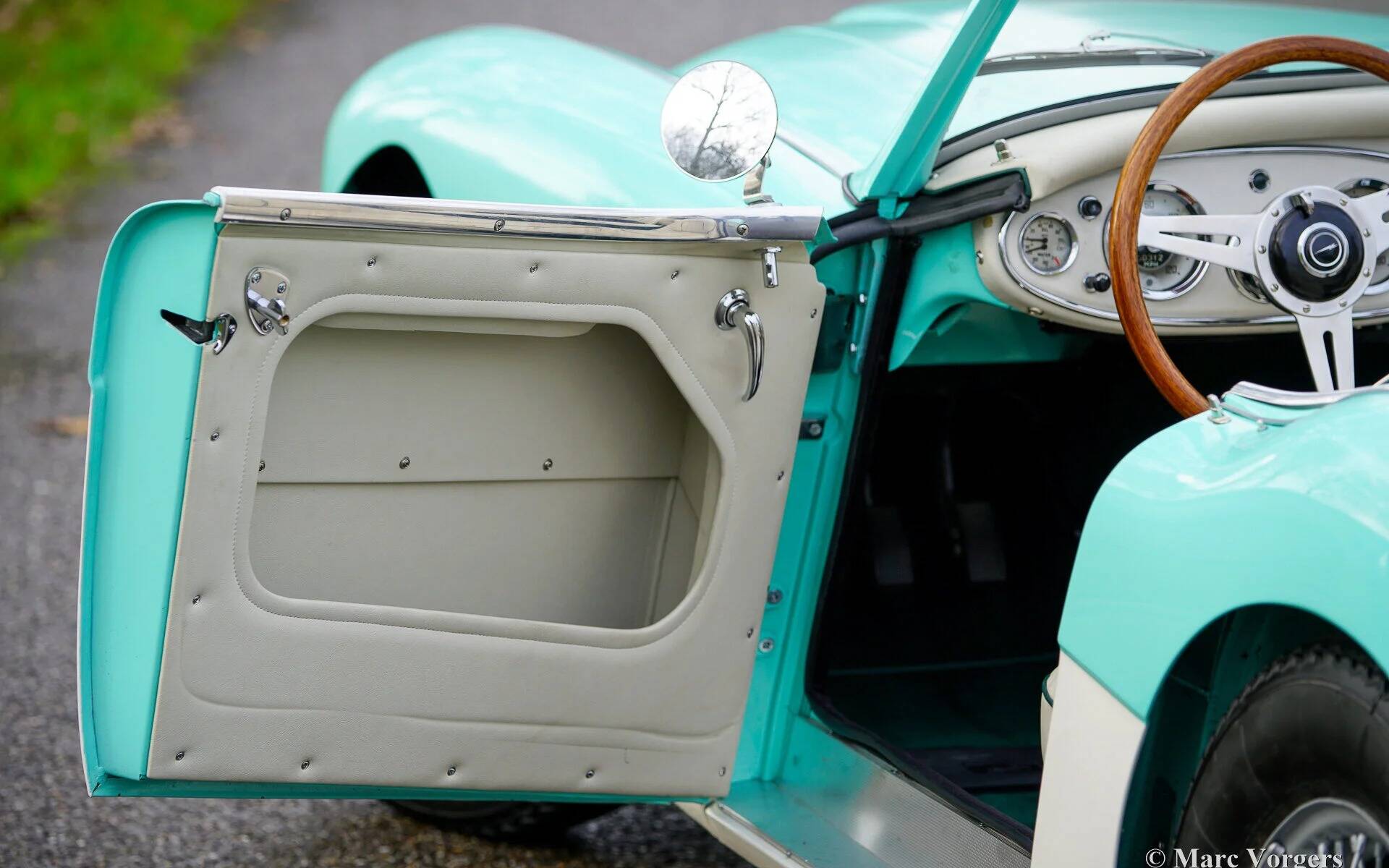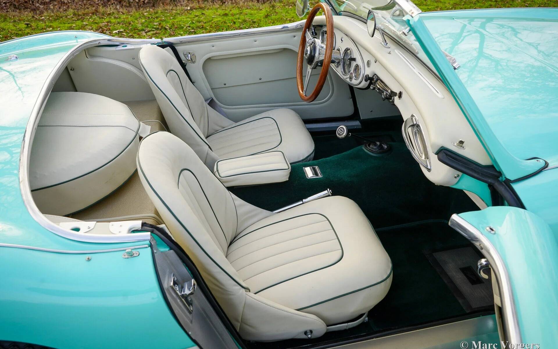 This beautiful "Big Healey" is finished in Florida Green over cream white and features a light beige (Magnolia) leather interior with teal piping and teal carpet. Only 355 examples of the Austin Healey MK II BN7 were built between April 1961 and June 1962, making it the rarest Healey 3000 production model. This stunning example was imported from Texas, USA, to the Netherlands in 2020 and subsequently extensively restored to original factory specifications. The work was completed in 2023.
