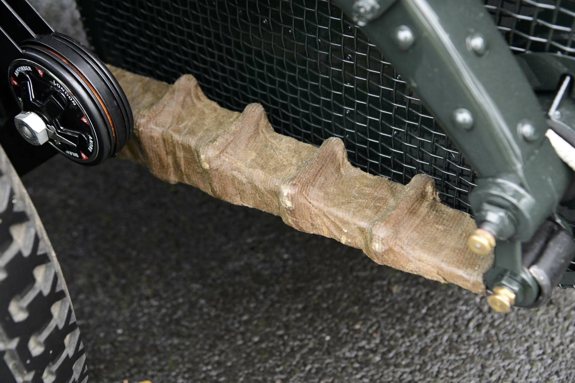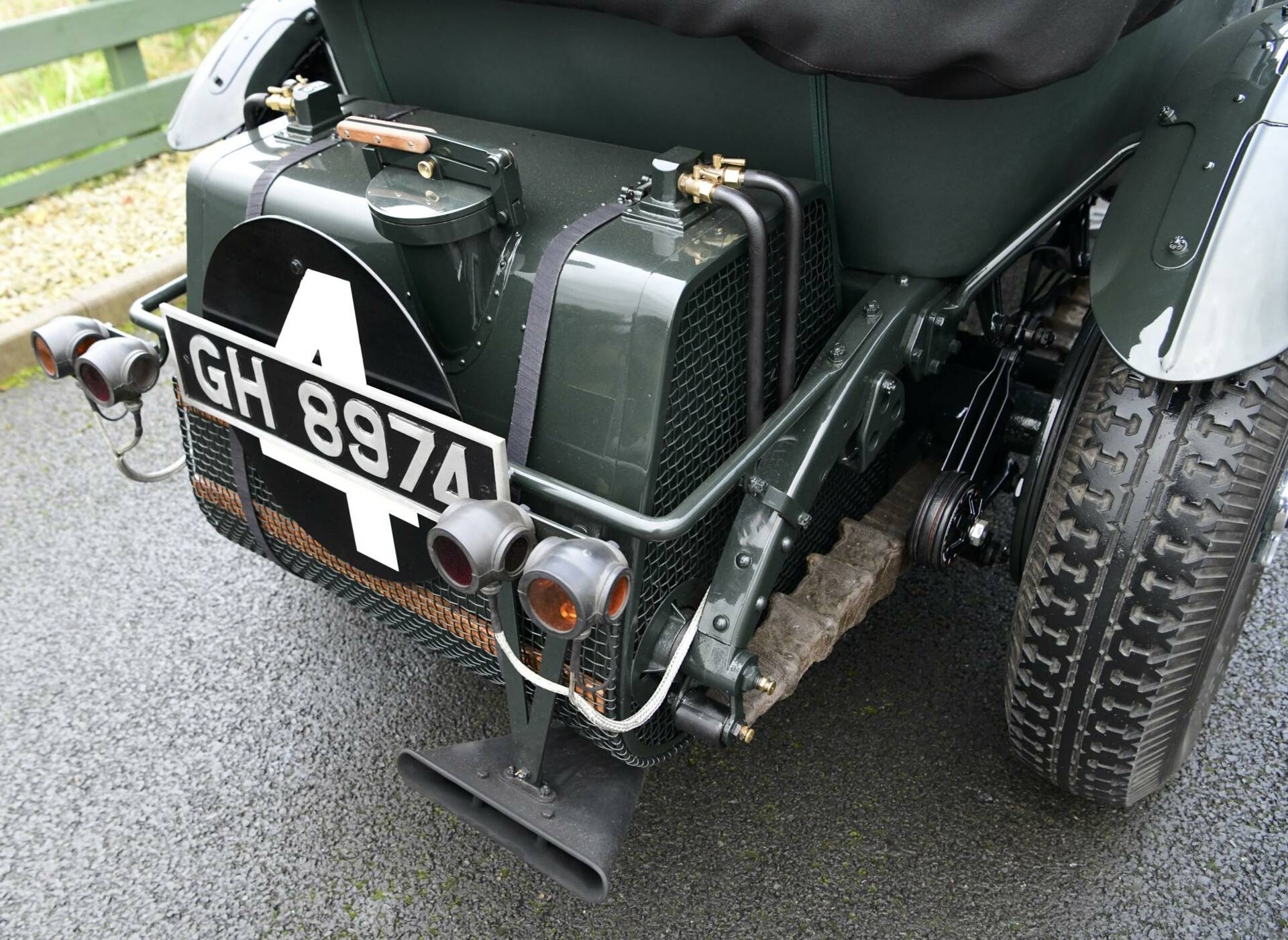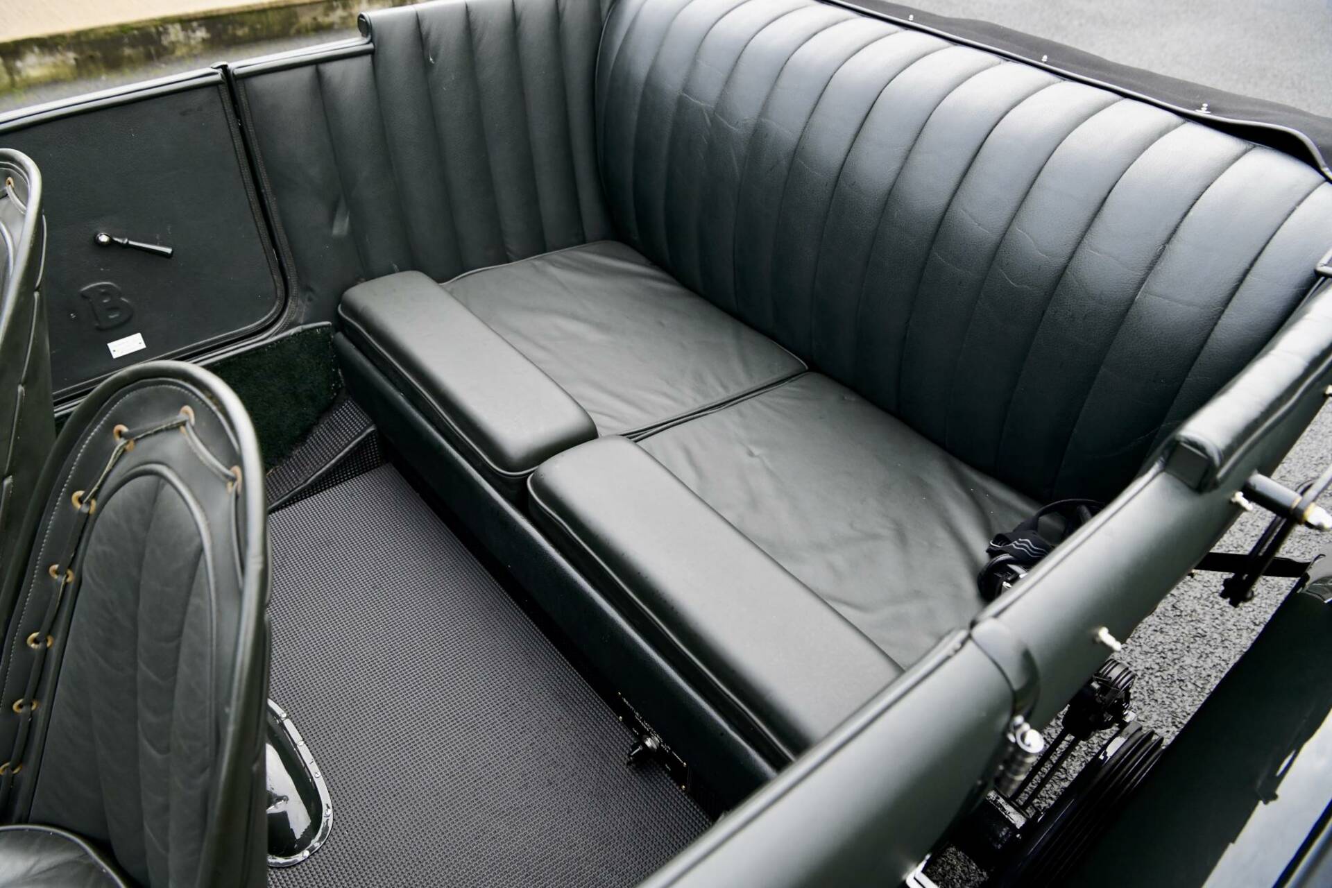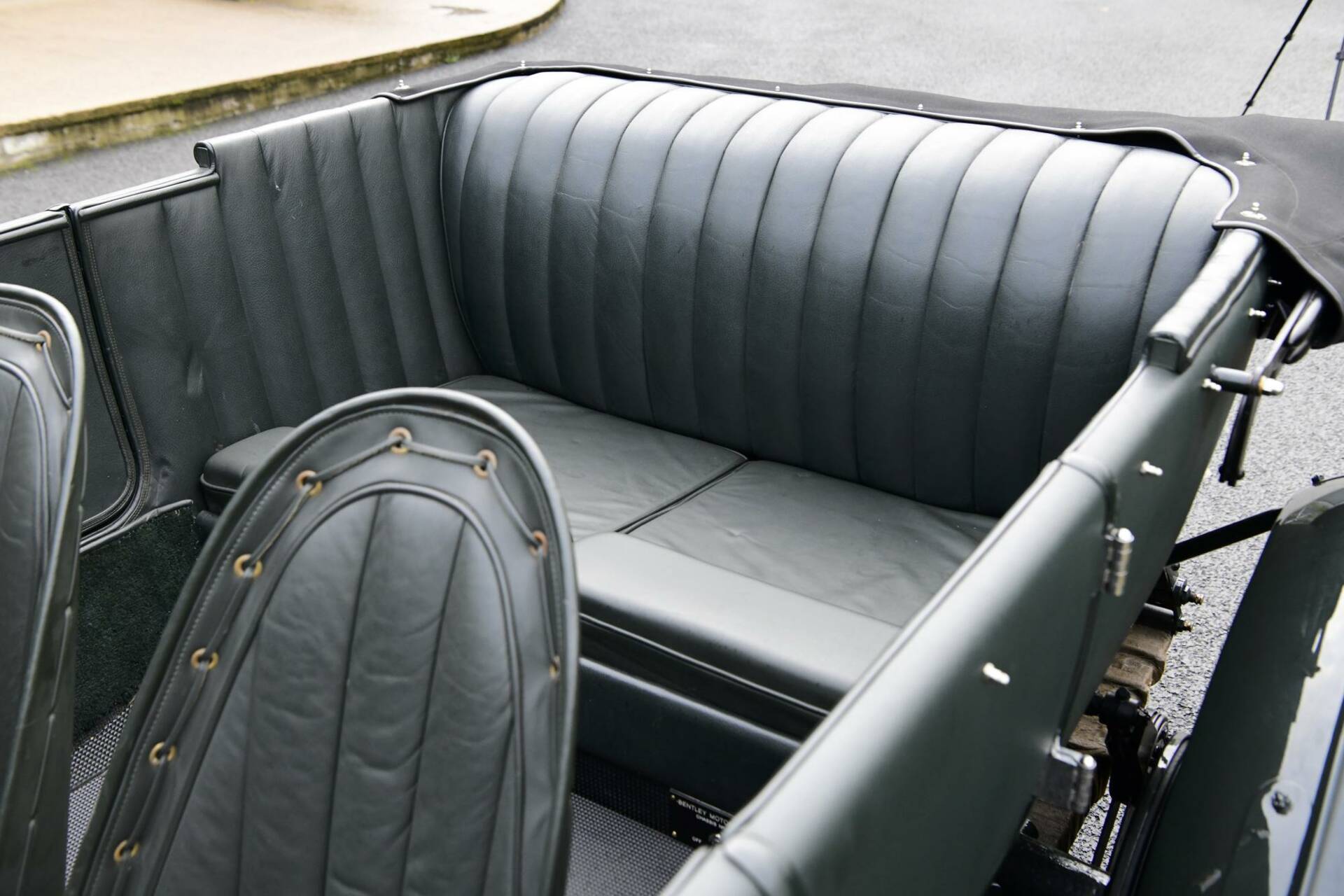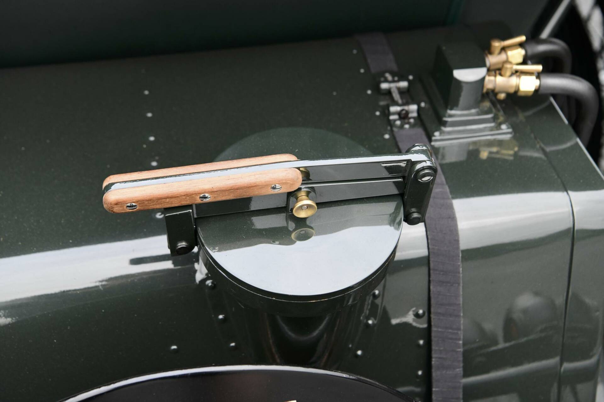 Lovely Marechal lamps are fitted up front & the leaf springs are painstakingly wrapped in cord. Bucket style light weight seats are installed up front upholstered in new green leather.