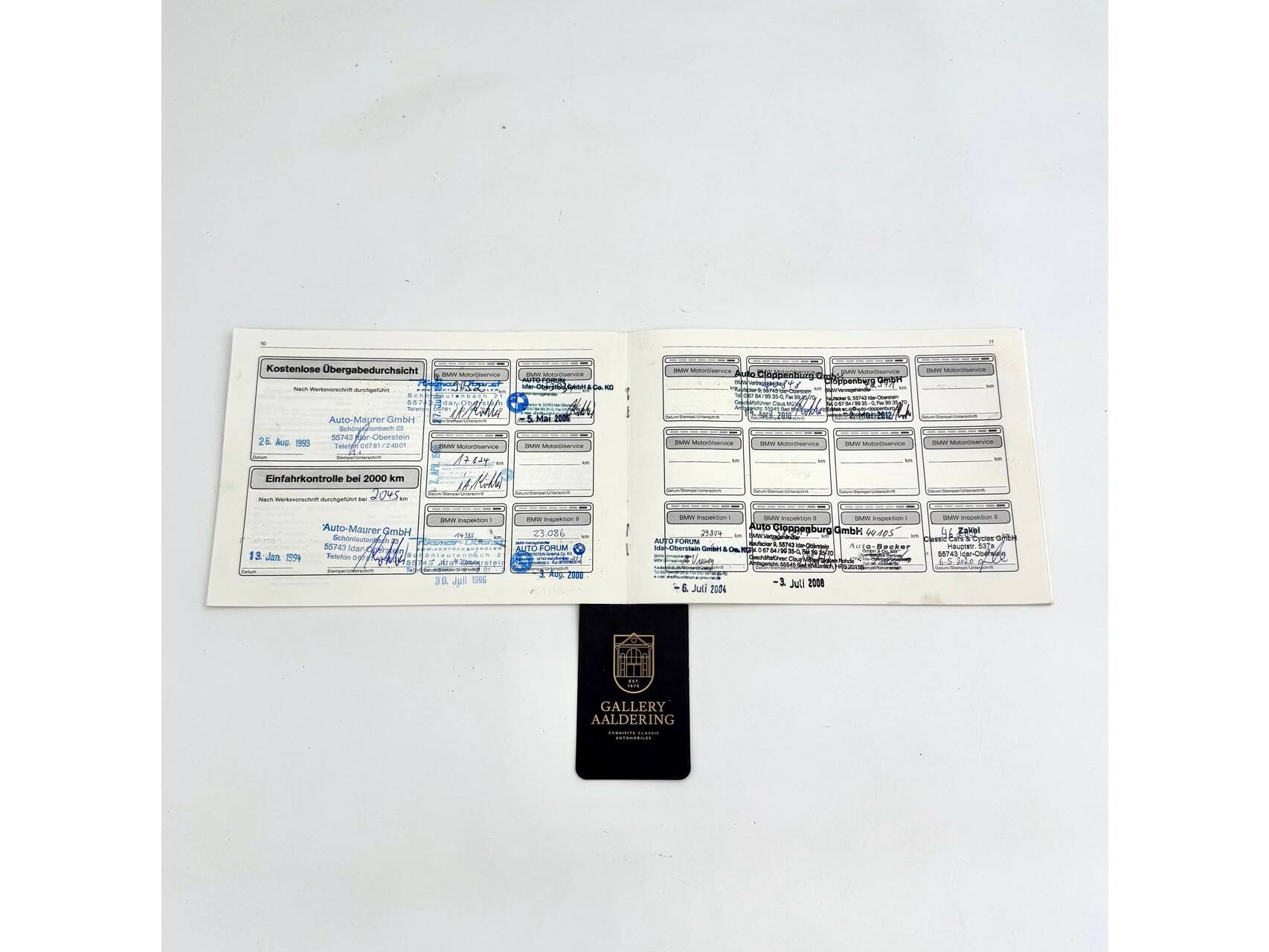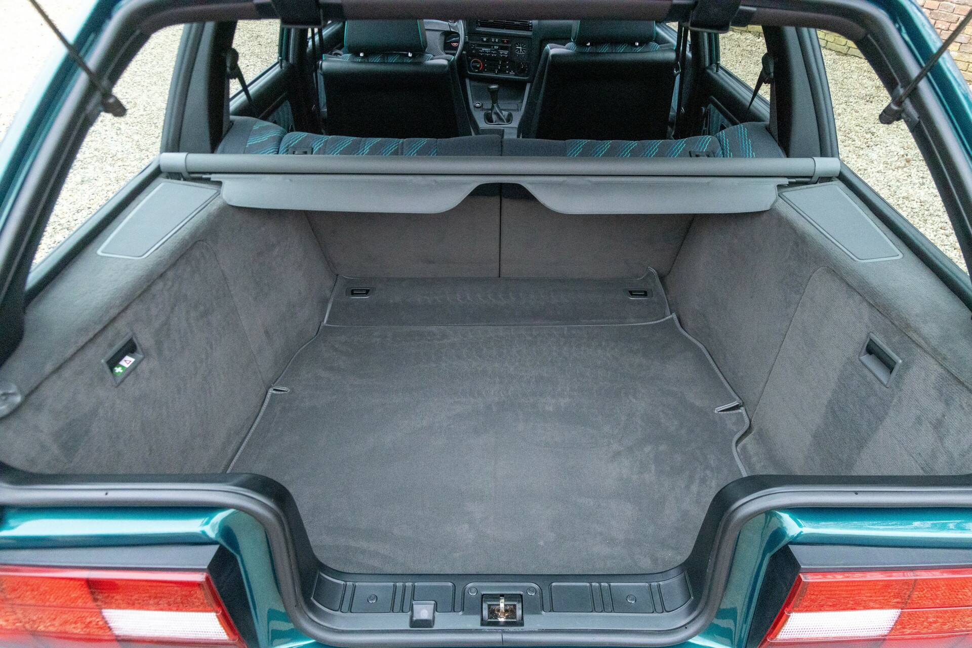 This particular Touring still wears its original paint, showing only the most minimal signs of use. The cloth sport seats are crisp and well preserved, the dashboard is excellent, and the original book pack—including the stamped service booklet—is fully present. And then there are the wheels: factory BMW items with an instantly recognizable, iconic design.