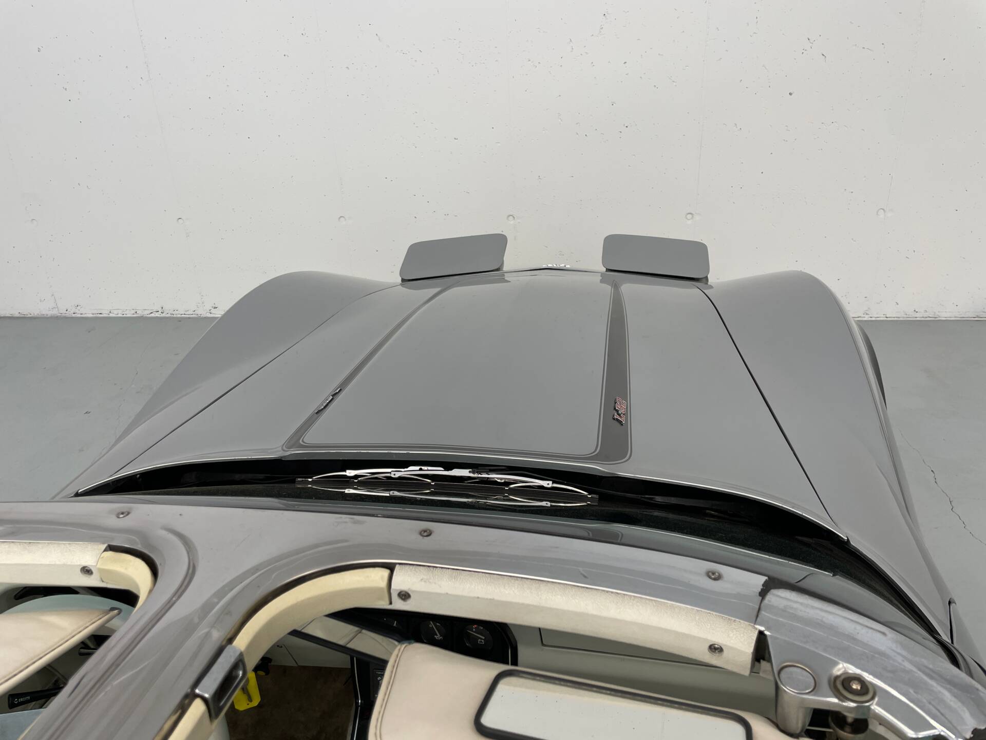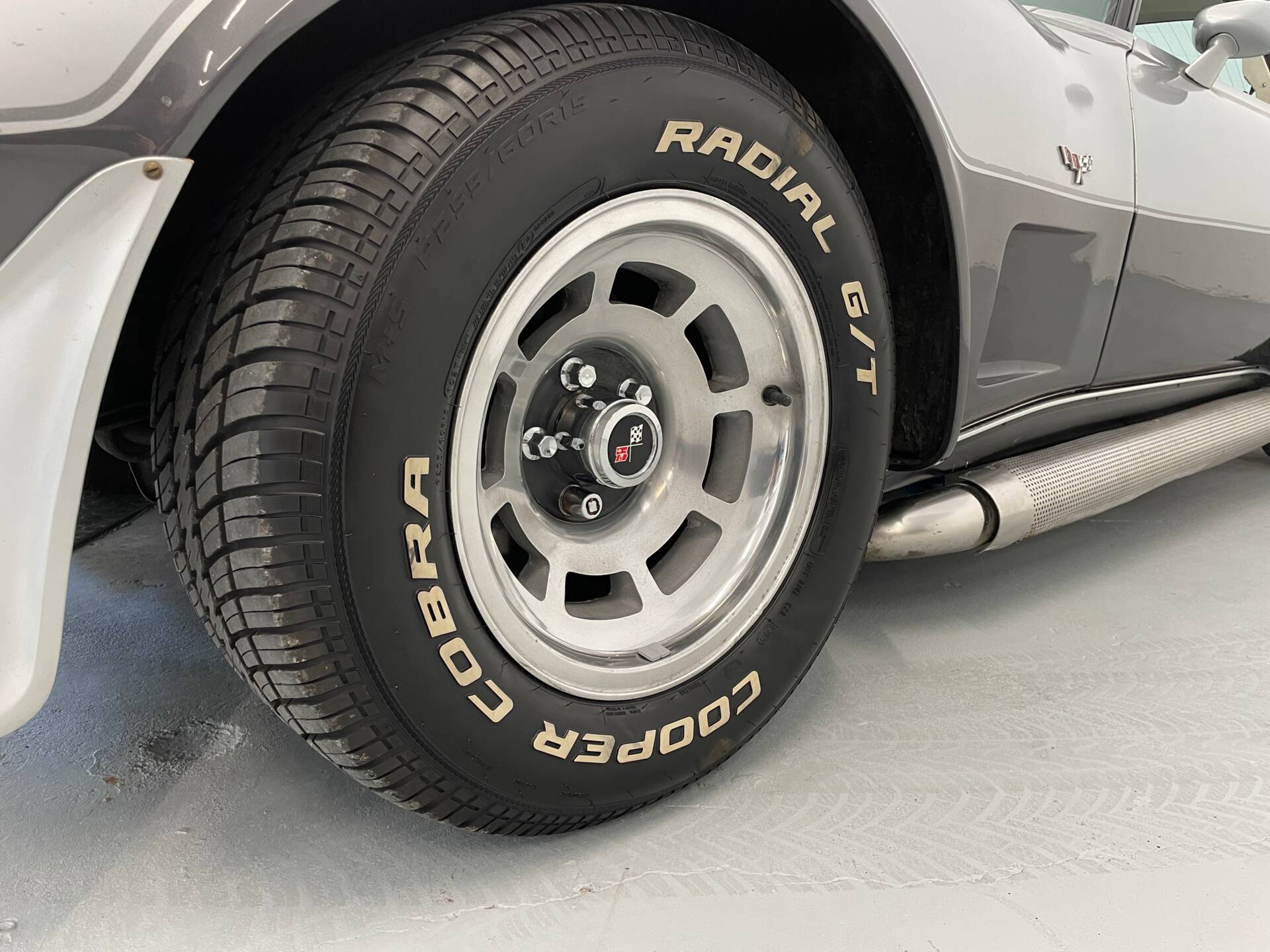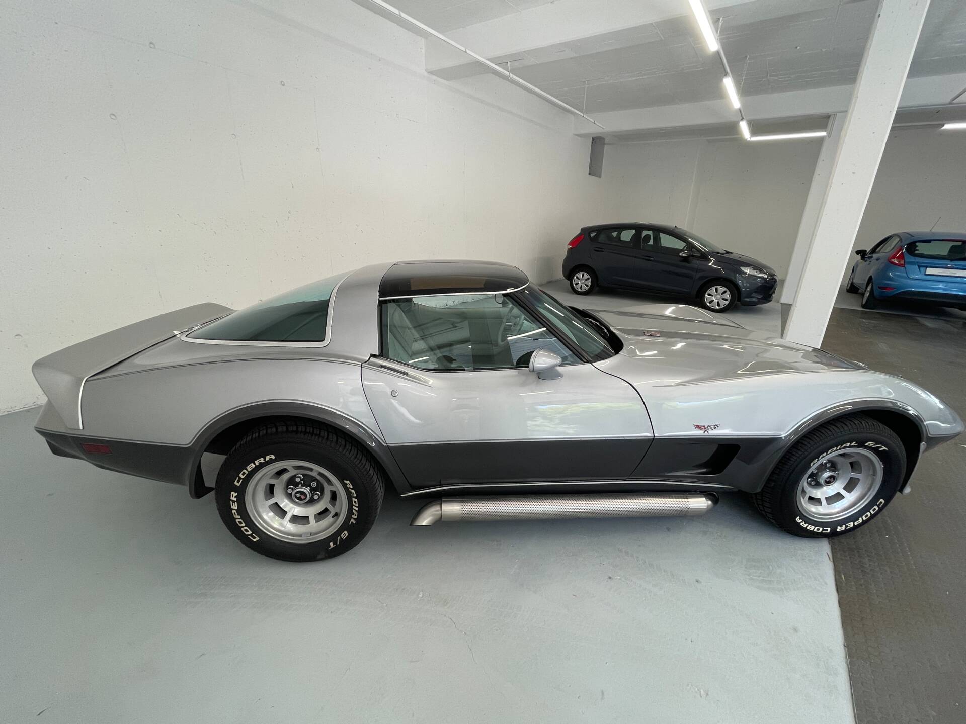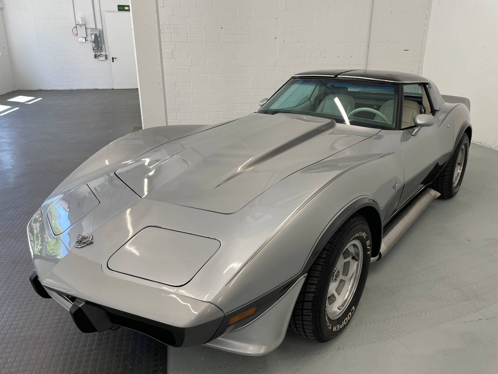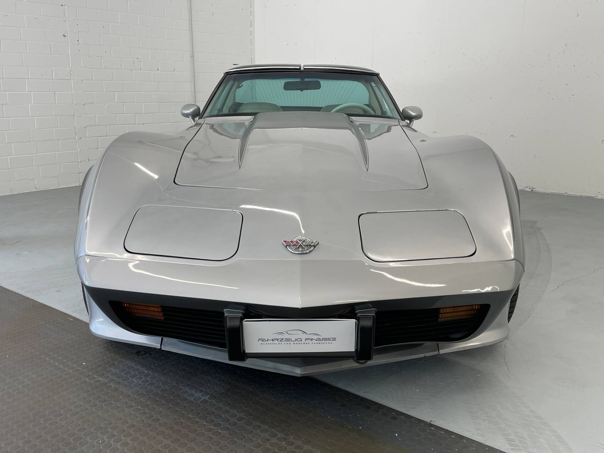 Lediglich das Dunkel Charol Silver, das den unteren Teil der Corvette schmückt, wurde im Zuge der H-Abnahme des Fahrzeuges neu lackiert. Ansonsten besitzt das Fahrzeug seinen erst Lack.