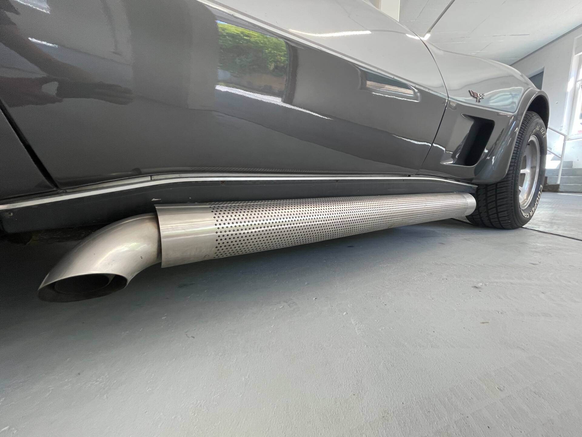 Ein weiteres Alleinstellungsmerkmal dieser Silver Anniversary sind die durch den ersten Besitzer, welcher vom Beruf Schlosser war, eigens angefertigten Side-Pipes welche natürlich eingetragen sind und der C3 einen Kernigen, US V8-typischen Sound verleihen.