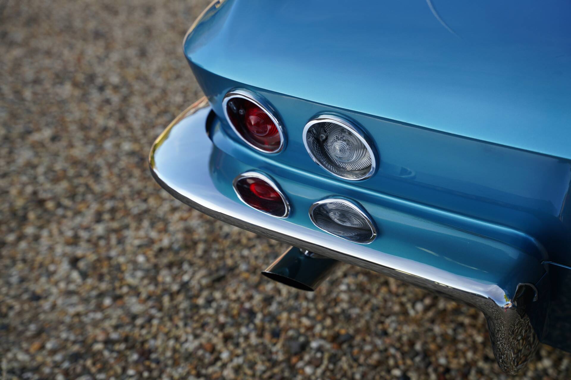 The Corvette C2 is named after the sleek and elegant sea creature the Sting Ray. It was developed in a wind tunnel, immediately supplied with a V8 and with a fibreglass body relatively light. The C2 Sting Ray is seen by many as the most attractive Corvette. In 1964 the rear window ‘spine’ disappears, so loosing its ‘Split Window’ nickname.