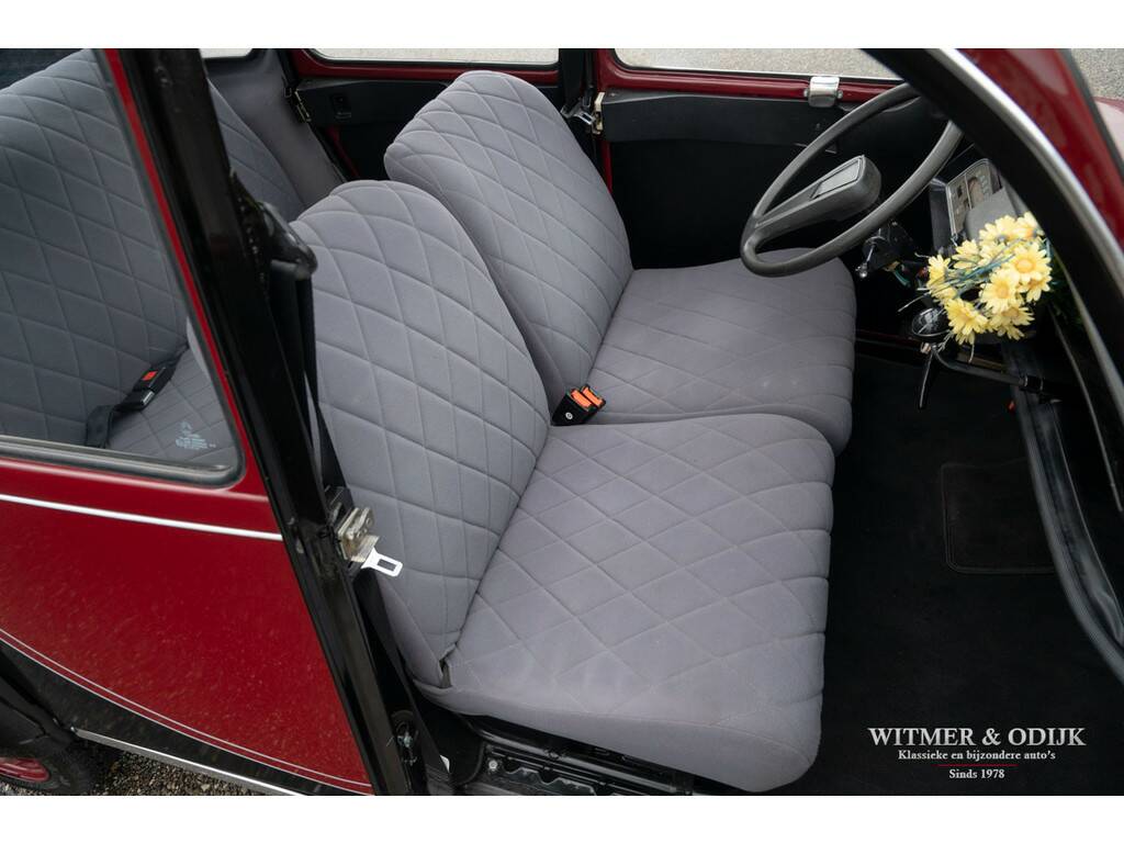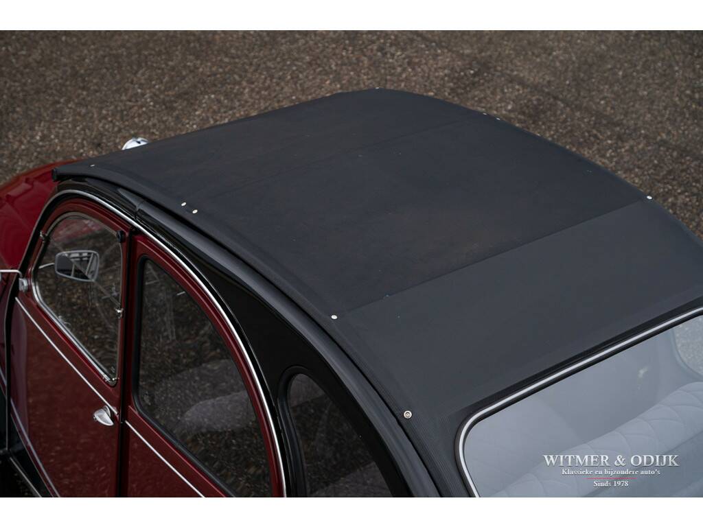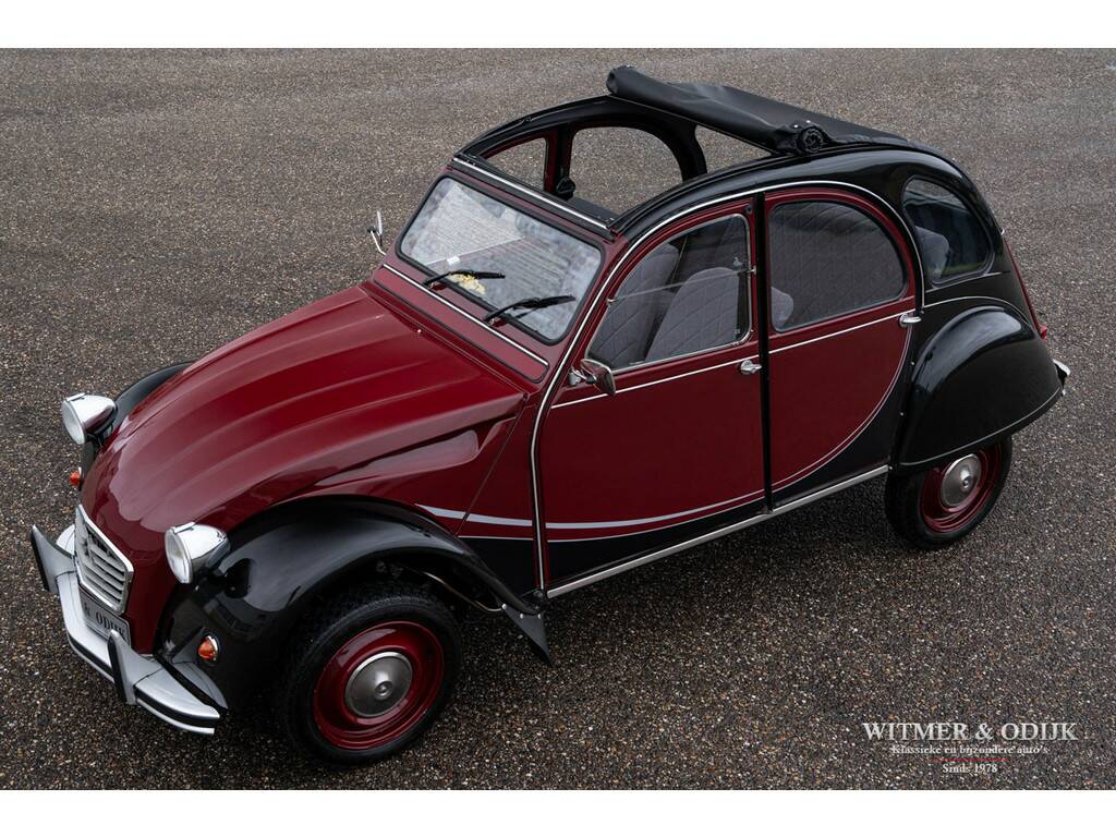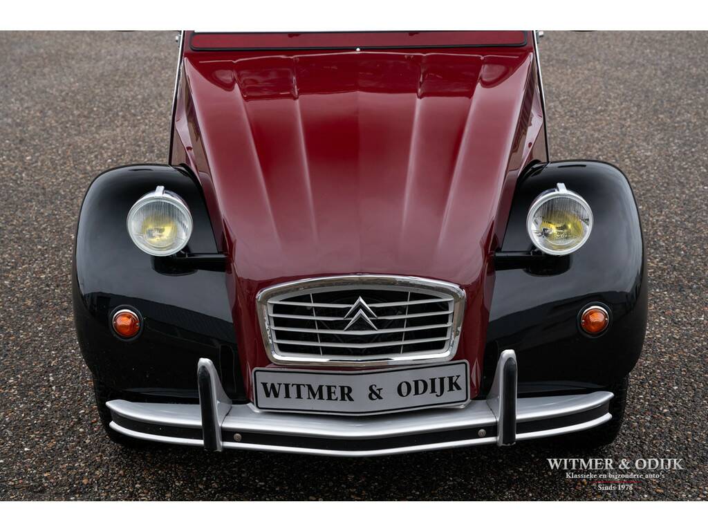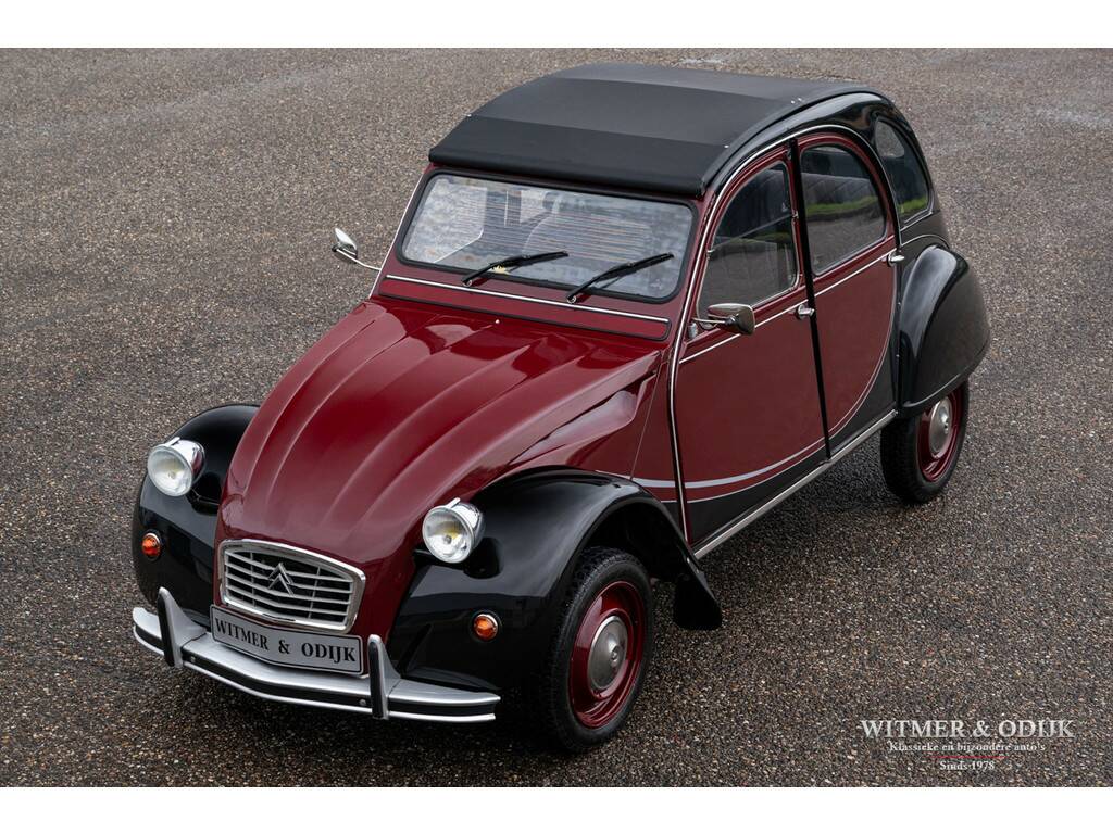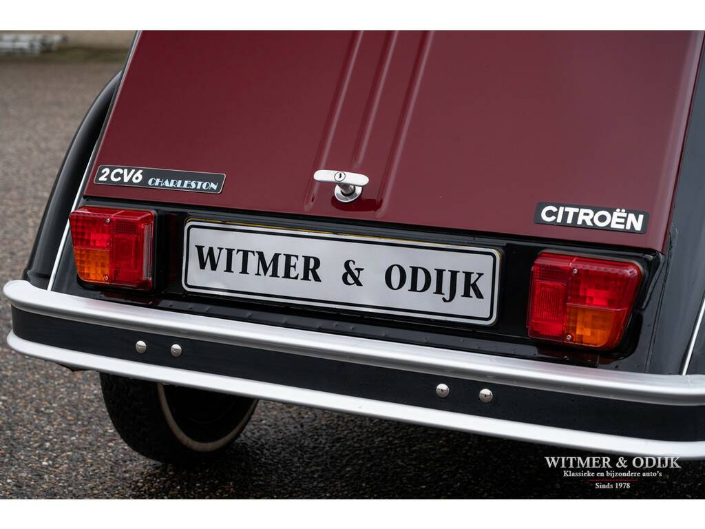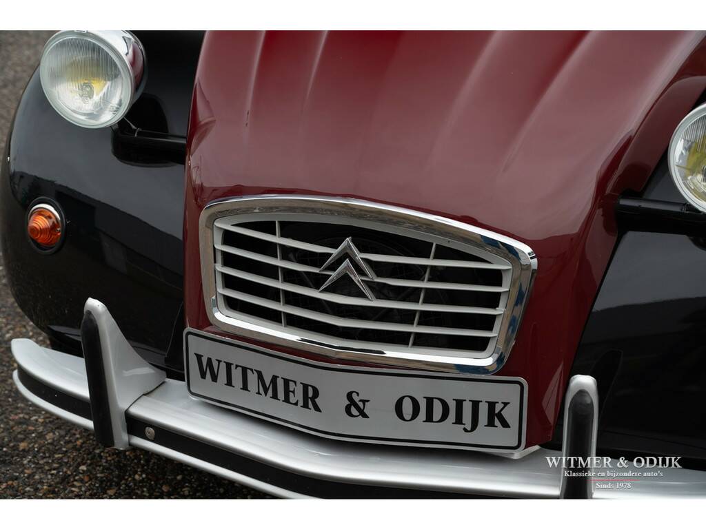 Rouge Delage en Noir de Nuit, dat zijn de fraaie benamingen van de twee contrasterende kleuren waarin deze 2CV Charleston uitgevoerd is. De sierlijke duo-tone kleurstelling benadrukt de nostalgische gevoelens die de 2CV toch al oproept nog nadrukkelijker. In Nederland heeft de iconische 2CV de bijnaam 'lelijk eendje', de almaar toenemende populariteit van de Eend bewijst dat schoonheid komt met de jaren. Een fatsoenlijk roestvrij exemplaar is onder de €10.000,- al nergens in Europa meer te vinden, laat staan een echt mooi exemplaar wat niet misbruikt is door een paar studenten of op het Franse platteland kippen vervoerde. Zie onderstaande van Wikipedia gekopieerde tekst. Een Ferrari in de conditie waarin dit bijzonder exemplaar verkeerd vinden is eenvoudiger dan een 2CV. Immers bedoeld om vooral praktisch te zijn en goedkoop in aanschaf werd een 2CV meestal afgereden, het percentage echt goed exemplaren wat rest ligt ondanks de enorme productieaantallen (bijna 4 miljoen) waarschijnlijk lager dan bij menig Ferrari. Of juist dankzij dit hoge aantal natuurlijk. Het hier aangeboden exemplaar is een wel zeer bijzondere, origineel Nederlands geleverd. In de regel mag u dan een roestig door onze hoge luchtvochtigheid aangetast exemplaar verwachten, deze vakkundig gerestaureerde Charleston gooit het over een andere boeg. De toch al in zeer goede staat gebleven auto werd een aantal jaren terug vakkundig gerestaureerd. Dat is uitzonderlijk gezien de marktwaarde van deze auto's, de liefhebber die deze restauratie liet uitvoeren deed dit ook zeker niet met financieel oogmerk. Sterker van zo'n groot project wordt men zelden beter, de volgende eigenaar echter wel. Dus voor wie een rijklare, roestvrije en betrouwbare 2CV Charleston wil een perfecte gelegenheid. De auto rijdt als een nieuwe, ruikt als een nieuwe en ziet er bijna zo uit ook. Ons vak verplicht de auto te koop te zetten, hoewel met lichte tegenzin. Er zijn al 'dwazen' die het dubbele vragen, het is u gegund, een prachtige 2CV voor een redelijke prijs. Wel zuinig op zijn hé!