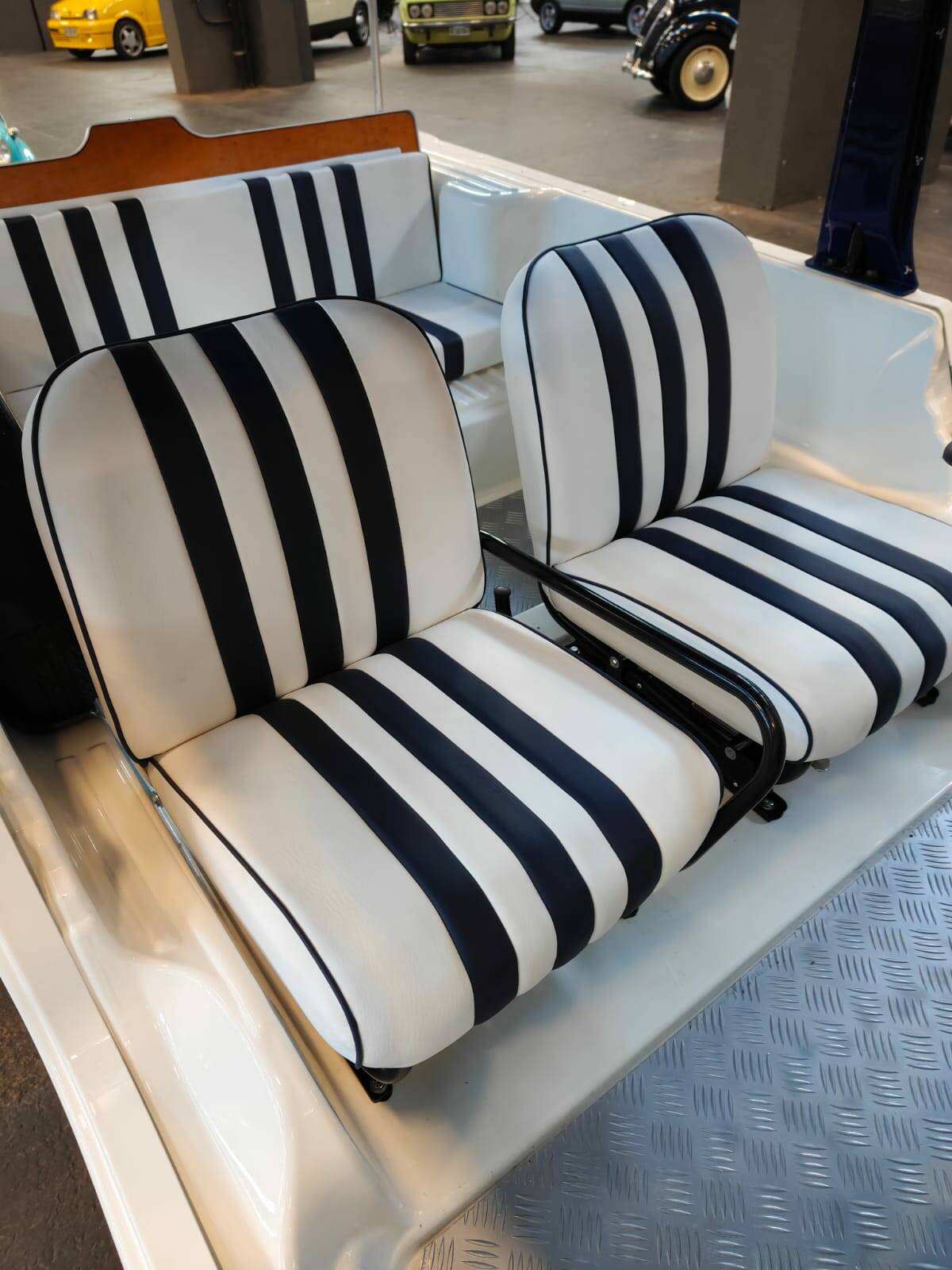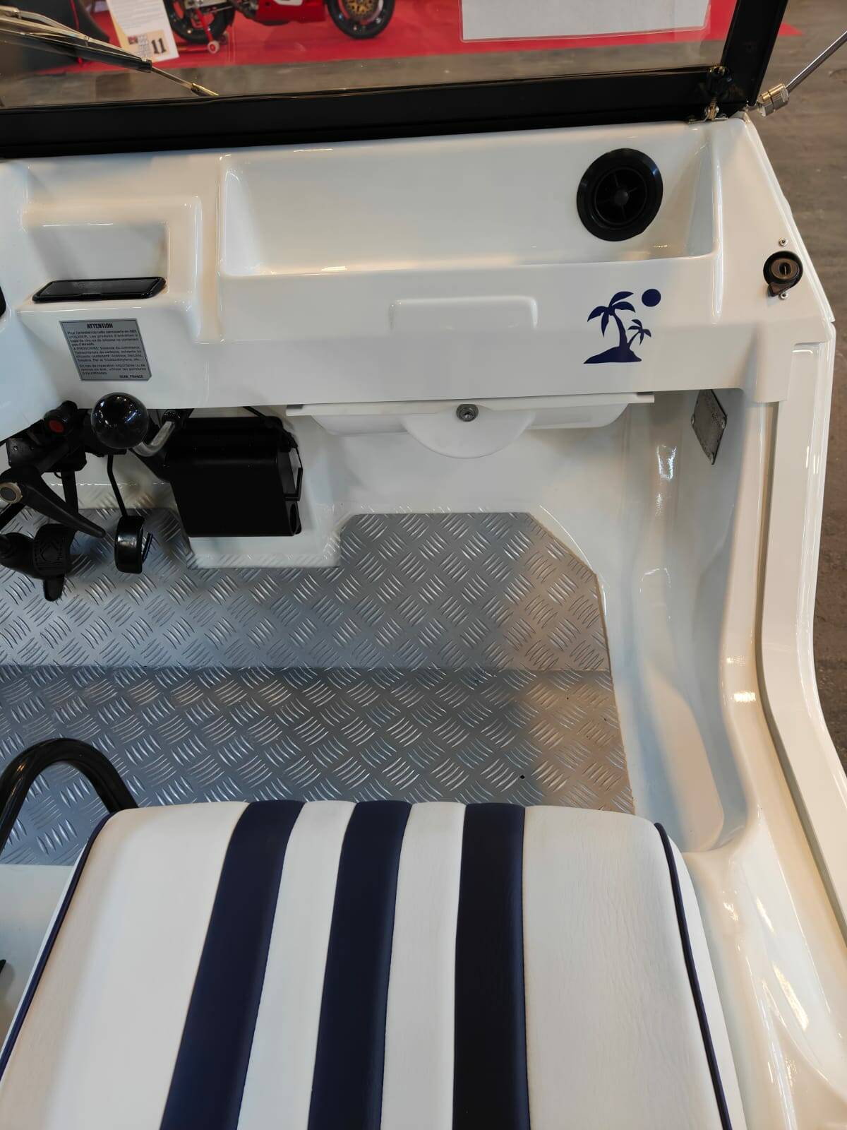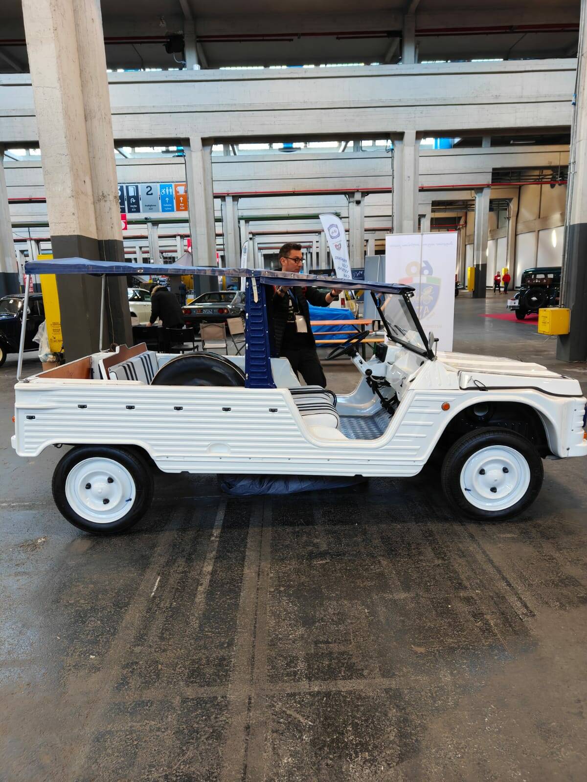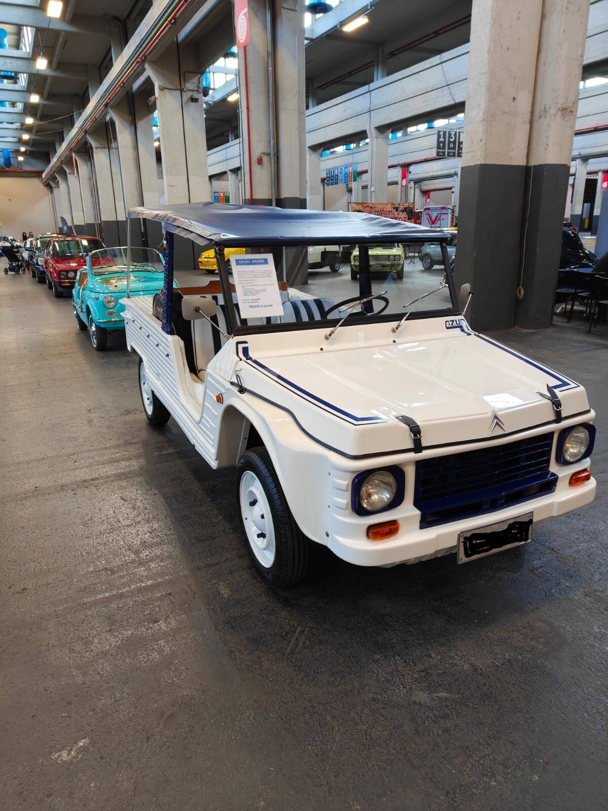 PLASTICA ABS, . VERSIONE che SI DIFFERENZIA DALLE ALTRE PER LA DOPPIA COLORAZIONE DELLA CARROZZERIA CON PORTIERE E MASCHERINA DELLO STESSO COLORE BLU E SEDILI BIANCHI A STRISCE, TUTTO NUOVO. Un'iconica "spiaggina" francese, celebre per la carrozzeria in plastica ABS leggera, CON spiccate doti da fuoristrada.