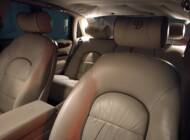 The interior is dominated by white leather (presumably "Ivory"), which—together with dark carpets and walnut wood—creates a particularly bright and high-quality atmosphere. According to the seller, the interior is very well maintained, with minimal signs of use—an indication of careful ownership and professional upkeep.