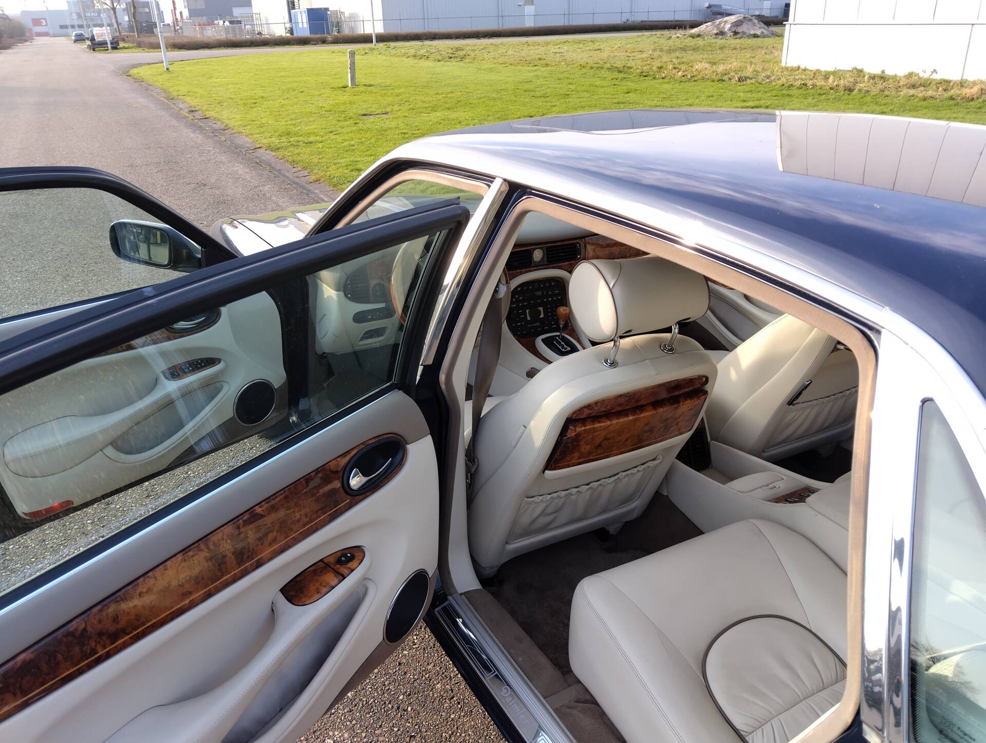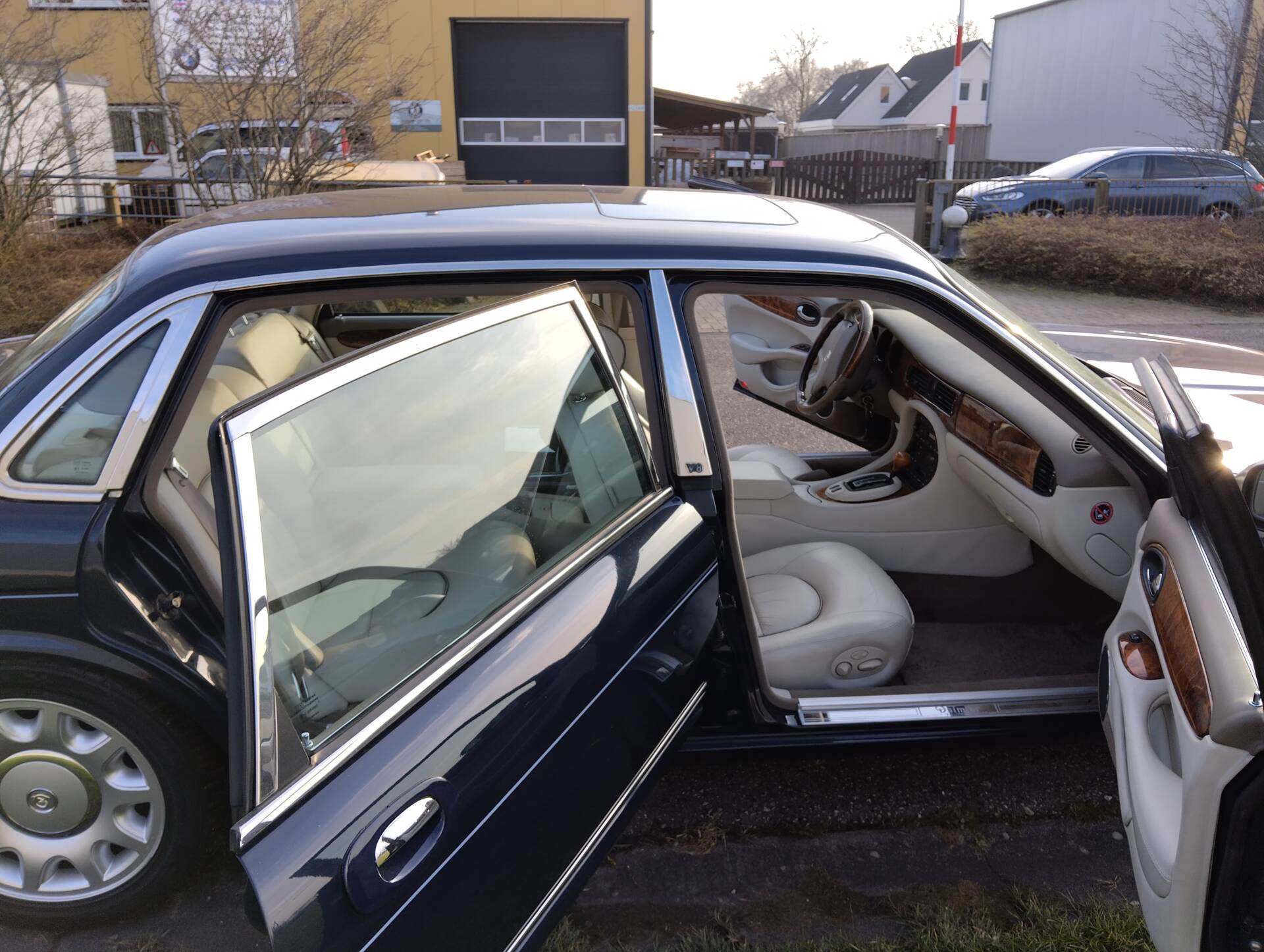 A British luxury classic from the turn of the millennium, this Daimler Super V8 presents itself in a particularly desirable specification: dark blue exterior meets fine white leather interior—a colour pairing often regarded by connoisseurs as one of the most stylish options for this type. Under the bonnet sits the legendary supercharged V8 with impressive power delivery, while the equipment list leaves little to be desired. According to the seller, the vehicle has been carefully and regularly maintained, allowing for immediate use without major technical effort. A new roadworthiness inspection (APK/MOT) can be arranged upon request.