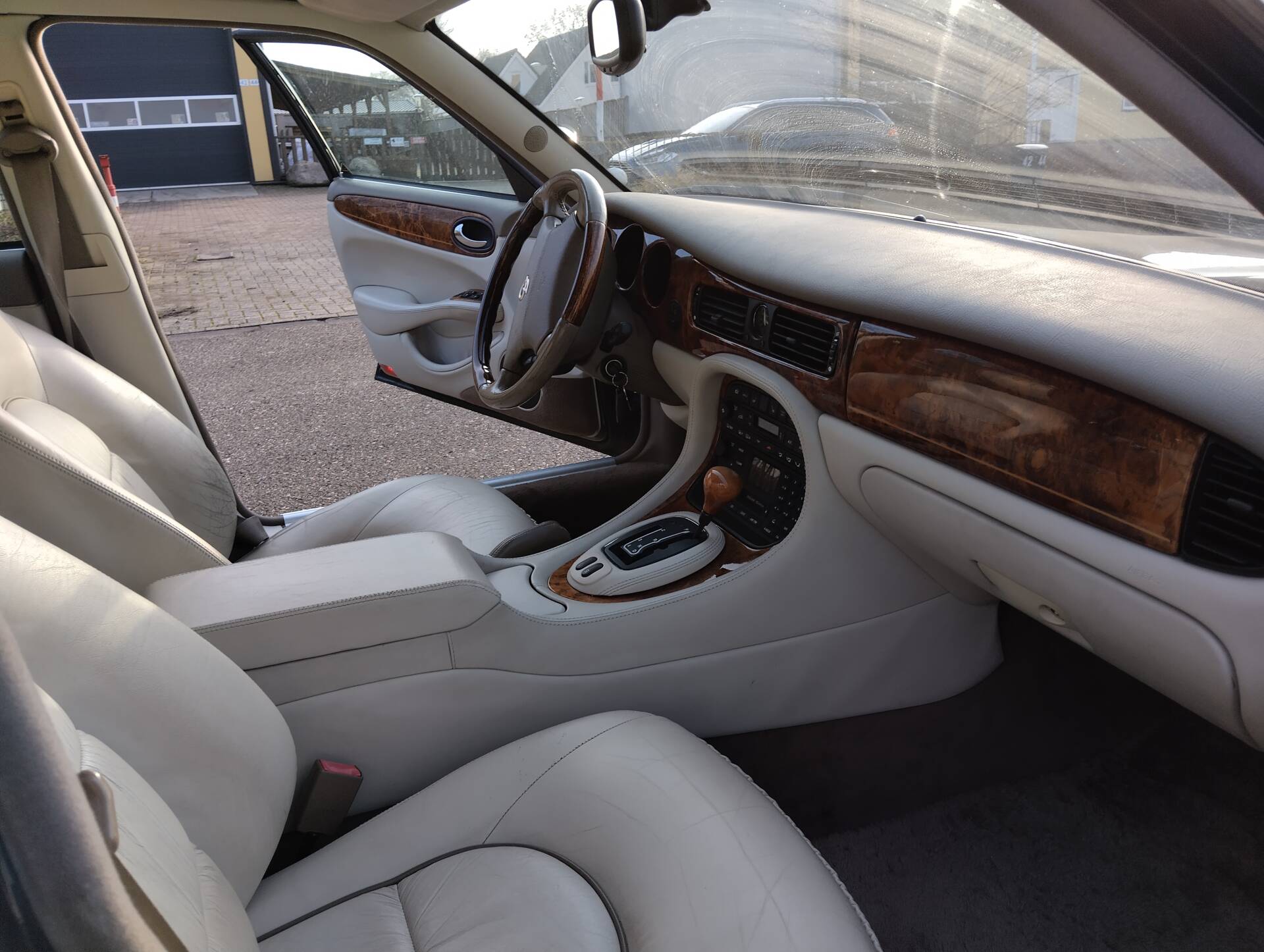 At its heart lies a 4.0-litre V8 with Eaton supercharger, officially rated at approximately 363 hp (manufacturer's data; period road tests may vary slightly). The automatic transmission shifts with silk-like smoothness, while adaptive suspension ensures a confident ride. From the factory, the Super V8 came with a long wheelbase, bespoke trim, and the coveted fluted grille elements—a subtle nod to Daimler’s long tradition. The interior features finest Connolly leather, burr walnut, and chrome accents—everything a lover of British classics could wish for.