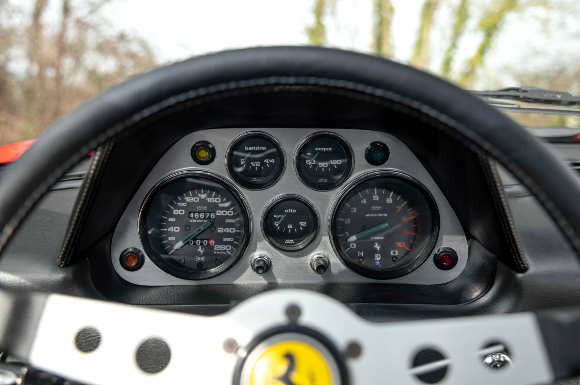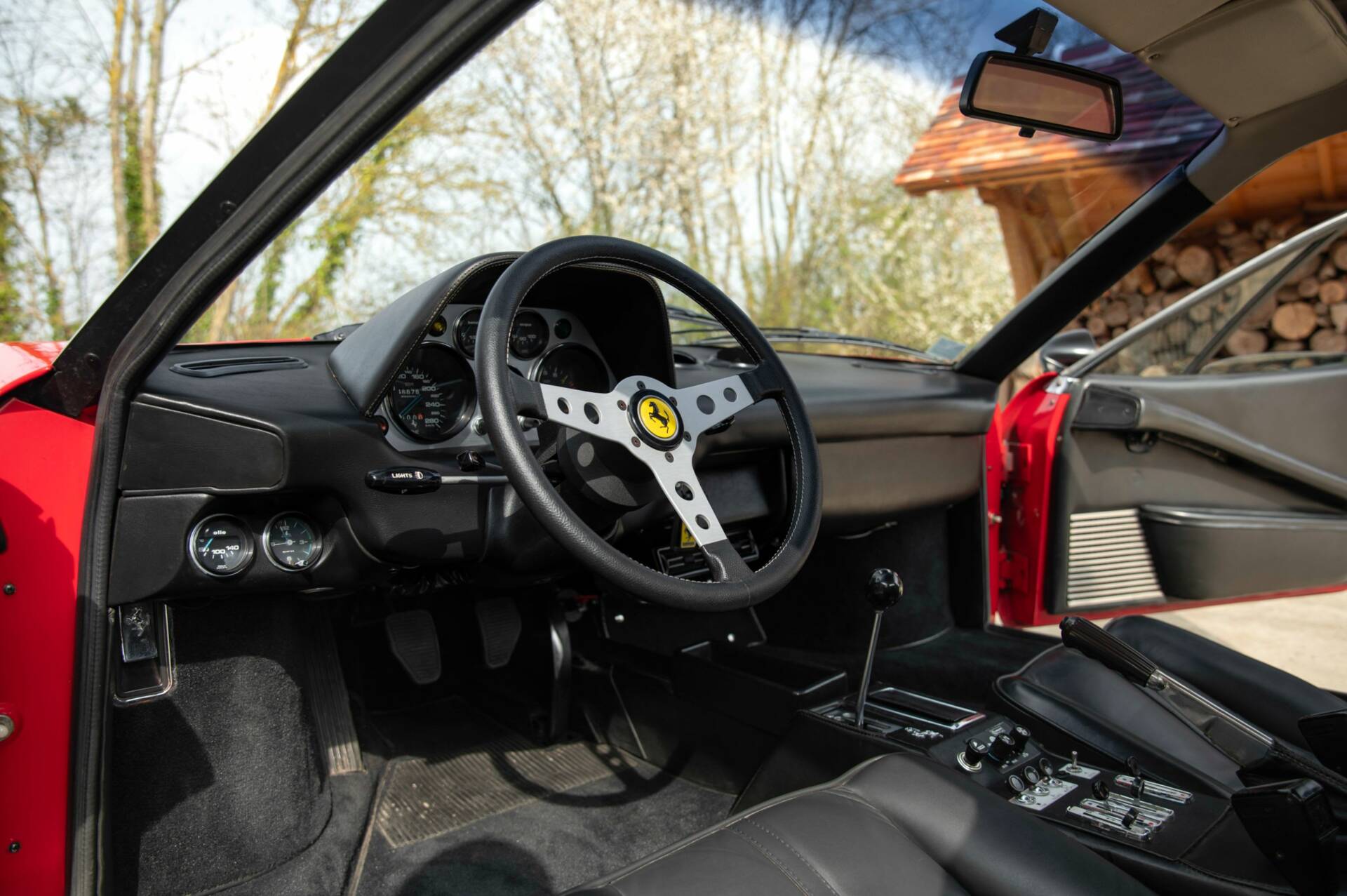 🔧 Le moteur V8, conforme à l’origine et certifié Ferrari Classiche, fonctionne de manière satisfaisante. Il est équipé de carburateurs Weber 40 DCNF et d’un allumage Magneti Marelli. La boîte de vitesses ainsi que le différentiel sont d’origine, tout comme les suspensions Koni. Le fonctionnement général de l’auto est bon.