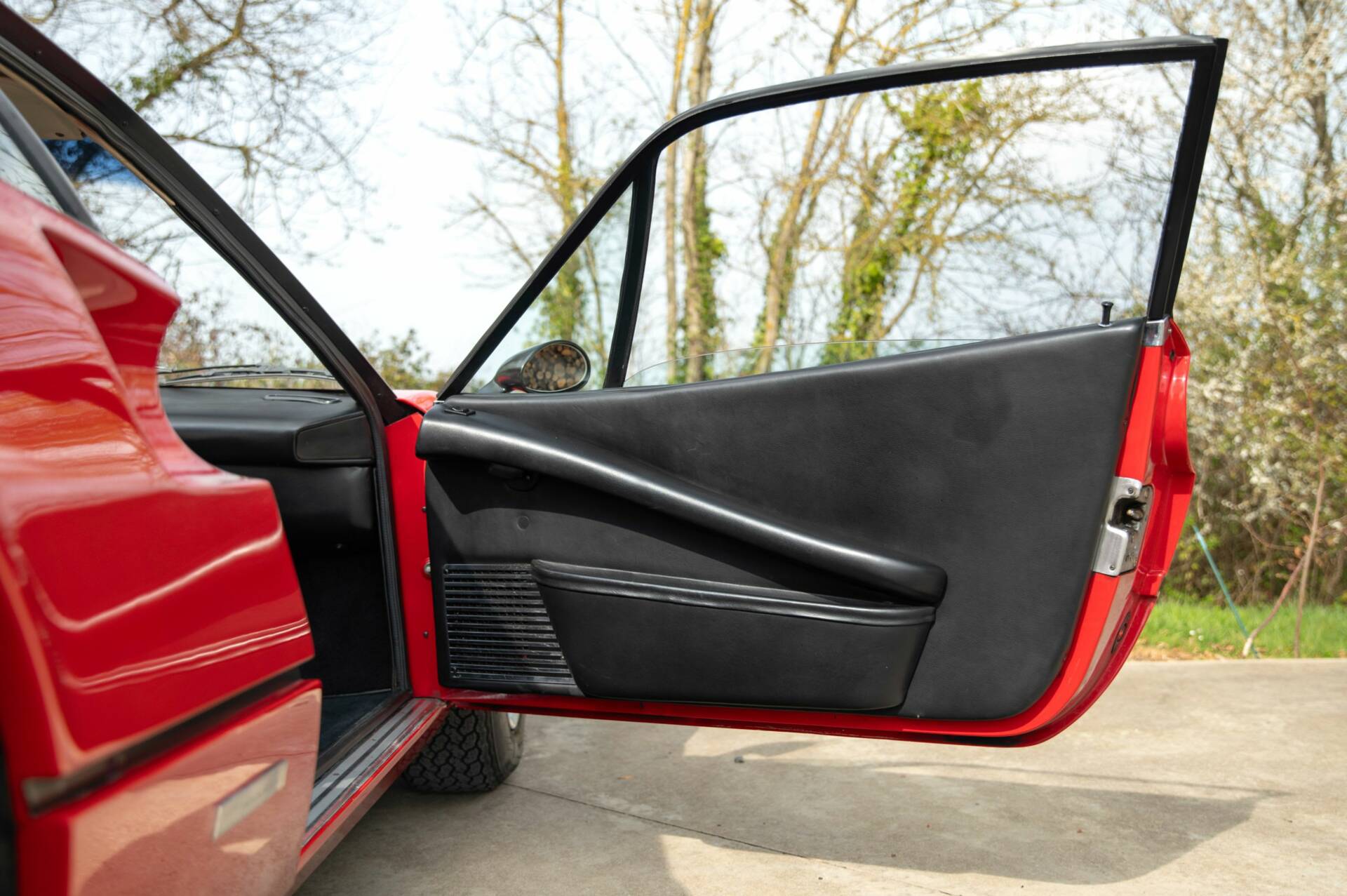 🚗 La voiture présente une peinture rouge en très bel état, offrant une belle brillance et une présentation particulièrement valorisante. Les alignements de carrosserie sont bons et l’ensemble est homogène. La carrosserie en fibre de verre, spécifique aux versions Vetroresina, est bien conservée.