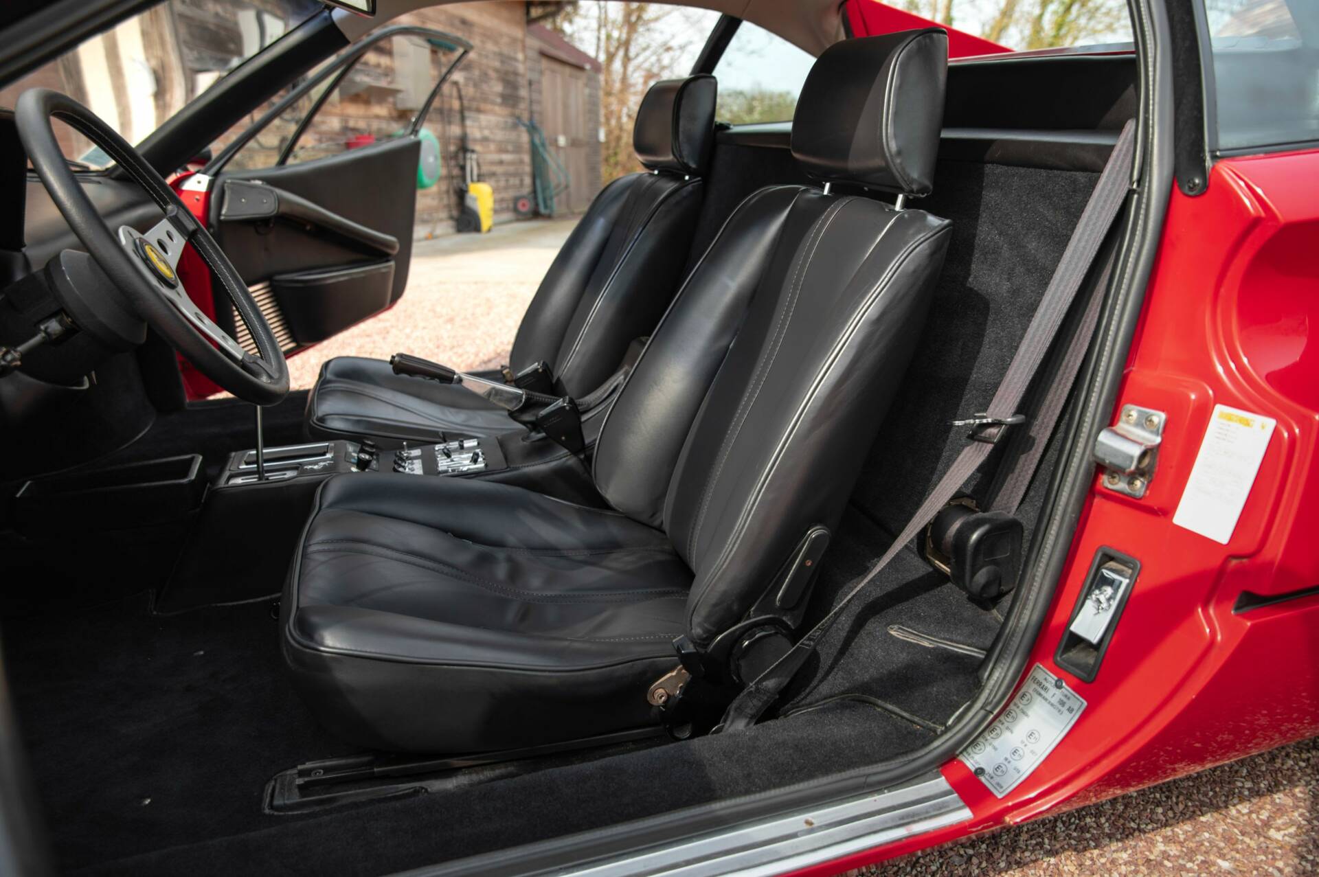 Cette Ferrari est matching numbers, avec son moteur V8 type F106 A02 correspondant au châssis, ainsi que sa boîte et son différentiel d’origine. Initialement luvrée dans une élégante teinte Blu Dino Metallizzato avec intérieur cuir beige, elle présente aujourd’hui une configuration rouge avec intérieur noir, en parfaite adéquation avec l’ADN Ferrari.