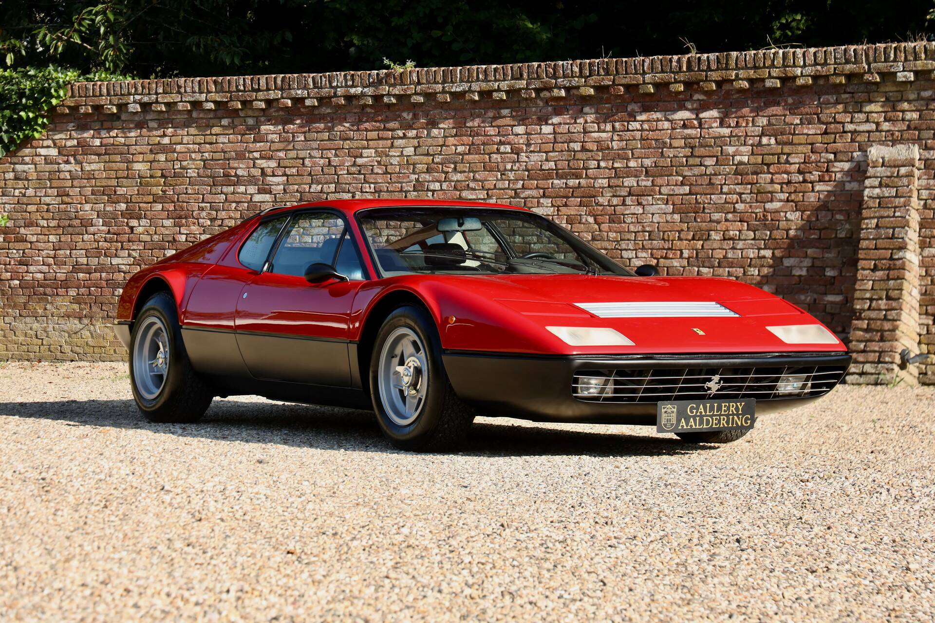 A wonderful Ferrari 365 GT4/BB aka the Berlinetta Boxer. This should not be confused with the later 512BB, which was modelled on the 365. The 365 BB was the first series produced Ferrari with a mid-engined 12 cylinder boxer engine. Over a three year course only 299 LHD Boxer Berlinetta Boxer's left the factory, making this BB the rarest of them all. Many details differ from the later 512 BB, like the six exhaust pipes, the characteristic 365 six rear taillights amongst various other body measurements and details. Production of this particular example was completed on the 5th March 1974. On the 27th May 1974 the Ferrari was delivered to the Italian Ferrari dealer Motor S.p.A. in Bologna. We still have a copy the original first registration document. Thanks to excellent care and maintenance this Ferrari has never been restored. The wonderful bodywork is nice and straight, well aligned with fine paintwork. The original underbody is completely rust-free. It has a ‘Rosso’ finish with a black leather interior trim. The interior trim is in a superbly original condition and excludes a lovely patina. It also has the popular ‘Daytona’ seats and Borletti aircon. Beautifull and fully original interior, first leather, original dashboard etc.! Original engine, perfectly working and driving. A legendary and now very rare first series Ferrari 365 GT4/BB Berlinetta Boxer. Gallery Aaldering is Europe’s leading Classic Cars specialist since 1975! Always 300-350 Classic and Sportscars in stock, please visit www.gallery-aaldering.com for the current stock list (all offered cars are available in our showroom) and further information. We are located near the German border, 95 km from Düsseldorf and 90 km from Amsterdam. So easy traveling by plane, train, taxi and car. Transport and worldwide shipping can be arranged. No duties/import costs within Europe. We buy, sell and provide consignment sales (selling on behalf of the owner). We can arrange/provide registration/papers for our German (H-Kennzeichen, TÜV, Fahrzeugbrief, Wertgutachten usw.) and Benelux customers. Gallery Aaldering, Arnhemsestraat 47, 6971 AP Brummen, The Netherlands. Tel: 0031-575-564055. Quality, experience and transparency is what sets us apart. We look forward to welcoming you in our showroom