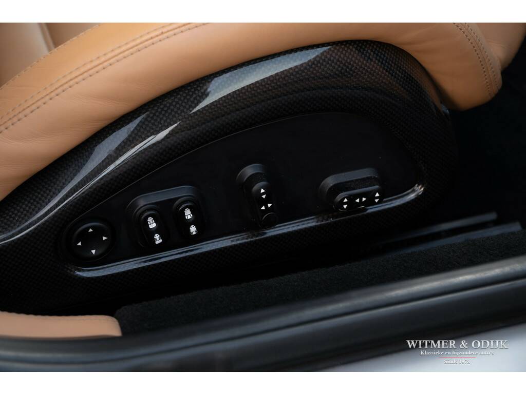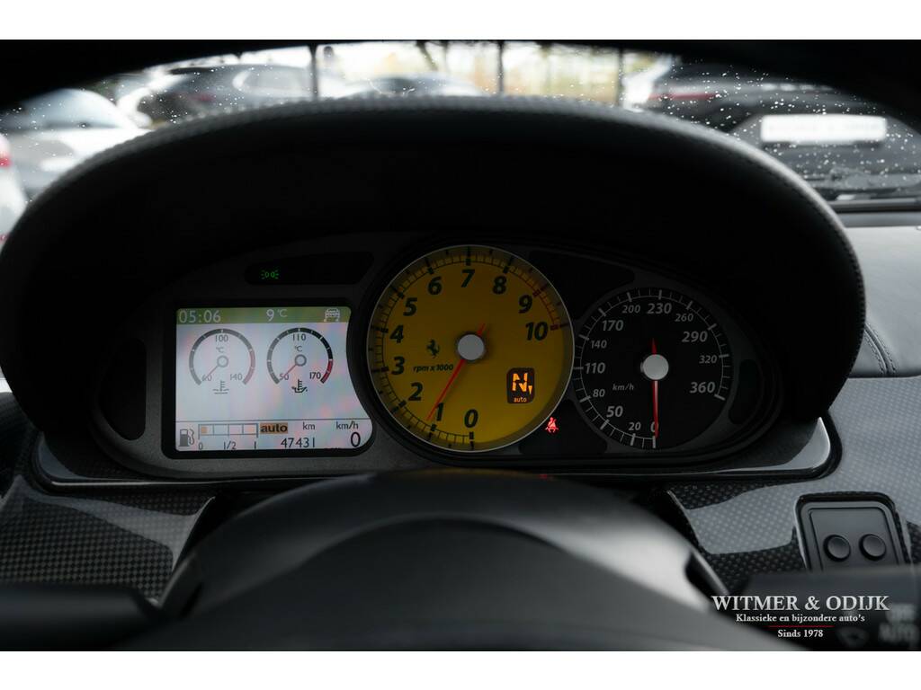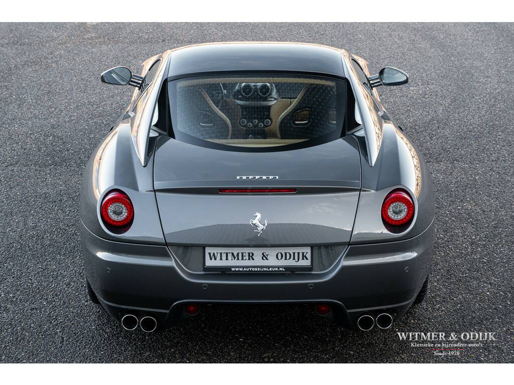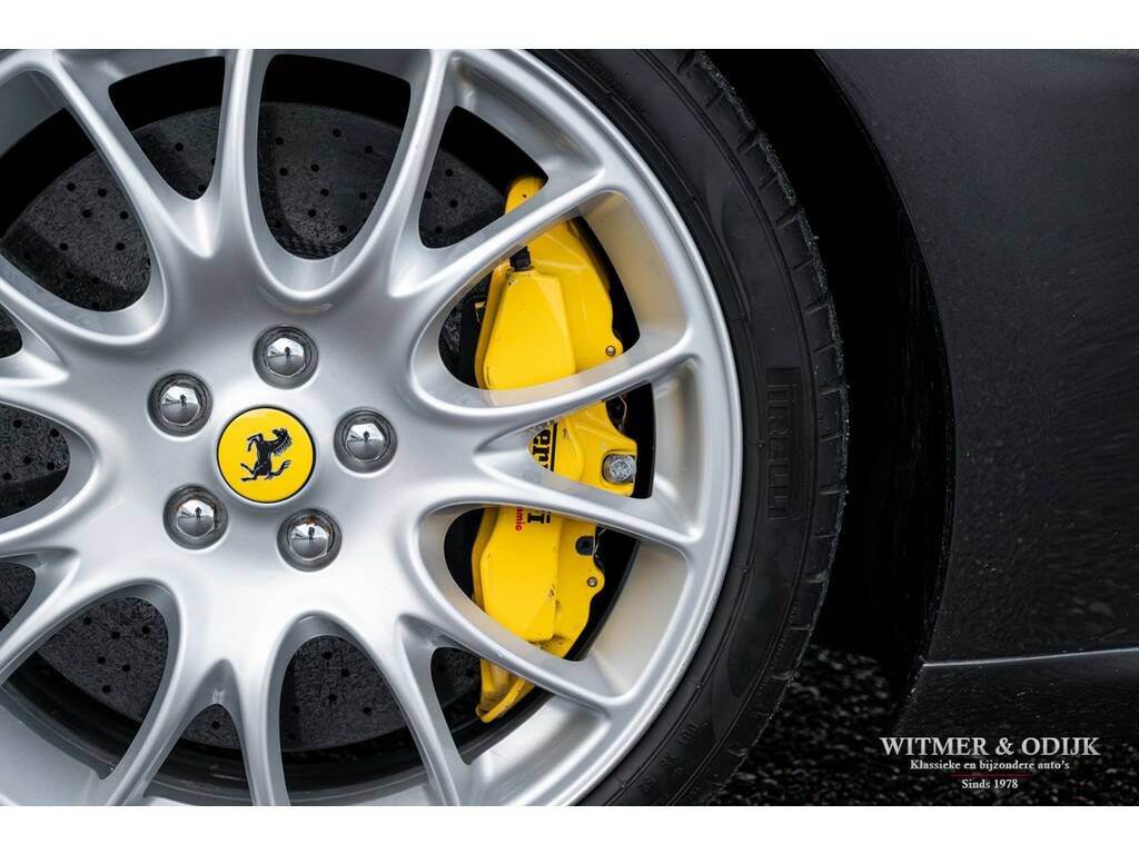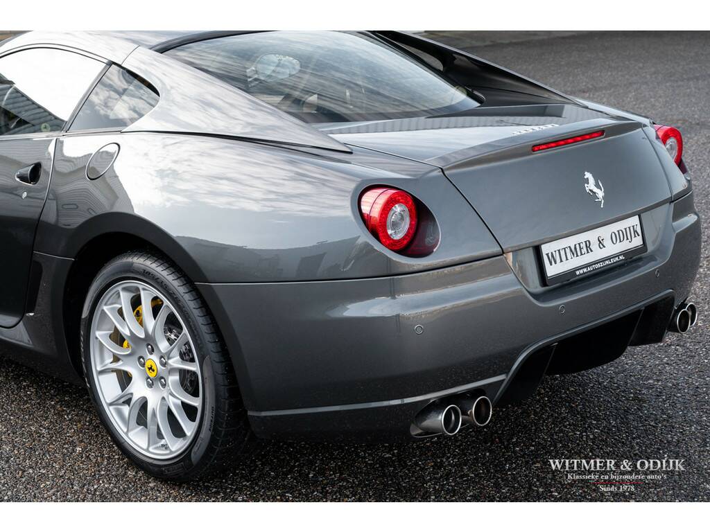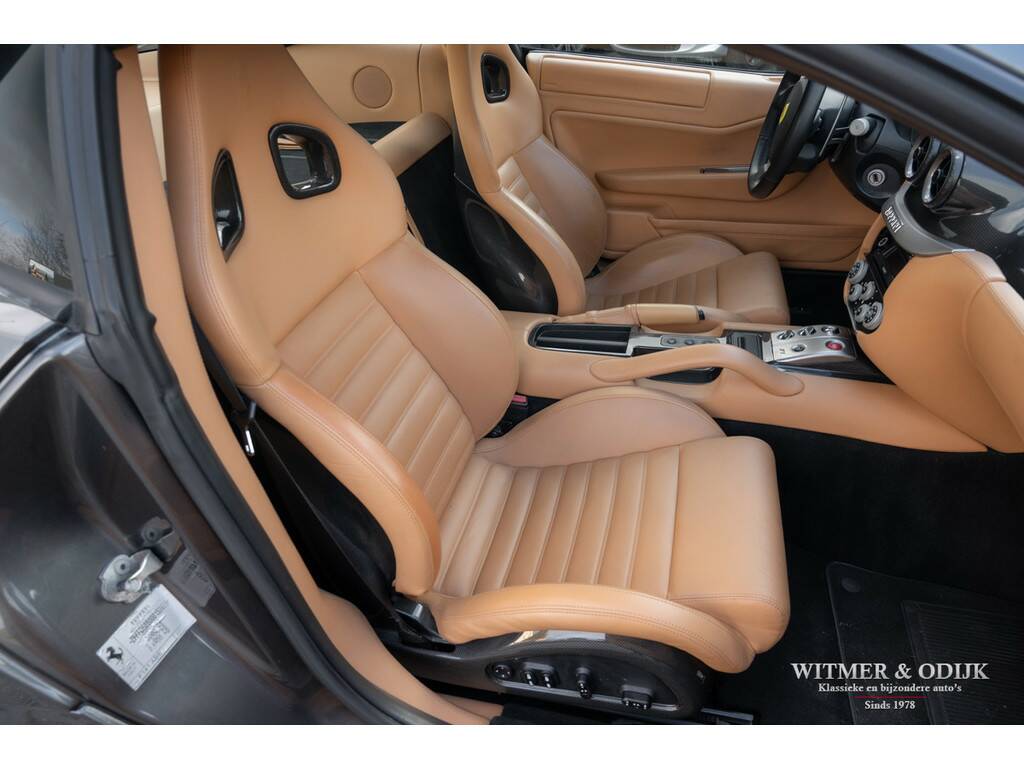 In zeldzame gevallen is nieuw niet altijd beter en zeker niet leuker dan 'oud'. De huidige, door emissie eisen ingegeven, trend in de autoindustrie van downgrading en turbo's op relatief kleine motoren is een autoplezier ondermijnend proces. Luister bijvoorbeeld eens goed, voor zover ze nog écht hoorbaar zijn op televisie, naar het motorgeluid in de Formule1. Een Mercedes S klasse met vier cylinders, ja die bestaan al een tijdje. Om maar niet te spreken van het emotieloze elektrisch rijden wat uiteindelijk emissiegewijs helemaal niet zo ijsbeervriendelijk blijkt te zijn. Maak dan een statement, nu het nog kan, met een échte auto zoals de grote sportauto-mijnheren die nastreefde. Die deden er bijna 100 jaar over om de prestaties neer te zetten die bijvoorbeeld deze auto biedt. Zelfs de meest succesvolle Formule1 coureur ooit, Michael Schumacher, werd nauw betrokken bij de ontwikkeling van deze sensationele auto. De 599GTB Fiorano zal de geschiedenisboeken in gaan als een van de laatste V12 sportauto's van een legendarisch sportautomerk waar notabene de krachtbon van vernoemd werd naar haar grondlegger, Enzo Ferrari. De 612pk sterke V12 werd met enkele kleine aanpassingen overgenomen uit de Ferrari Enzo, een supercar die nu minimaal een slordige drie miljoen euro moet kosten. Deze V12 met 608Nm koppel! werd gekoppeld aan de nieuwe F1 Superfast versnellingsbak en het nieuwste uit de Formule1 afkomstige Traction Control systeem F1-Trac. Een veilige acceleratie van 0-100km/u in 3,7 sec werd hiermee mogelijk en de topsnelheid van meer dan 330km/u wordt gemakkelijk gehaald. En die beleving! Het enorme voelbare koppel, het Formule1 uitlaatgeluid, de rode led's bovenin het stuurwiel die het ultieme schakelmoment aangeven, het remvermogen, de geweldig zittende racekuipen die sportief, commutatief en comfortabel tegelijk zijn en de carbon afwerking, het biedt allemaal de sfeer en prestaties van de ultieme GT waarvan Enzo in zijn tijd alleen nog maar van kon dromen. Voorzien van automatische climat control, Recaro carbon sportstoelen met volledig elektrische verstelling, groot carbon pakket (stoelen, stuur en dashboard), Parc Distance Control voor en achter, bandenspanningssensoren, Ferrari/Becker radio/cd met navigatie, F1 schakeling met Launch Control, 19 en 20inch lichtmetalen velgen, keramische remmen, carbon stuur met led aanduiding voor optimale schakelmomenten, etc. Foutloze en schadevrije carrosserie. Geen kras of beschadiging op te vinden. Werkelijk in een prachtige conditie. De zwart metallic lak heeft een mooi diepe glans en is grotendeels in de eerste lak. De bumpers hebben geen parkeervegen. Werkelijk een zeer indrukwekkende verschijning. Het interieur is eveneens in prachtige originele en onbeschadigde conditie, geen zichtbare gebruikssporen. De met leer beklede Recaro carbon sportstoelen zijn niet alleen comfortabel maar bieden ook optimale feedback van wat de auto doet. De stoelen hebben geen instapsporen of vervormingen. Veel delen zijn uitgevoerd in lichtgewicht carbon. Nooit in gerookt, alles fris en origineel. Schakelaars, flippers en hendels allen schoon en onbeschadigd. De met leer beklede deurpanelen, hemel en dashboard zijn onbeschadigd. Ruikt nieuw. De ook voor het oog spectaculaire Enzo motor treft u in het vooronder van deze 599GTB. De typeaanduiding komt voort uit de motorinhoud van 5999cc. Alles brandschoon en origineel. De rode krimplak op de cylinderkoppen is er niet afgebrand. De kofferruimte is schoon en onbeschadigd. Naar het zich laat aanzien nimmer gebruikt. Boordgereedschap keurig aanwezig. De fraaie velgen zijn als nieuw en vrij van remstof of beschadigingen. Zeer goede Pirelli P-Zero's hier omheen. Bij de auto aanwezig zijn de originele service- en instructieboekjes. De onderhoudsbeurten zijn netjes afgestempeld. Wij hebben de koppeling inmiddels uitgelezen, deze heeft nog 70% t.o.v. nieuw. Bij aflevering krijgt deze 599 een onderhoudsbeurt mee, een nieuwe APK en garantie. Boordmap, sleutelset, gereedschap, etc. alles keurig compleet.