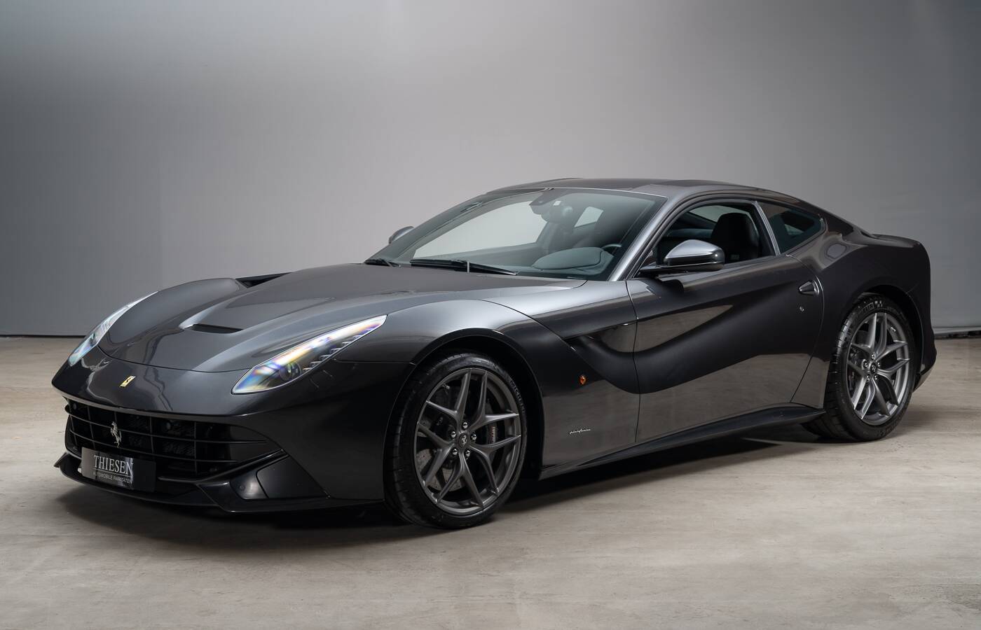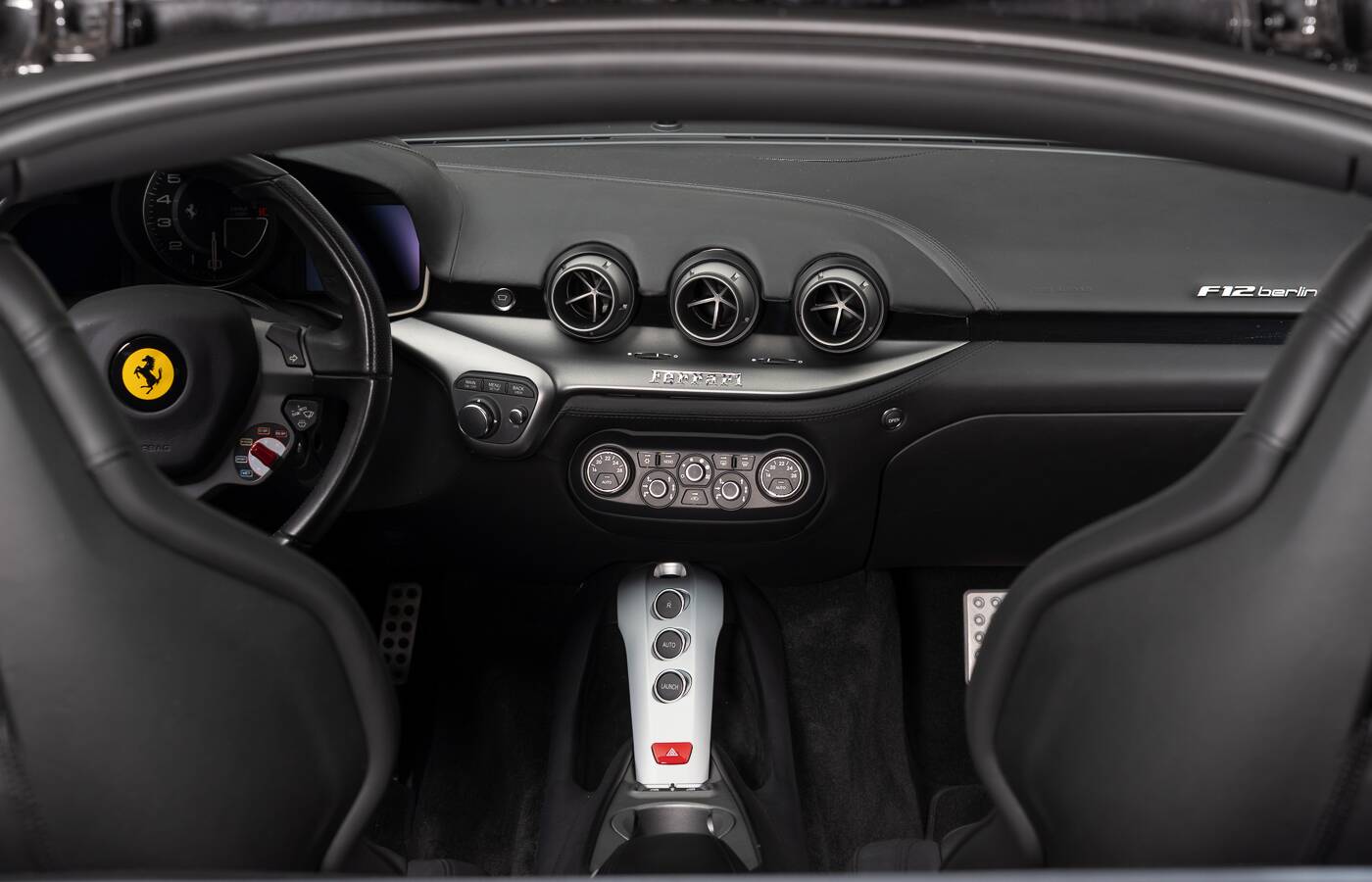 The Ferrari F12 Berlinetta marks a milestone in the history of front-engined V12 models from Maranello. Equipped with a powerful 6.3-litre naturally aspirated V12 engine, it combines outstanding performance with exceptional engineering. Designed by Pininfarina, its shape blends aerodynamic efficiency with timeless elegance. The F12 stands for uncompromising performance, precise handling, and remarkable driving comfort – a true Gran Turismo excelling both on long journeys and during spirited driving.