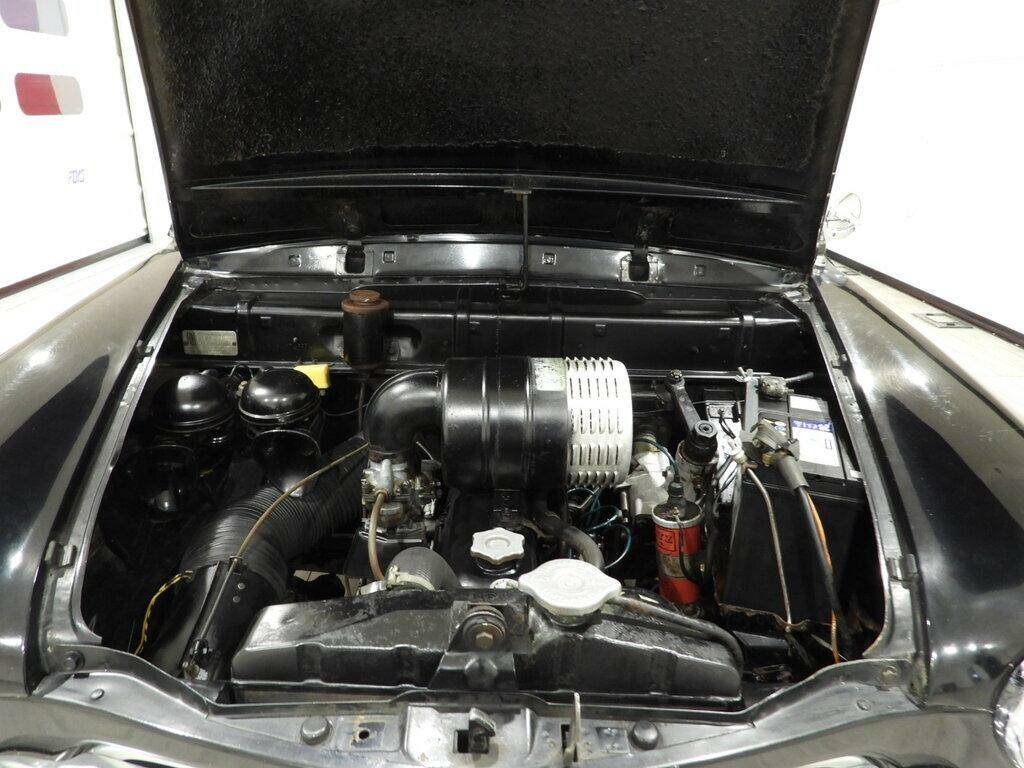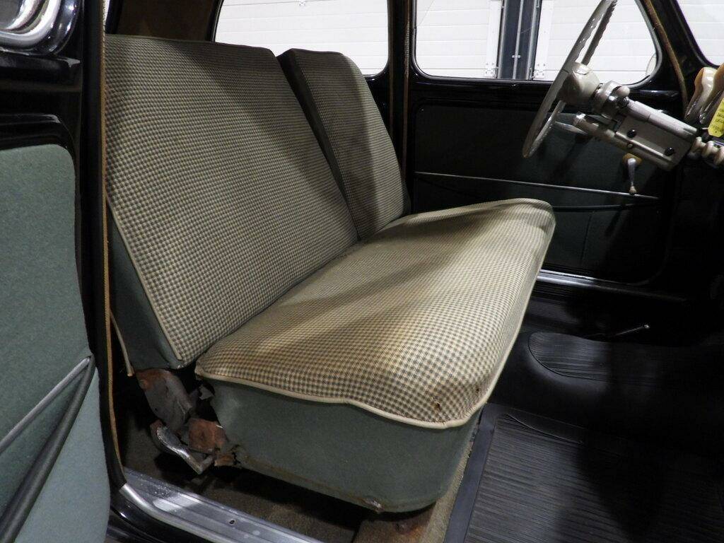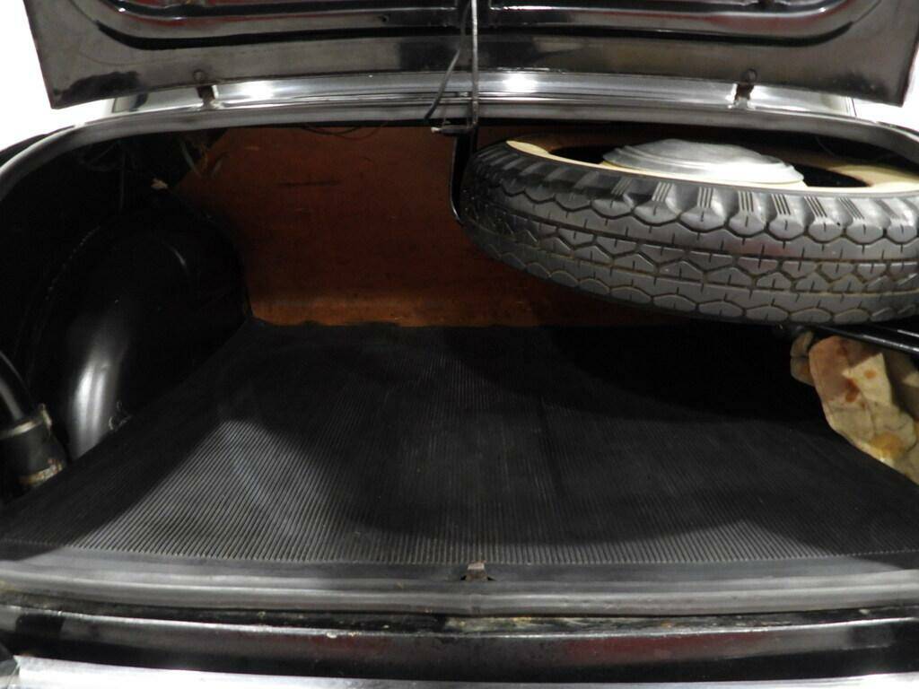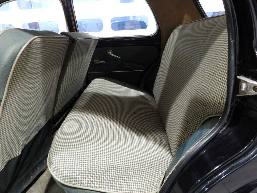 Seats in checked fabric and green vinyl, green cloth panels, steering wheel gear shift, period Telefunken radio, steel rims with chrome caps and 5.20-14 whitewall tires, chrome-plated driver's side mirror.