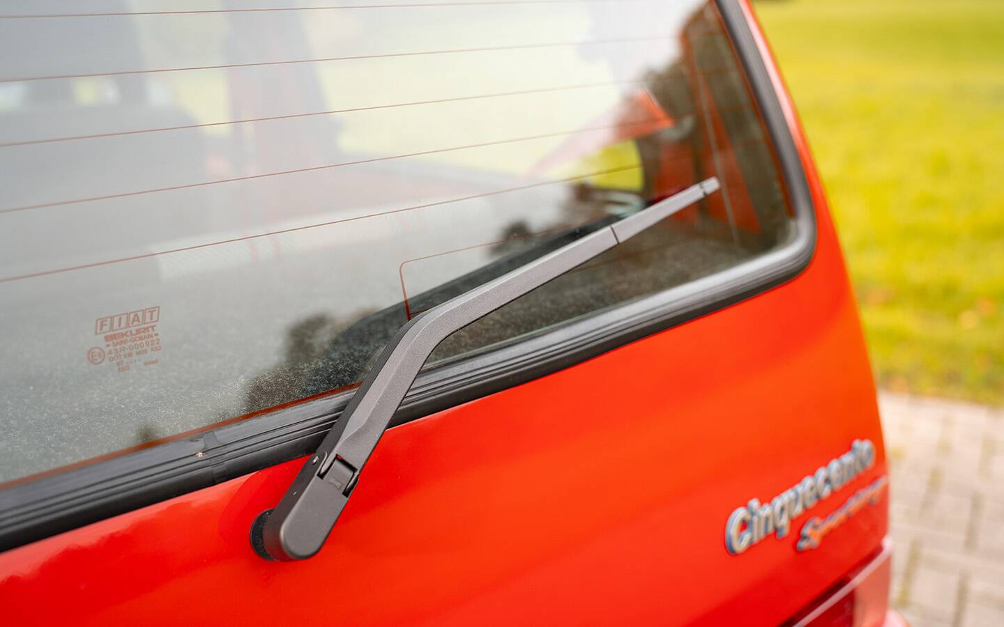 Der Cinquecento wurde einmal komplett in seiner Originalfarbe neu lackiert, mit einer Lackqualität, die selbst hohen Ansprüchen gerecht wird. Gepflegte Exemplare dieses Modells sind heute sehr selten geworden – umso bemerkenswerter ist der Erhaltungszustand dieses Fahrzeugs. Ausgestattet ist der kleine Sportler mit Airbag und Radio, zudem gehört ein kompletter Satz unbenutzter Dachträger von Perfect Fit Automotive zum Fahrzeug. Technisch wurde der Cinquecento regelmäßig gewartet; zuletzt wurden lediglich Kardanbälge, Glühlampen und die Antenne erneuert.
