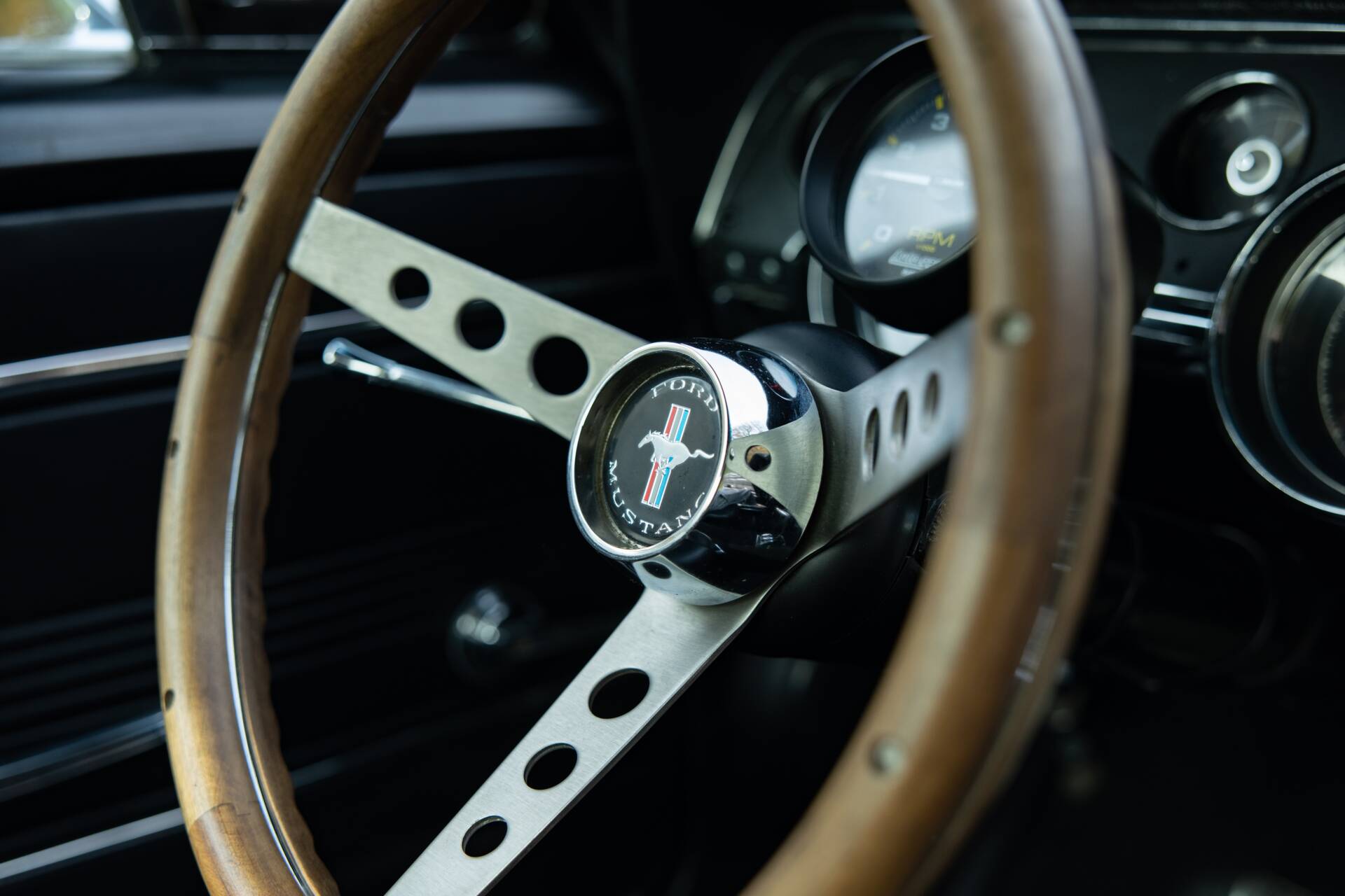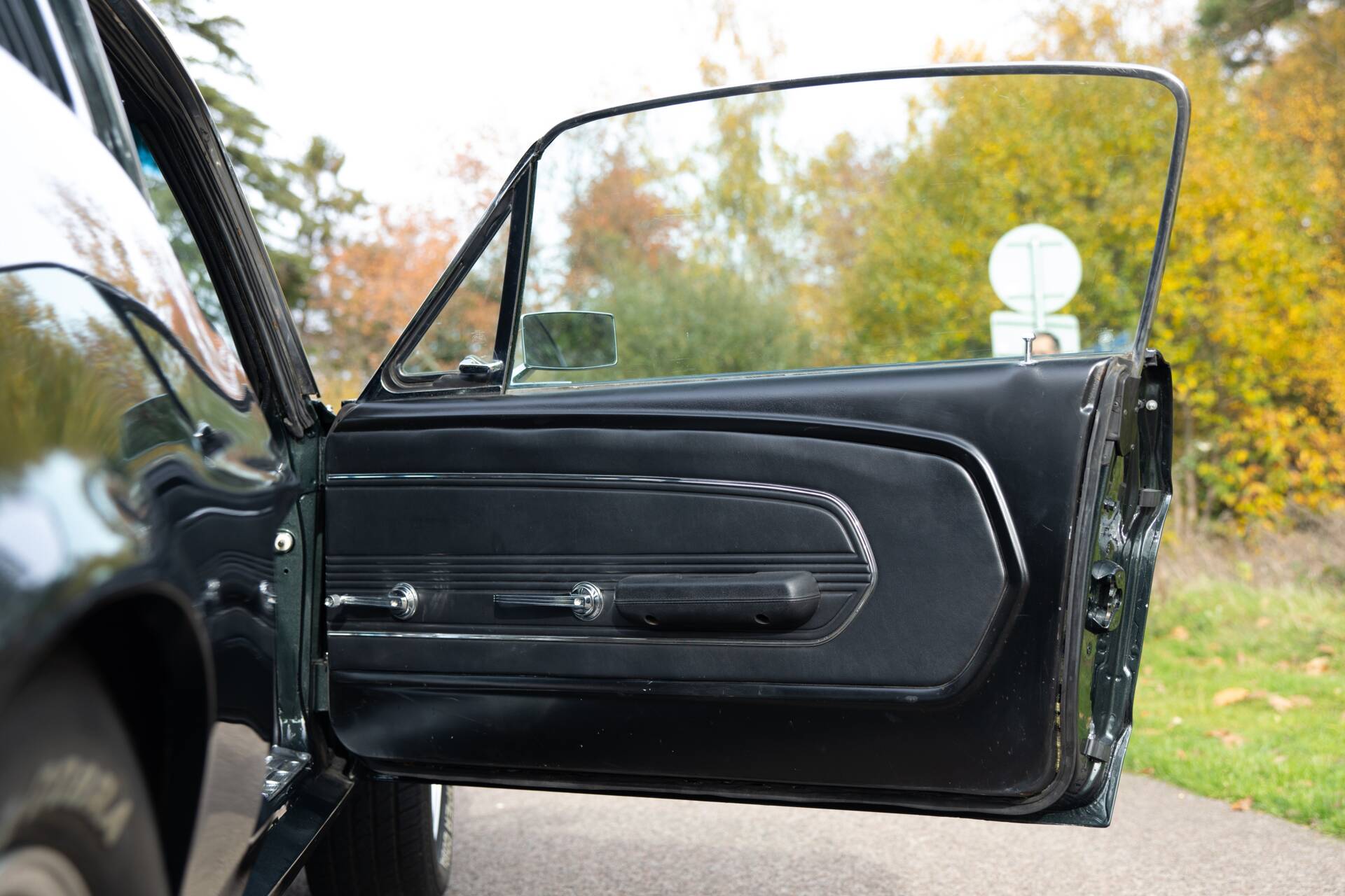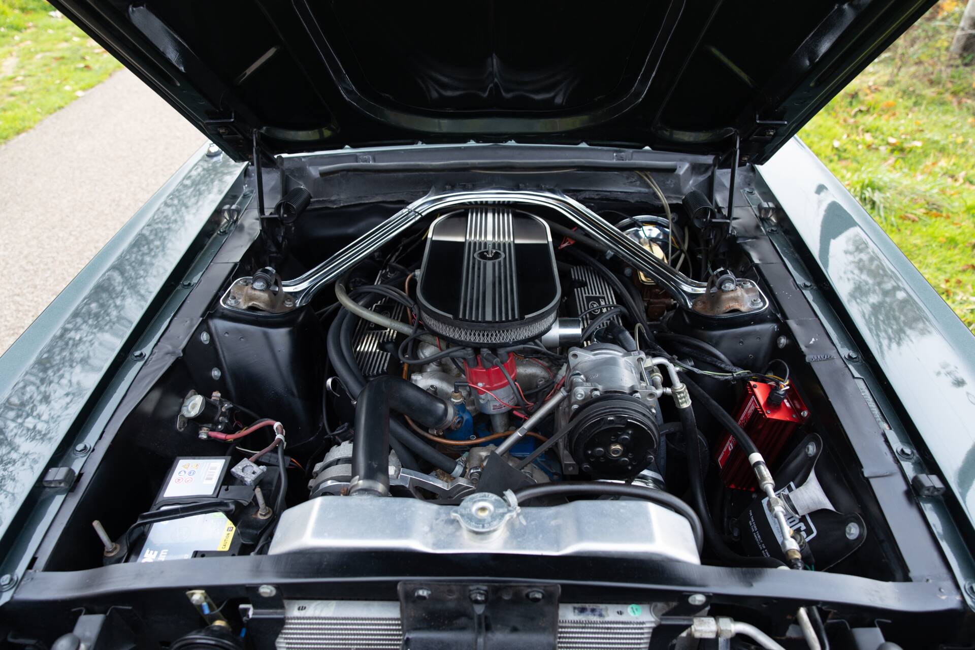 This fantastic looking Mustang Fastback was built at Ford's Metuchen plant, New Jersey on 30th August 1966, as a '67 model. Built as a genuine 'S' code, the car was originally finished in Nightmist Blue with matching vinyl bucket seats and was despatched to Steuart Motor Co. in New York, Washington State. It was shipped to the UK in 2015 from the dry state of Arizona, registered and subsequently extensively restored by Pomona Cars effectively being rebuilt from the ground upwards - with suspension, interior, chrome, wheels/tyres, and air conditioning system all receiving attention. A fresh 351ci (5,754cc) Ford Cleveland V8 engine was installed and mated to the cars AOD (automatic overdrive) four speed auto gearbox, the fourth gear acting as an overdrive. (The automatic three speed plus overdrive gearbox being a very rare factory option which was fitted to this example from new!). This engine boasts roller rockers; a Crane camshaft; flat-top pistons; Edelbrock inlet manifold and carburettor, Flowmaster exhaust, Headman headers, billet pulleys and variable-setting ignition system. The car was also repainted in the desirable 'Forest' Green. Since then, further work to the car has included a power brake conversion for the front wheels, modified gearbox rear mount, new prop shaft and diff oil seal, new heater matrix and a wheel camber adjustment with rear ride height adjustable shock absorbers and tune up in 2021. Showing 56,276 miles, this Mustang has only covered circa 2,000 miles since all this work was completed and remains in excellent condition and great running order. It is supplied with a history file of invoices for work completed and a copy of a Marti Report (USA) confirming the car as a genuine 'S' Code model, its current V5 registration document, and various sundry bills. This wonderful example sounds fantastic when on song and is a perfect candidate for any enthusiast or collector. Consigned by Daniel Godin