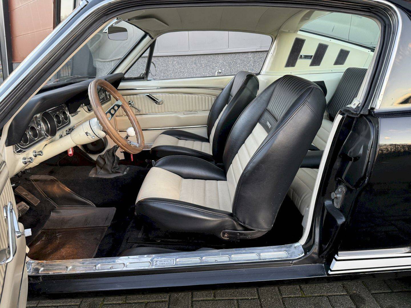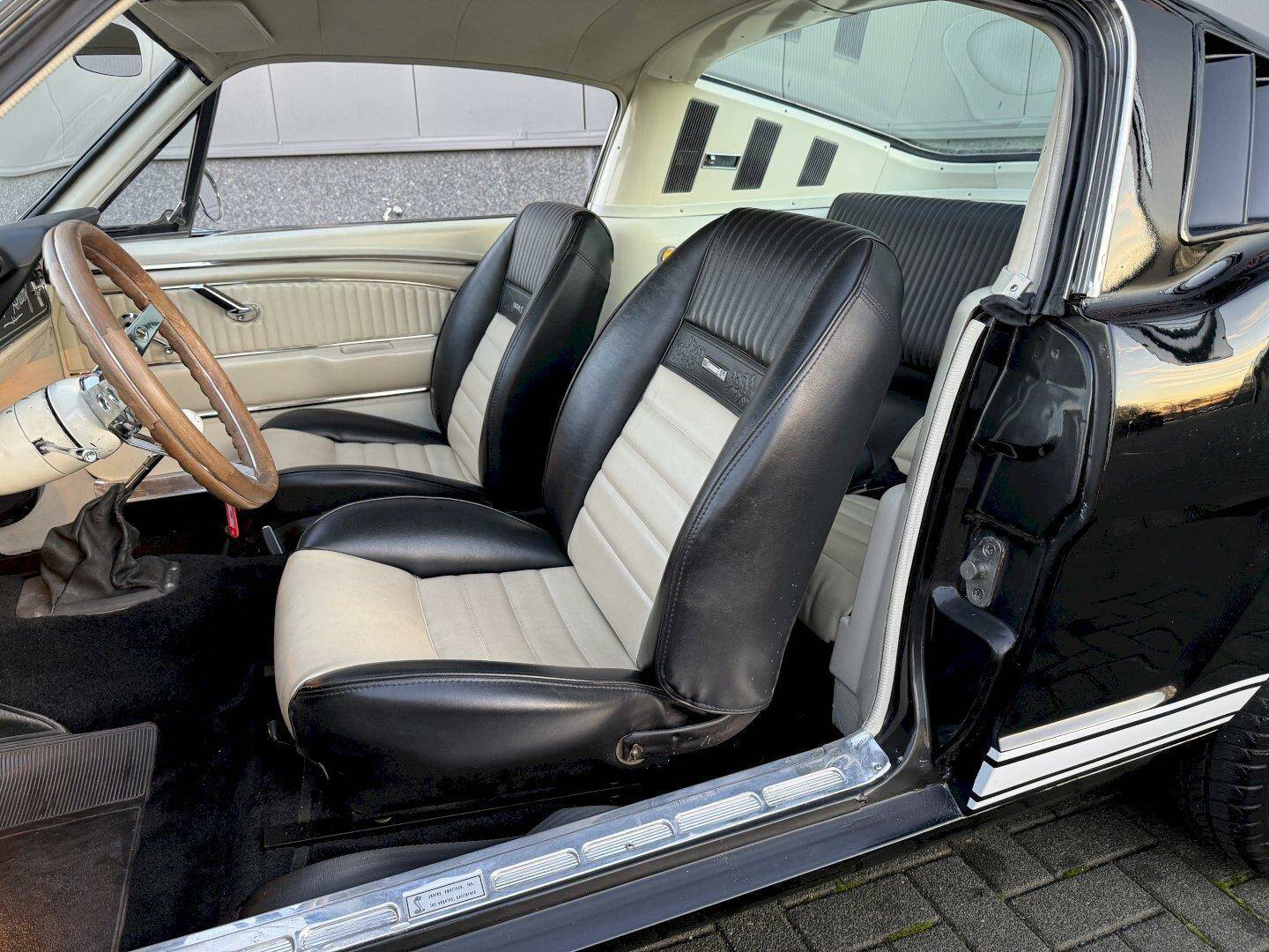 The interior is in nice condition, featuring TMI front seats and the Pony Deluxe interior with white-faced gauges. This Mustang already has European registration.