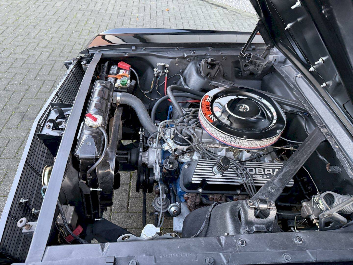 This Mustang Fastback has just arrived. It is a factory A-code car with a 4-speed manual transmission and the original Toploader gearbox, which shifts very well. As an A-code, it is equipped with a 4V carburetor, an aluminum intake manifold, and a mild camshaft. The engine runs smoothly and delivers strong performance, supported by 3.55 rear gears.
