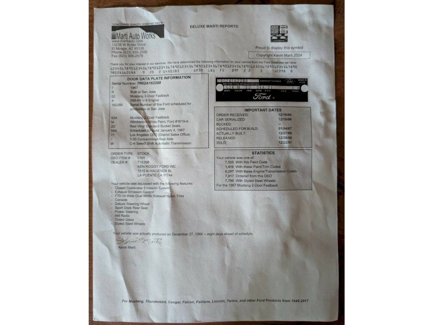 Just in stock 1967 Fastback in original color wimbeldon white this one was build on 27 dezember 1966 and early 67 build in San jose California this black plate car has a super nice rust free body the floors are still in full original condition the red oxide rust protection with the white over spray in super condition this is one of the better cars to find the original double exhausted was renewed incl the Gt tips to give it a luxury look