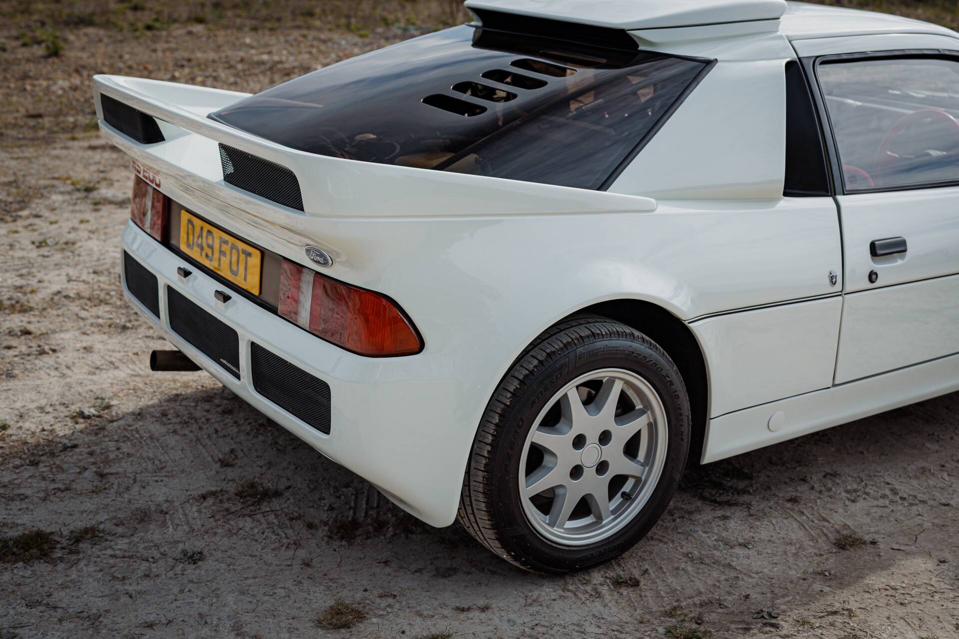 The car will be supplied with the original leather bound Ford RS200 Owner's Manual, two Ford keys, two front trunk keys and even recently sourced, period correct Hendy key rings. D49 FOT also retains the original tool kit, which looks completely unused, with all tools and the retaining plastic all in remarkable condition. The unrestored spare wheel still retains the original Pirelli P700 tyre, which is no longer available.