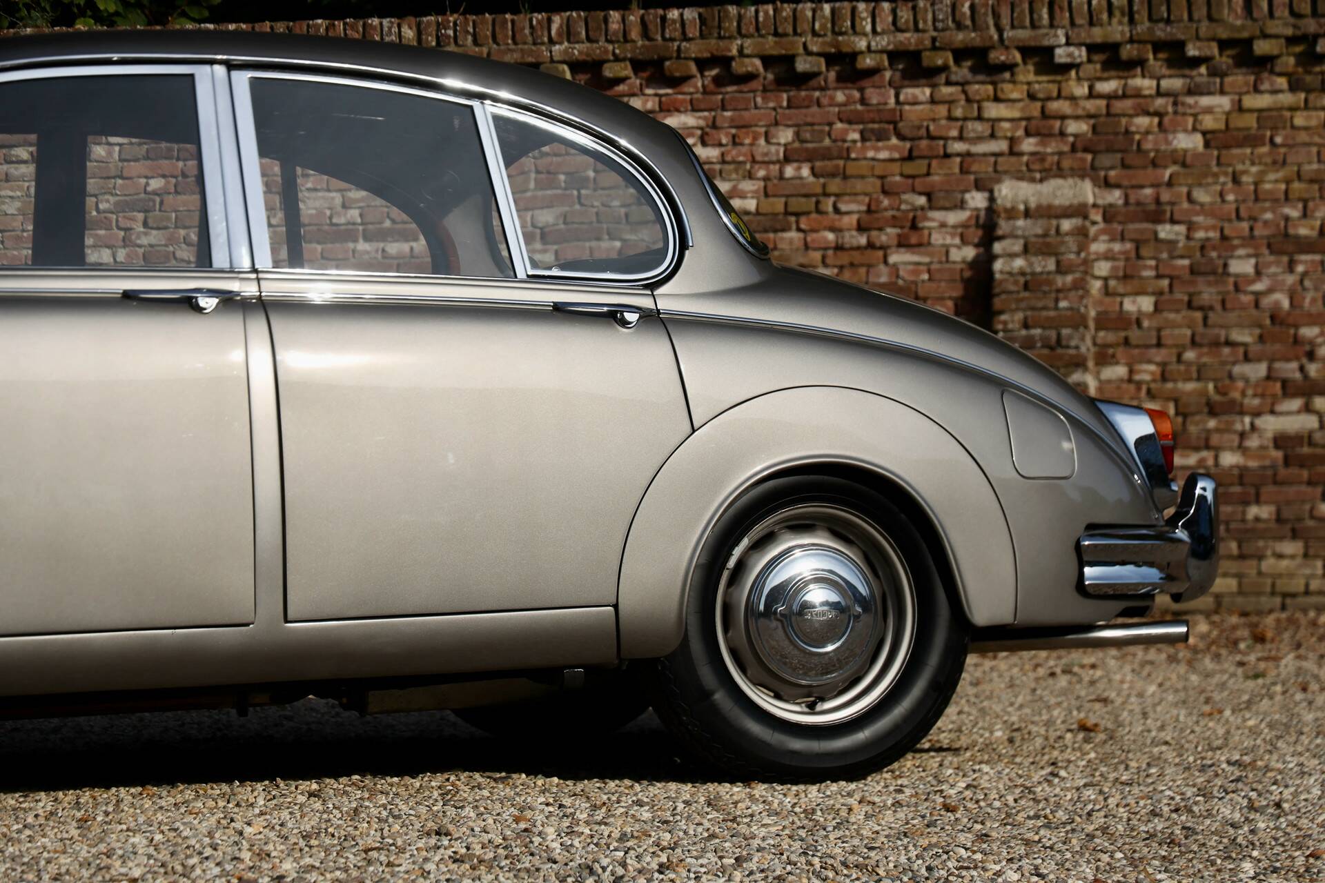 Jaguar MK 2 3.4 Litre "Restored condition" PRICE REDUCTION! Presented in the timeless shade of "Gunmetal gray" with a dark blue leather interior, Restored and rebuilt in the 1990s, Modern performance: 3.4-liter engine and manual transmission, Well maintained and cared for after restoration, Interior in wonderful condition with beautiful leather and restored wood veneer, Matching numbers according to original chassis plate,
