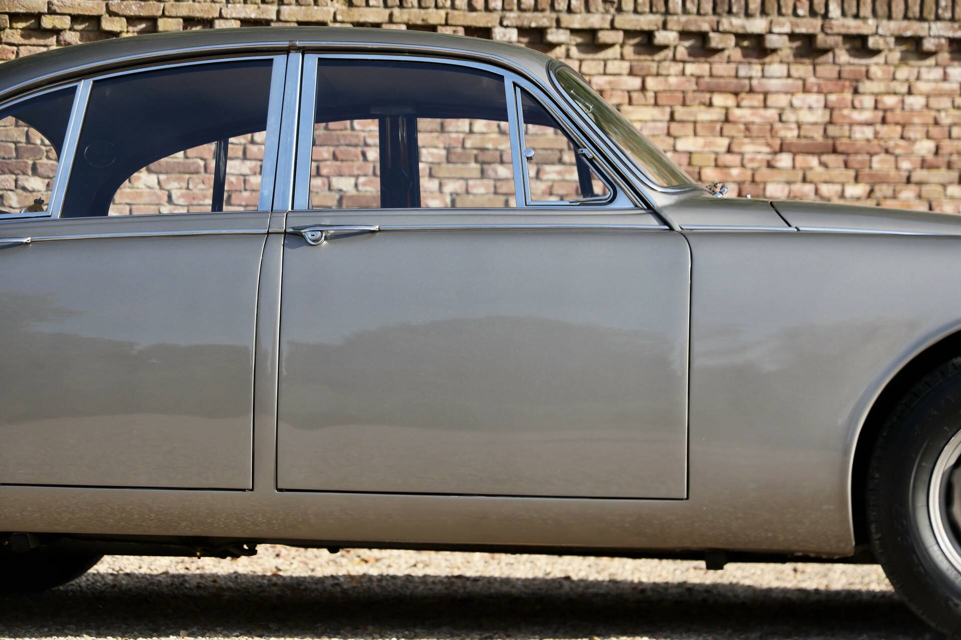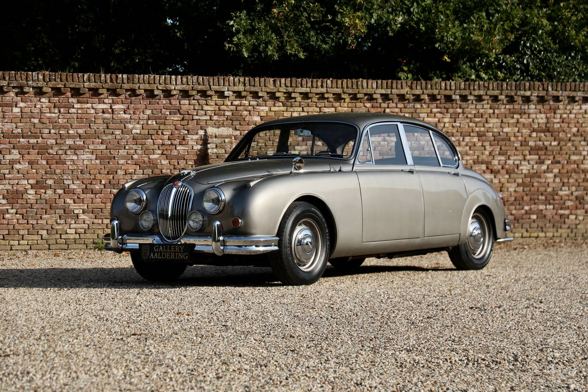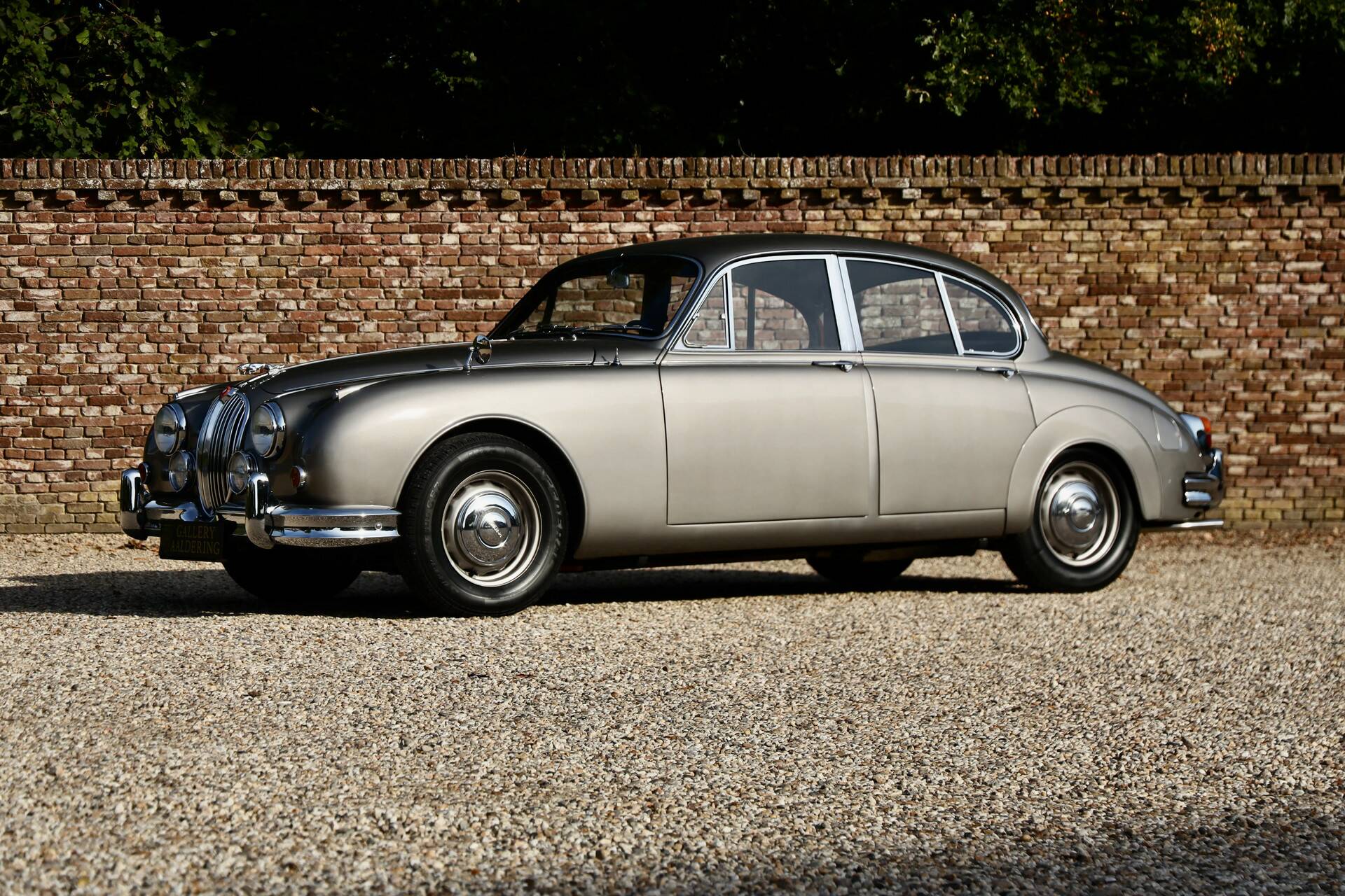 Jaguar MK 2 3.4 Litre "Restored condition" Presented in the timeless shade of "Gunmetal gray" with a dark blue leather interior, Restored and rebuilt in the 1990s, Modern performance: 3.4-liter engine and manual transmission, Well maintained and cared for after restoration, Interior in wonderful condition with beautiful leather and restored wood veneer, Matching numbers according to original chassis plate,