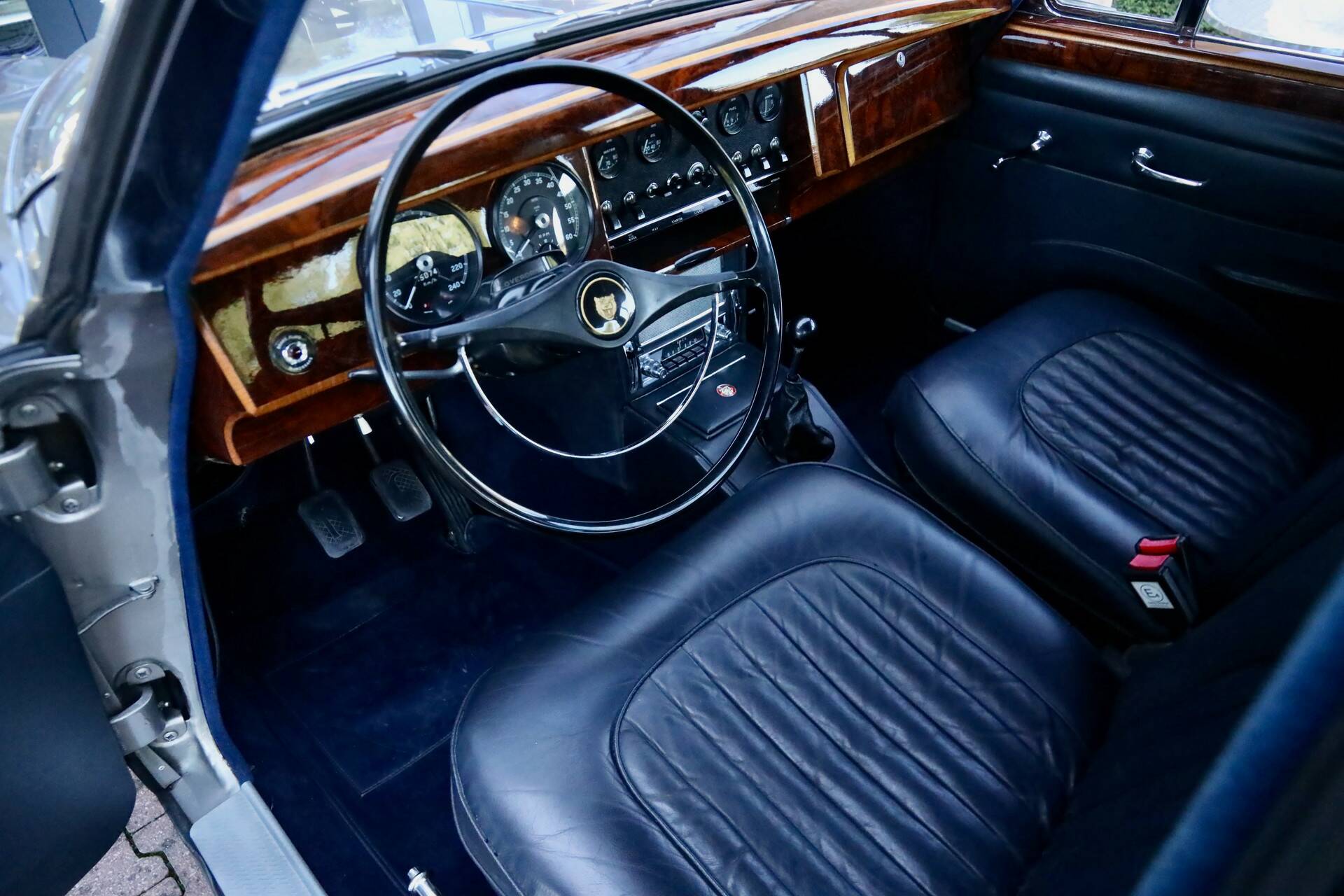 Just imagine: it’s 1966, and you’re driving away in a Jaguar MK 2 3.4 Litre, finished in timeless Gunmetal Grey with a dark blue leather interior. Isn’t that a color combination to fall in love with? The moment you settle into the driver’s seat, you feel it instantly: this is no ordinary car—it’s a rolling salon brimming with charm.