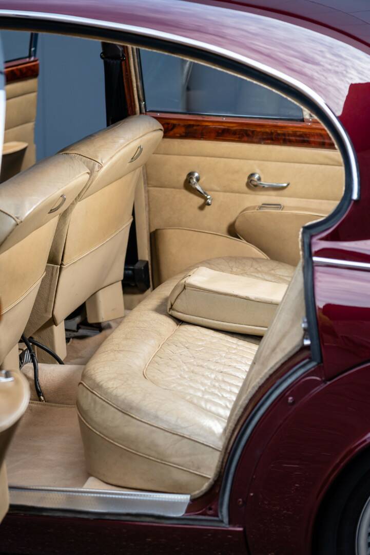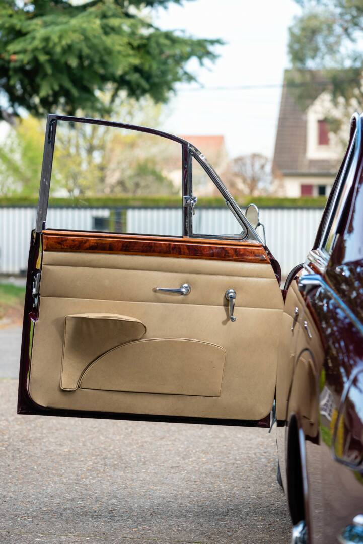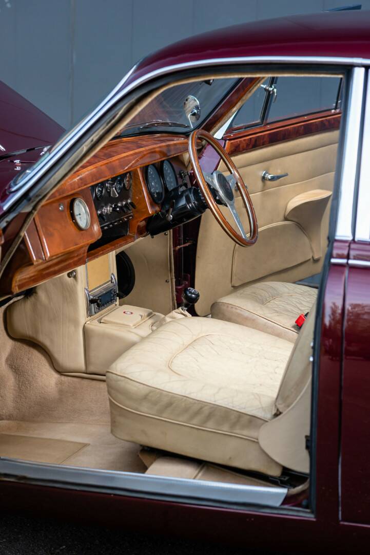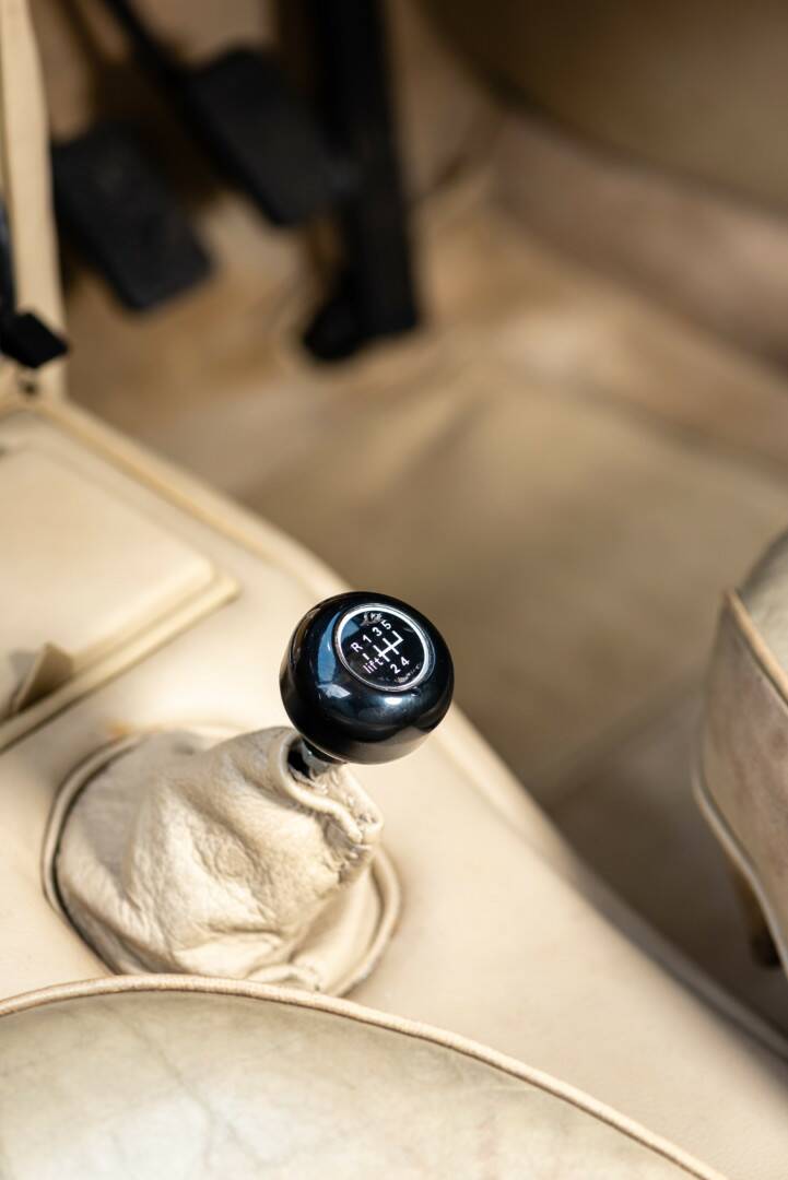 La sellerie en cuir beige, très probablement d’origine, est en superbe état et présente une patine remarquable, en parfaite adéquation avec l’âge de la voiture.