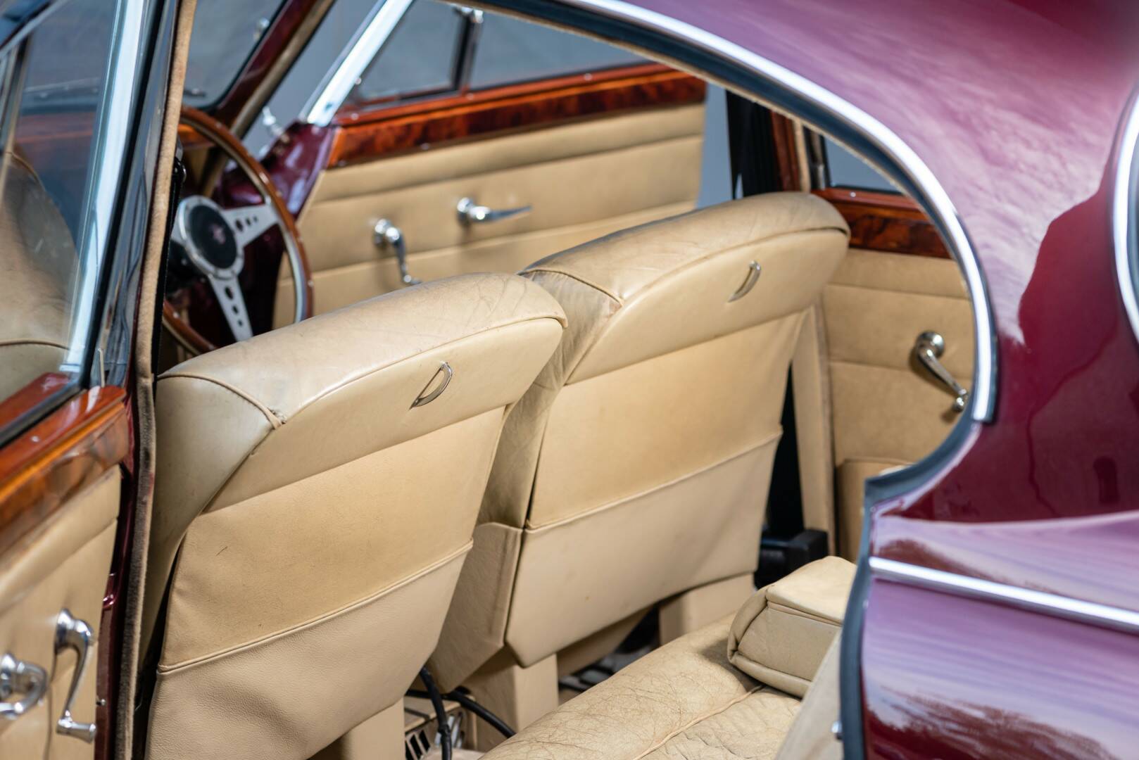La Jaguar MKII 3.4L se distingue également par son comportement routier avancé, grâce notamment à ses freins à disque sur les quatre roues, une technologie encore rare à l’époque, qui lui confère un freinage puissant et endurant.