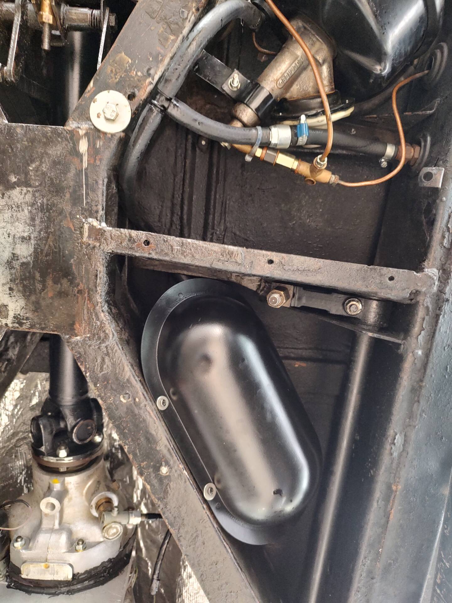 water pump, fan belt, radiator, battery, steering gear,