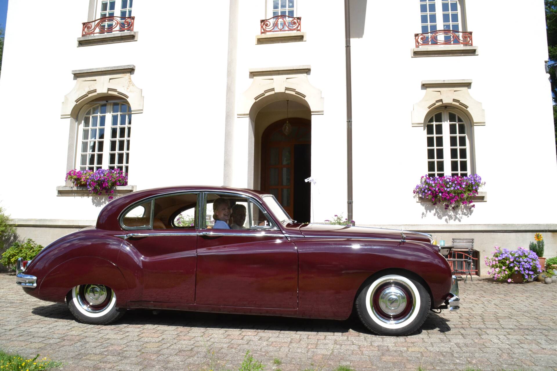 This MK VII M, the top-of-the-line model of 1955 and 1956, has been visually enhanced with cut-out spats and picnic tables integrated into the seatbacks, thus bringing it in line with the appearance of the later MK 9 models. The TÜV-compliant whitewall trim further emphasizes the elegance of this classic car.