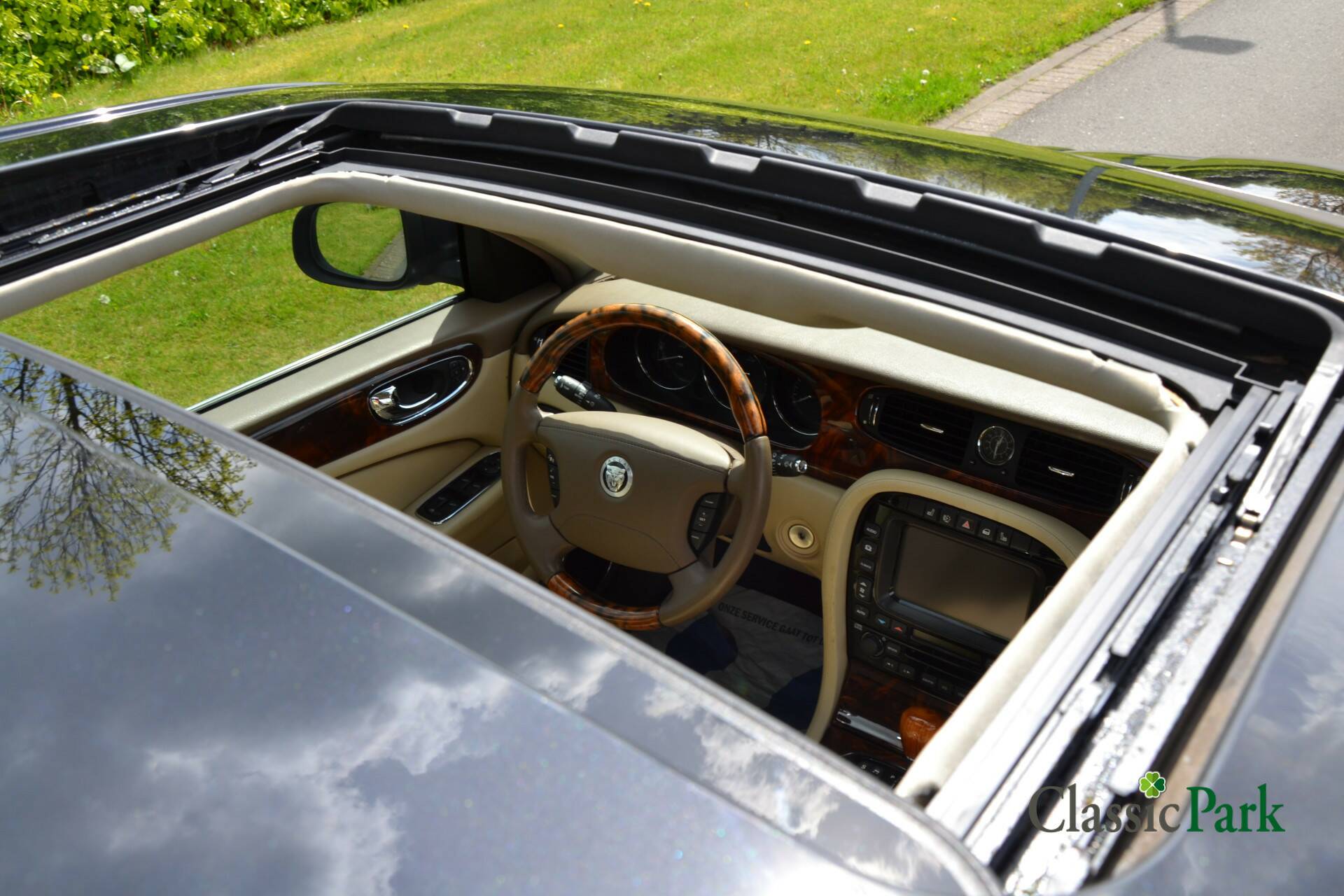 This Jaguar XJ with its 2.7 liter V6 twin turbo diesel engine is pre-eminently a car for long, comfortable journeys. With its black paint and beige interior, it is extremely representative. And with its torquey diesel engine and silky-smooth automatic transmission, it's powerful and comfortable to drive. The odometer reading of 118,161 km is low for a car from 2008 with such an engine. The Jaguar sports the rich equipment from the last model years. This includes a sliding/tilting sunroof, 10-spoke alloy wheels, rear privacy glass, leather upholstery, contrast piping on the seats, heated seats, wood inlays, partial wood steering wheel, CD changer in the trunk, navigation, and much more. The whole is in very good condition.