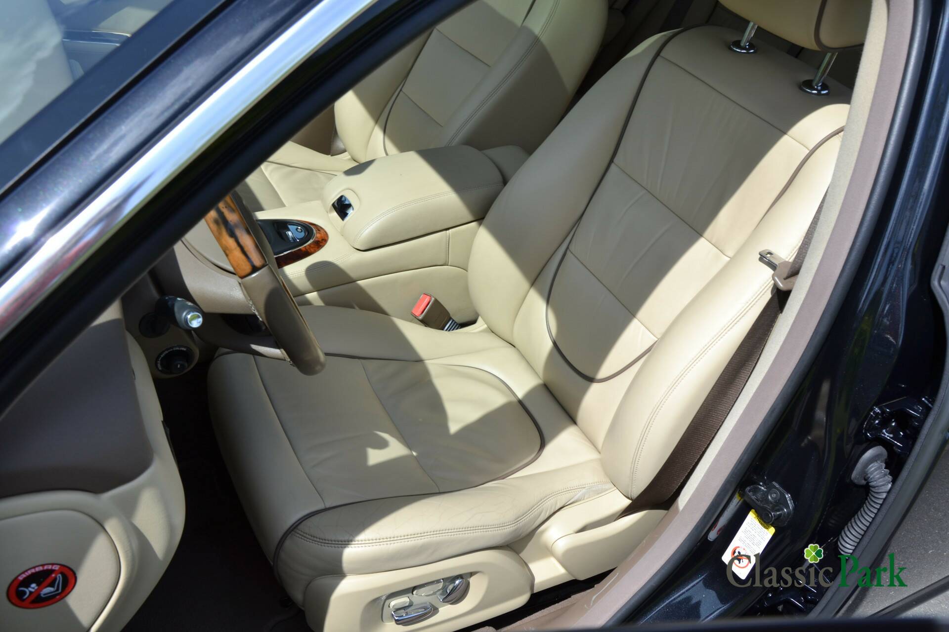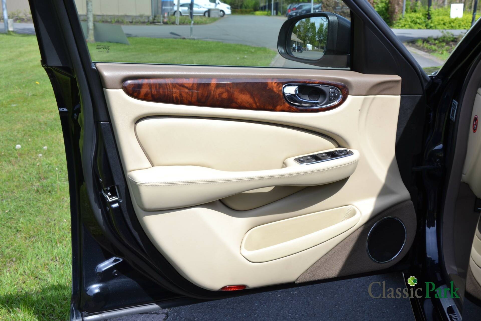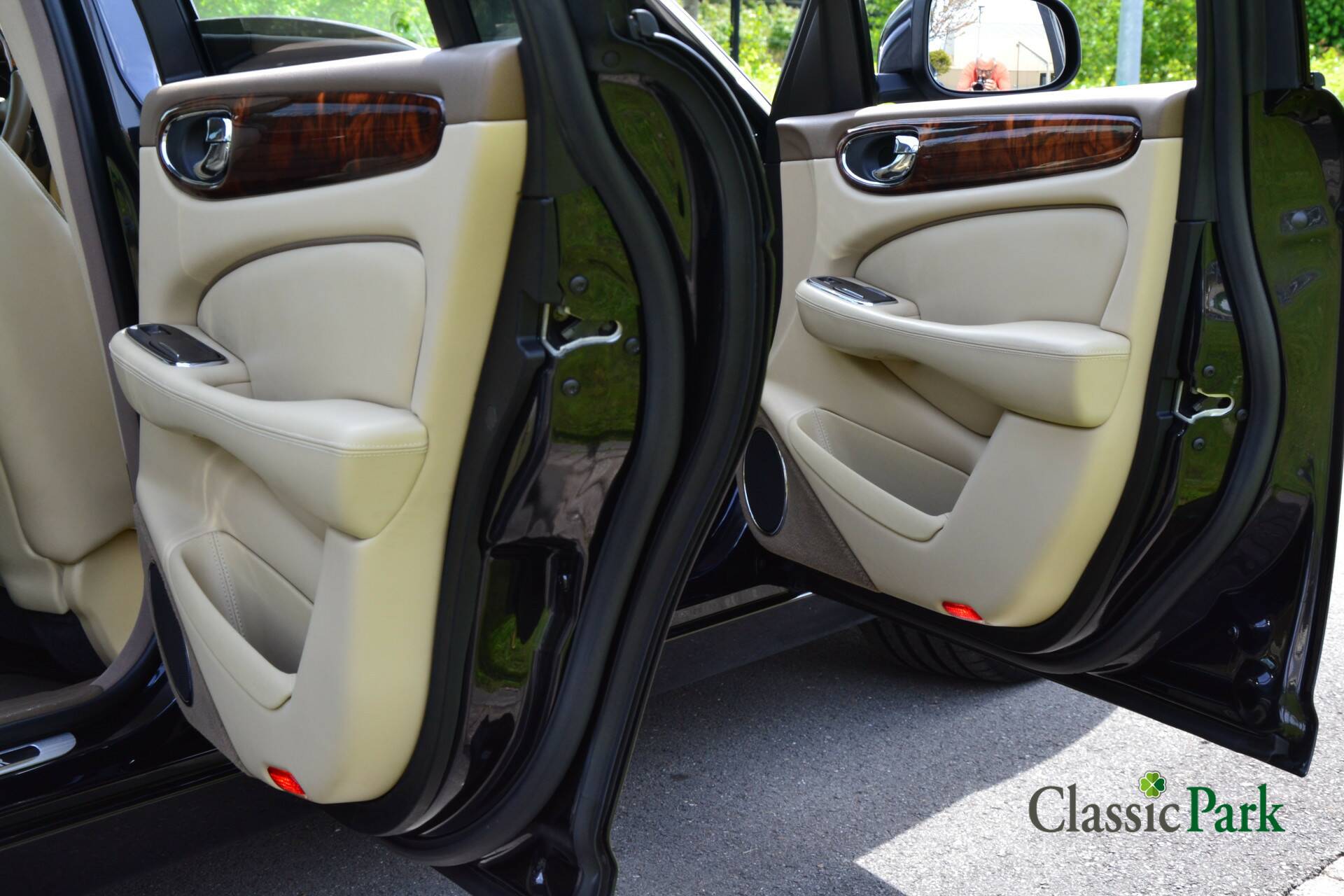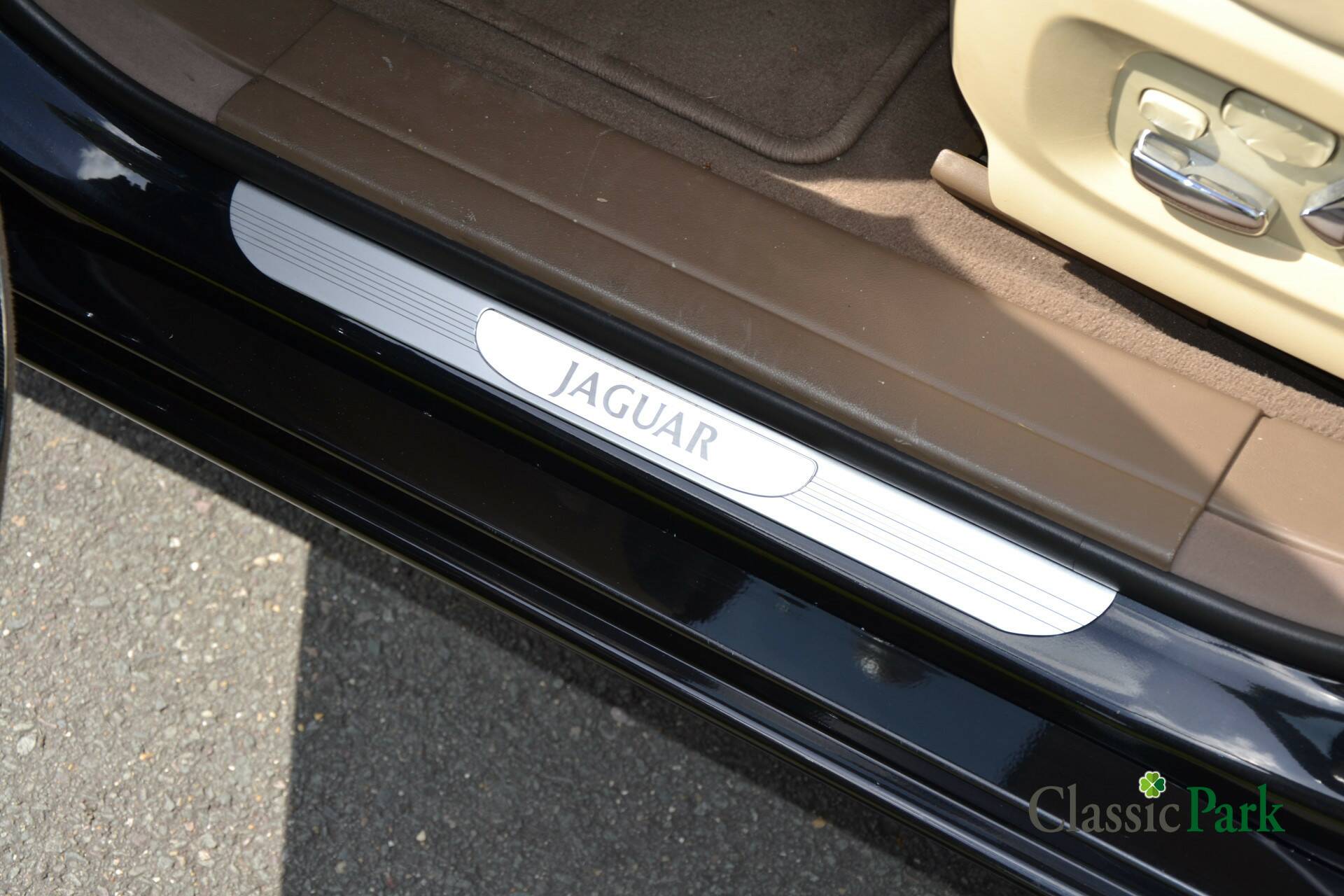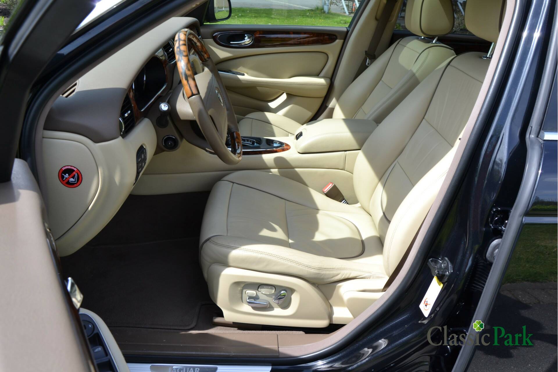 This Jaguar XJ with its 2.7 liter V6 twin turbo diesel engine is pre-eminently a car for long, comfortable journeys. With its black paint and beige interior, it is extremely representative. And with its torquey diesel engine and silky-smooth automatic transmission, it's powerful and comfortable to drive. The odometer reading of 118,161 km is low for a car from 2008 with such an engine. The Jaguar sports the rich equipment from the last model years. This includes a sliding/tilting sunroof, 10-spoke alloy wheels, rear privacy glass, leather upholstery, contrast piping on the seats, heated seats, wood inlays, partial wood steering wheel, CD changer in the trunk, navigation, and much more. The whole is in very good condition.