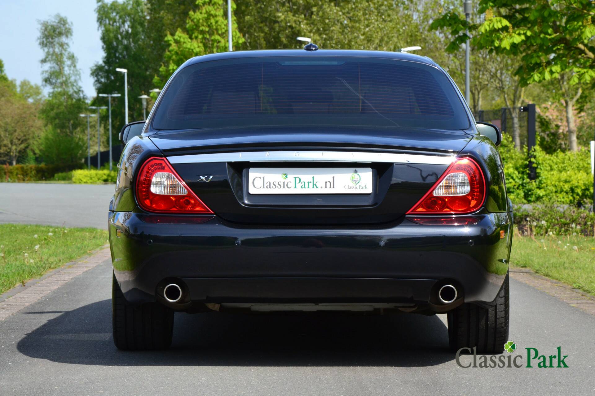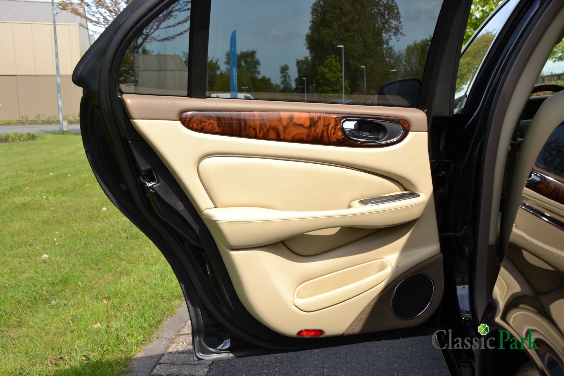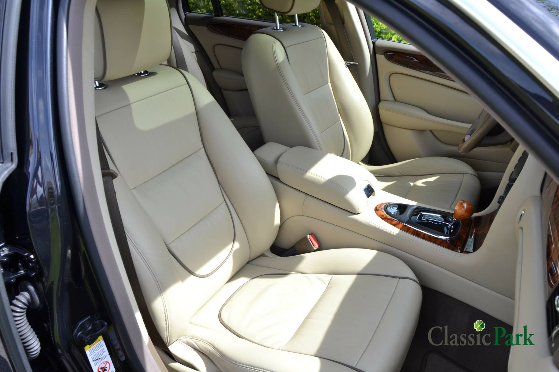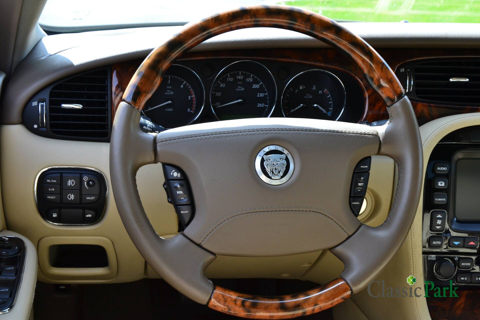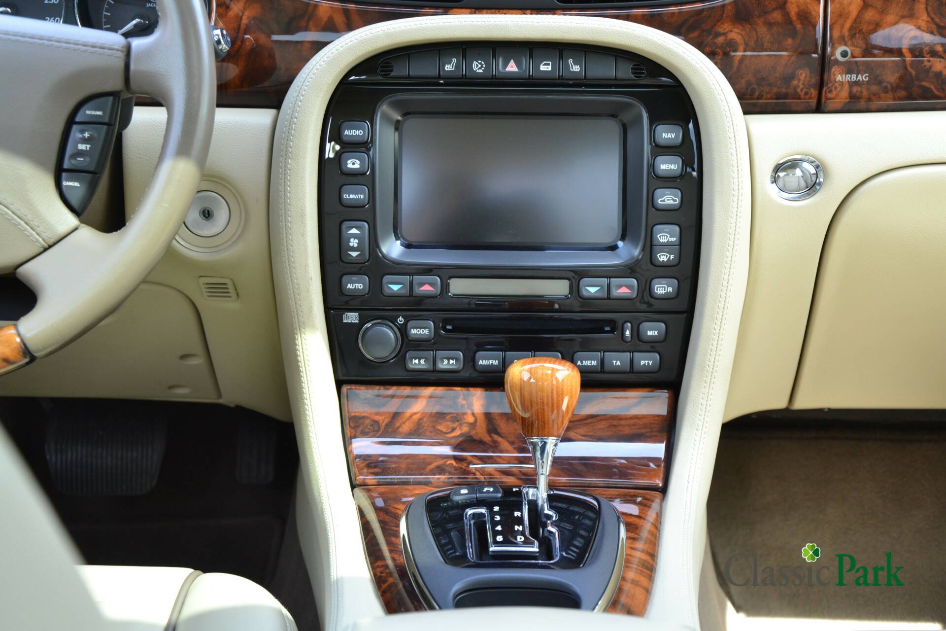 This Jaguar XJ with its 2.7 liter V6 twin turbo diesel engine is pre-eminently a car for long, comfortable journeys. With its black paint and beige interior, it is extremely representative. And with its torquey diesel engine and silky-smooth automatic transmission, it's powerful and comfortable to drive. The odometer reading of 118,161 km is low for a car from 2008 with such an engine. The Jaguar sports the rich equipment from the last model years. This includes a sliding/tilting sunroof, 10-spoke alloy wheels, rear privacy glass, leather upholstery, contrast piping on the seats, heated seats, wood inlays, partial wood steering wheel, CD changer in the trunk, navigation, and much more. The whole is in very good condition.